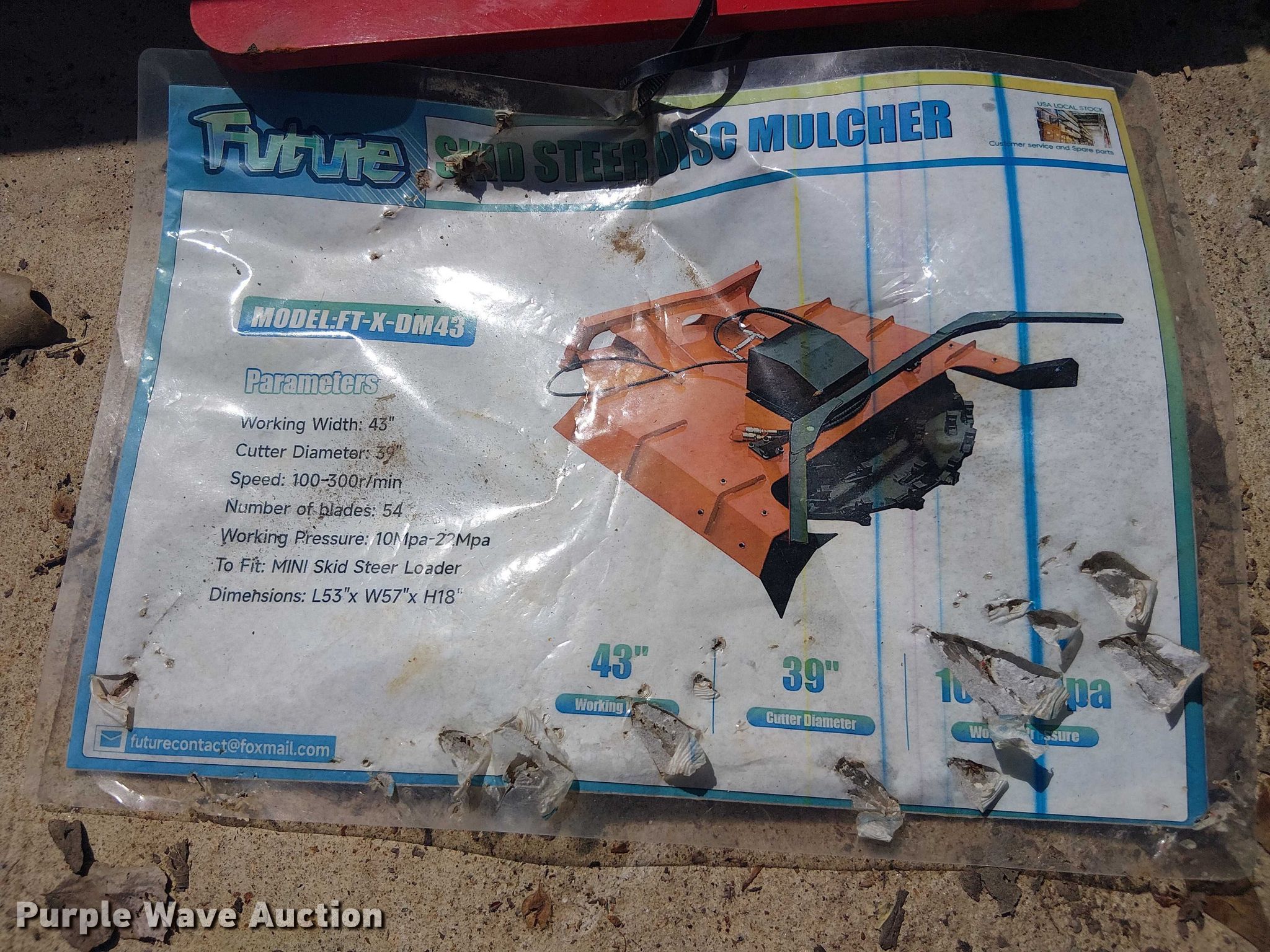 Purple Wave is selling a used Skid Steer Attach. in Texas. This item is a Future X-DM43 skid steer disc mulcher with the following: Serial: XYPTHJ2508254