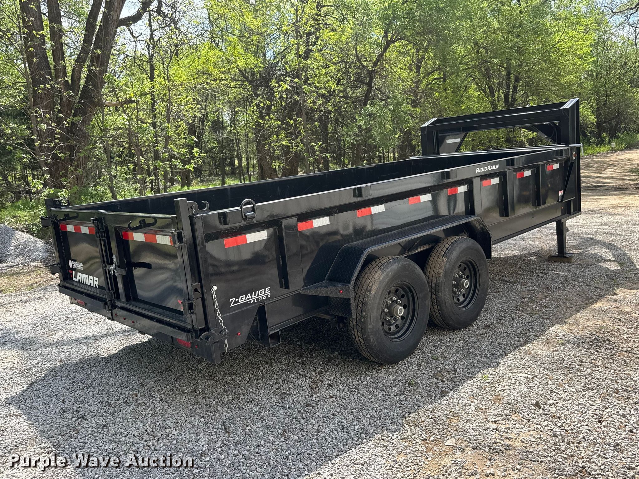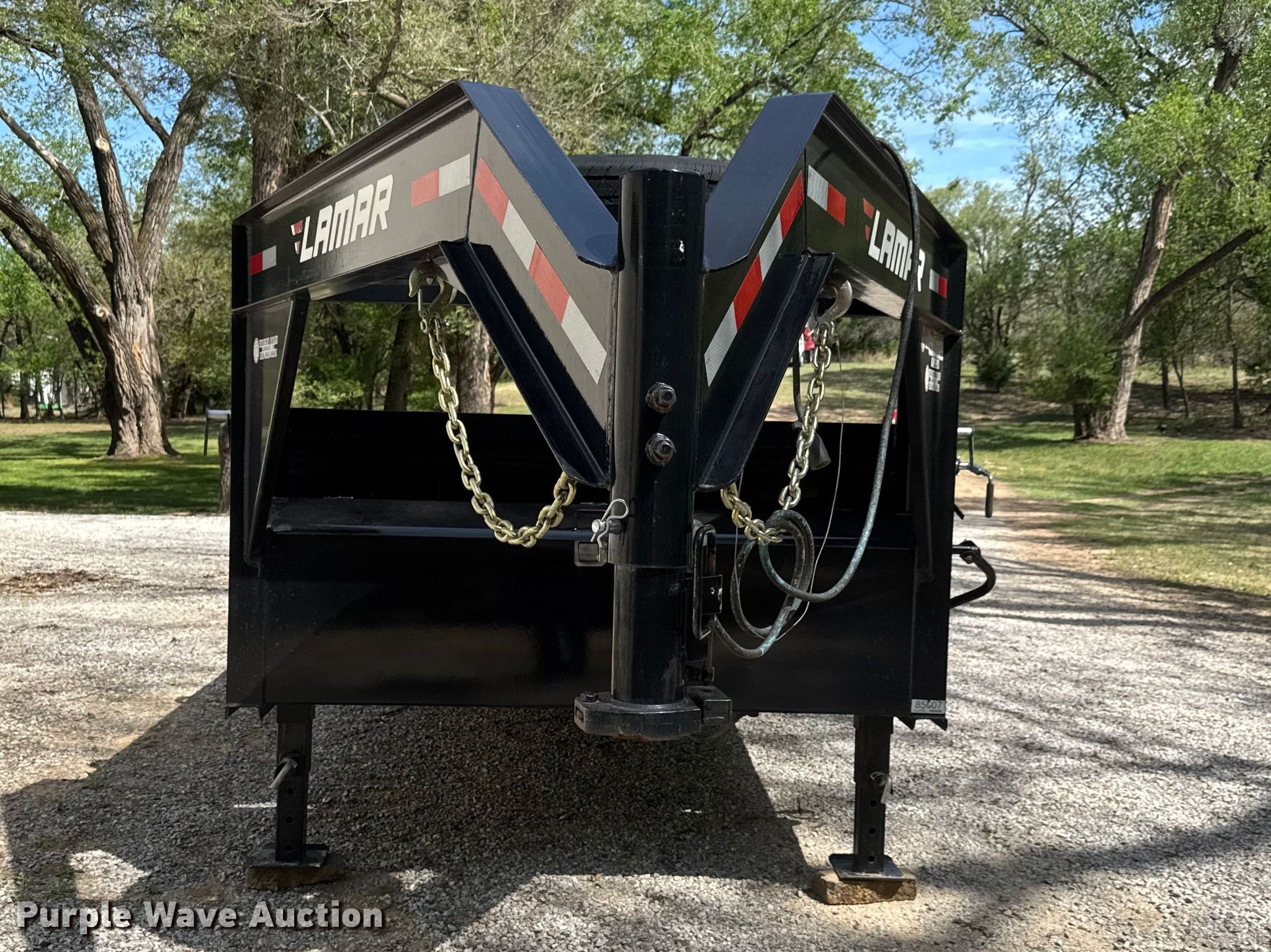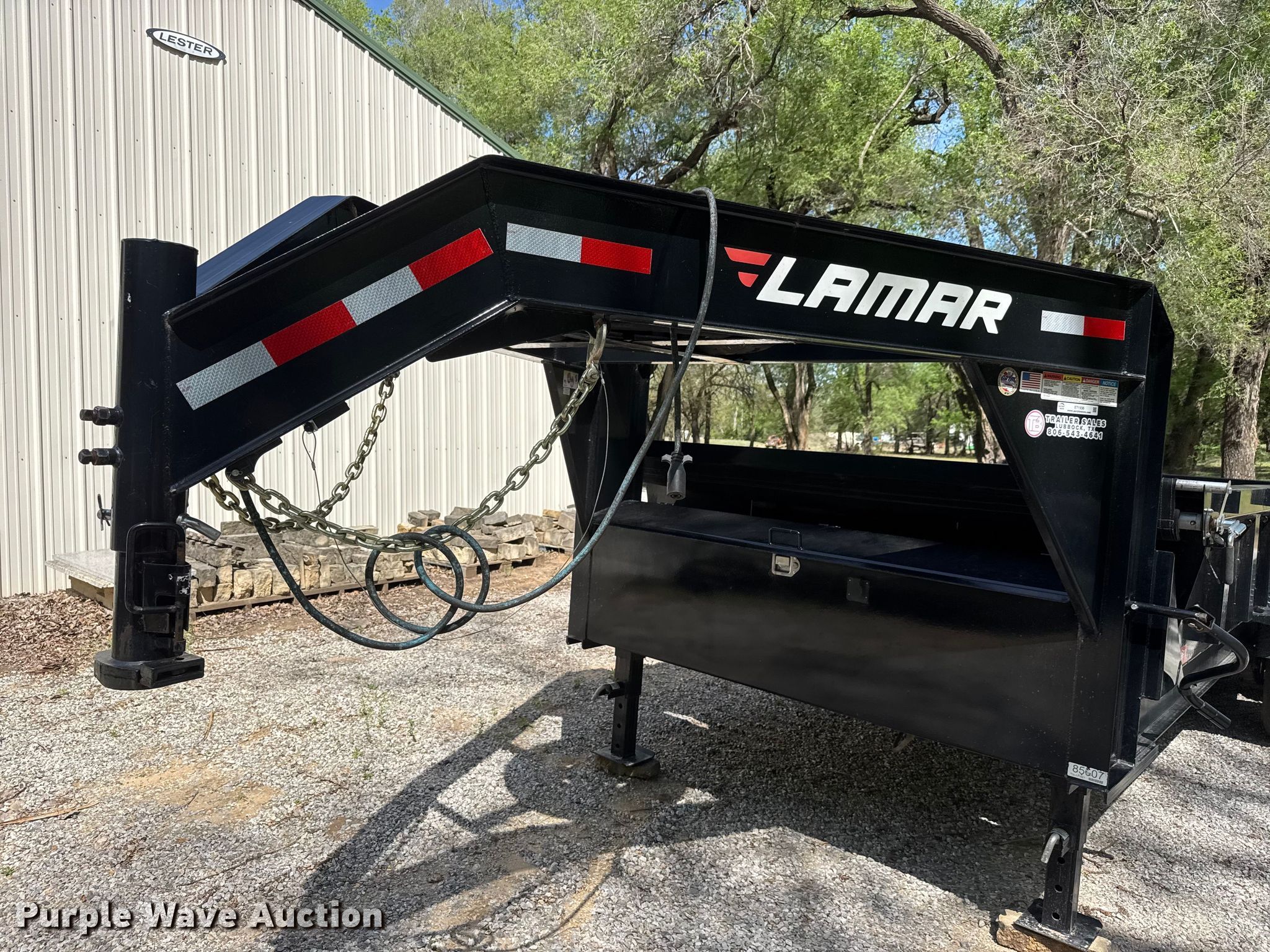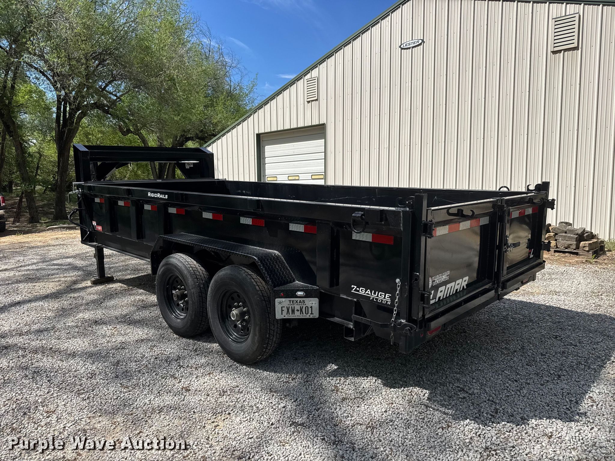 2020 Lamar DL831627 dump trailer. VIN: 5RVDL1627LP085007. Dimensions Overall Length: 25', Width: 102", Body Length: 16', Width: 89", Side height: 24". Features Body type: Steel, Ram: Single, End gate: Manual, Roll tarp, Ramps Length: 80". Chassis Hitch: Gooseneck, Landing gear: Dual, Suspension: Spring, Brakes: Electric, Axles: Tandem, GVWR: 14,000 lbs, GAWR: 7,000 lbs. Tires Steel wheels, Size: 235/80R16. Texas title. Title distribution may be delayed up to 14 days from verification of funds. Buhler, KS 67522