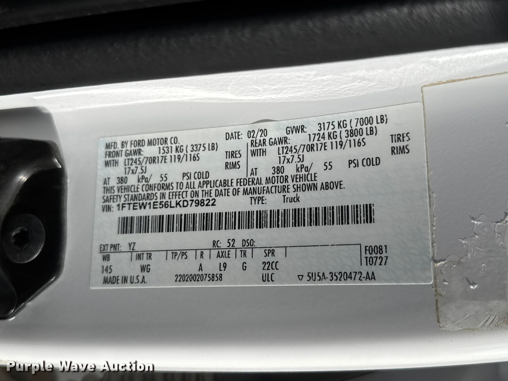 Purple Wave is selling a used 1/2 Ton Pickup or Van in Kansas. This item is a 2020 Ford F150 Crew Cab pickup truck with the following: Miles: 137,542 on odometer, Hours: 4,797 on meter, VIN: 1FTEW1E56LKD79822, Unit #: 02.782