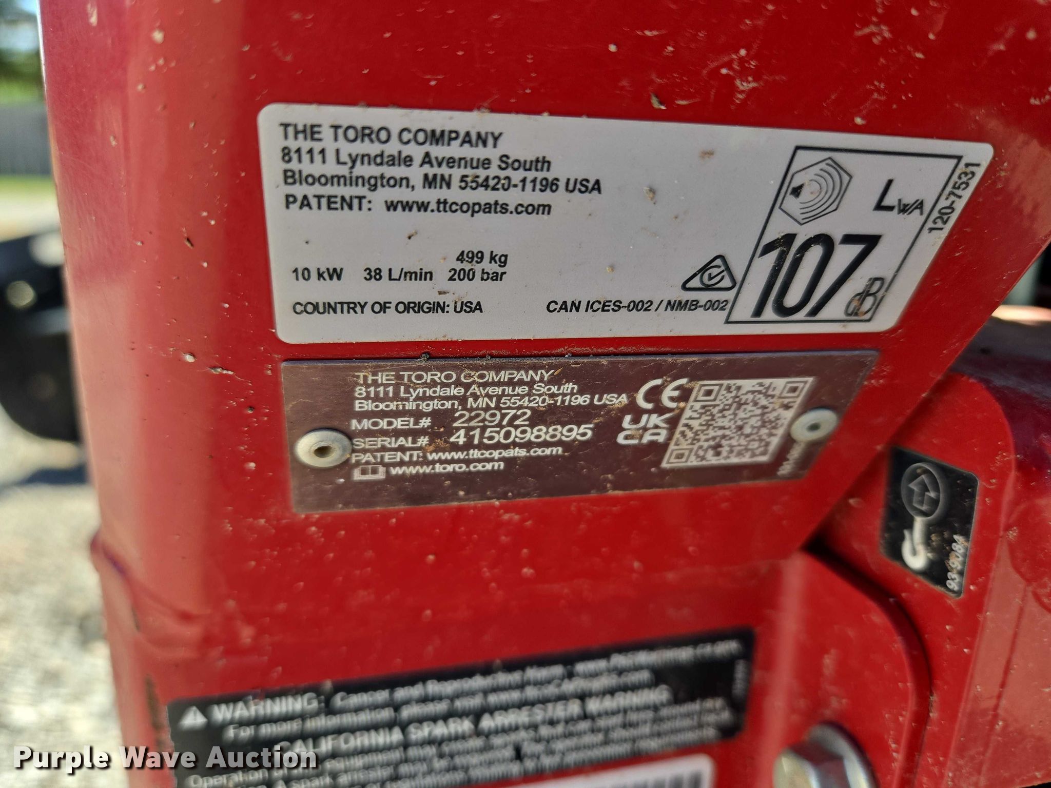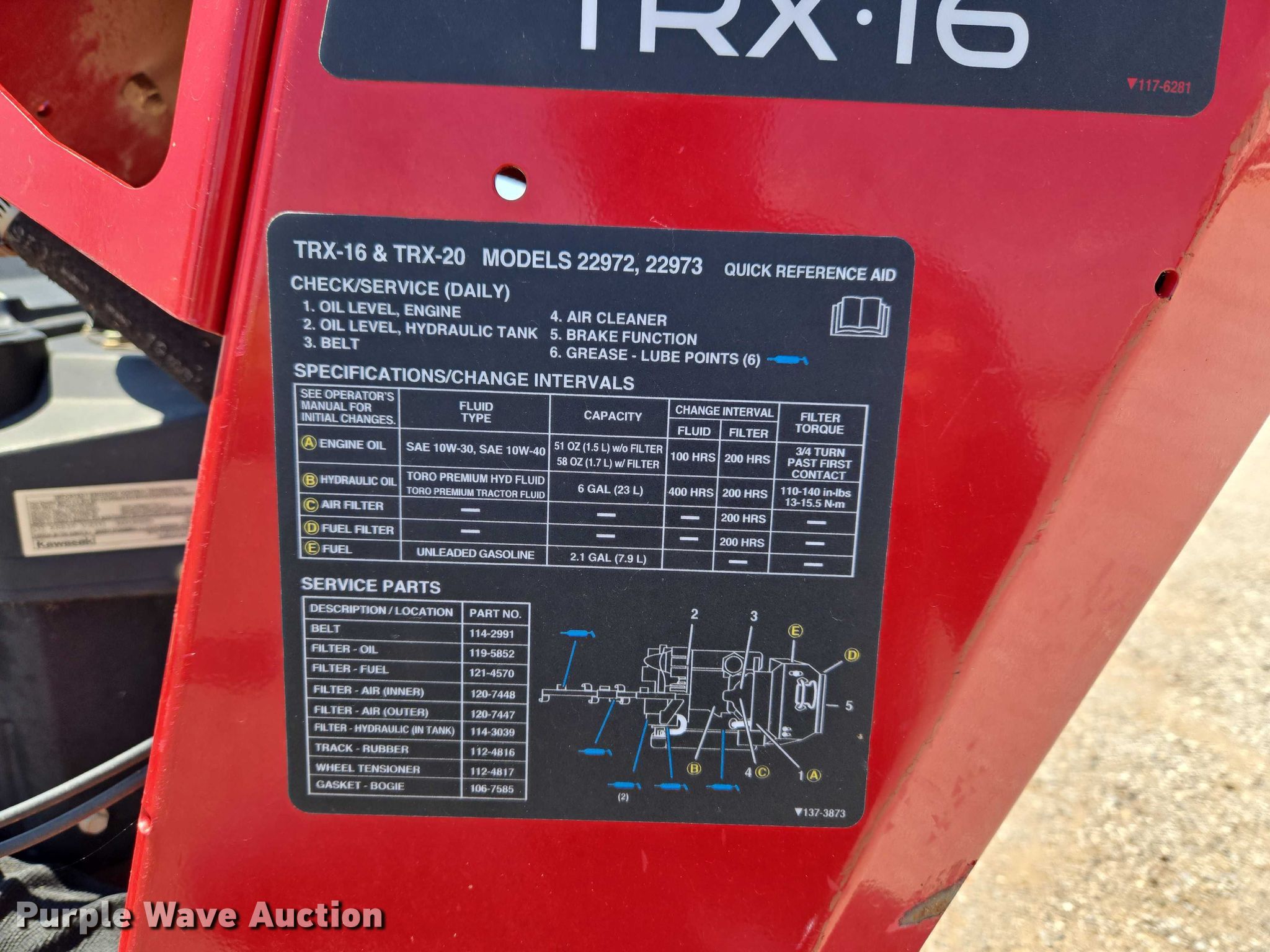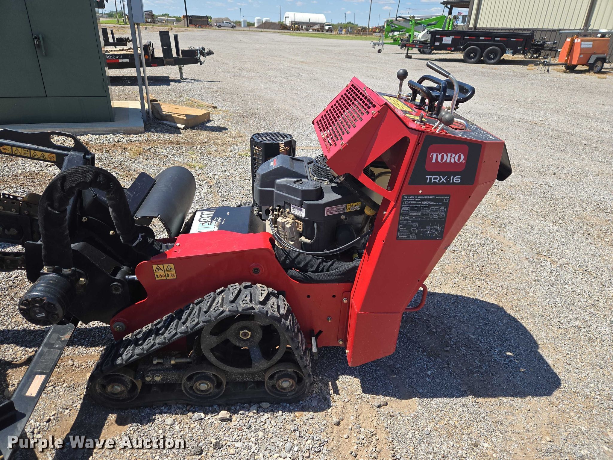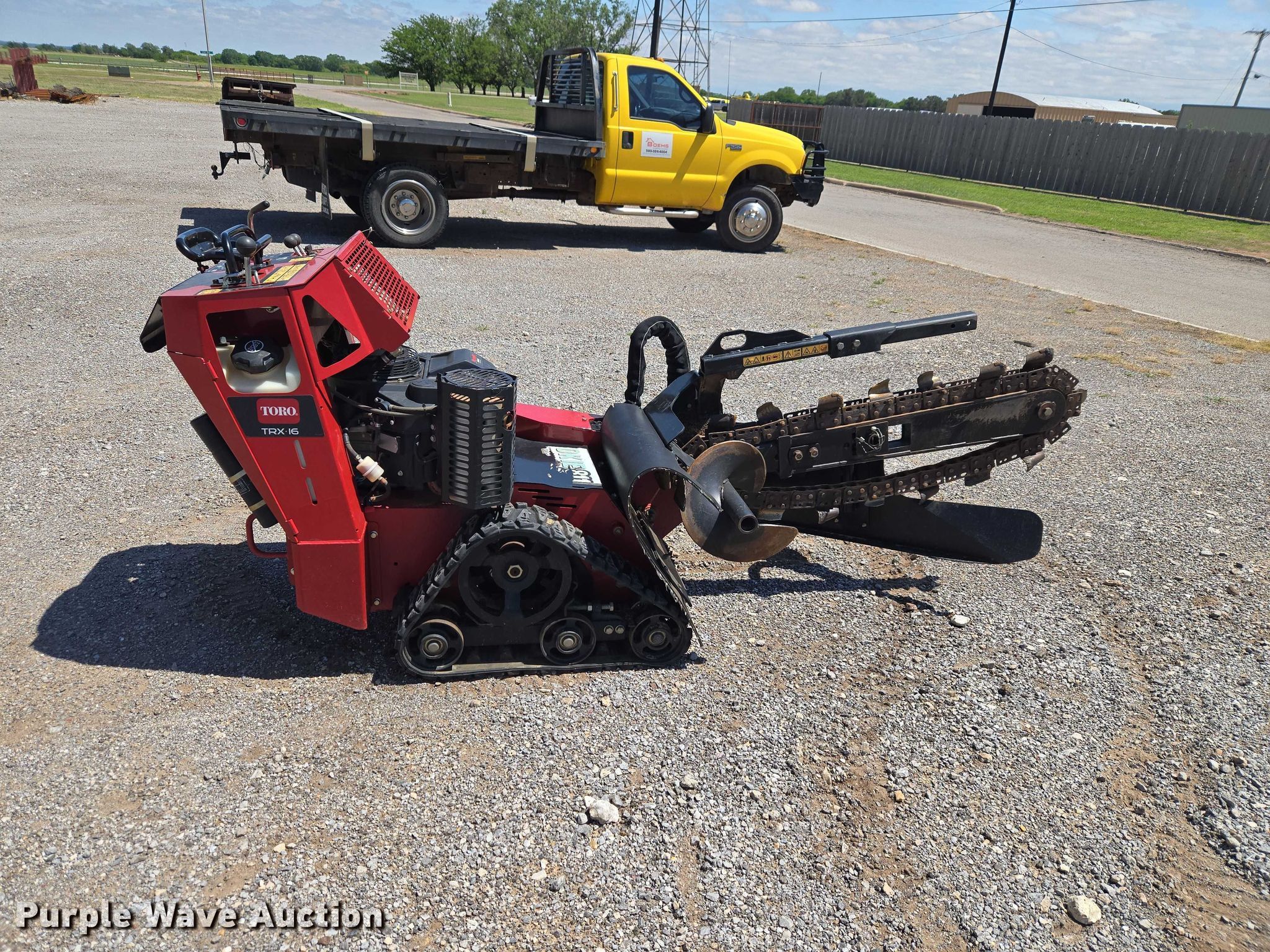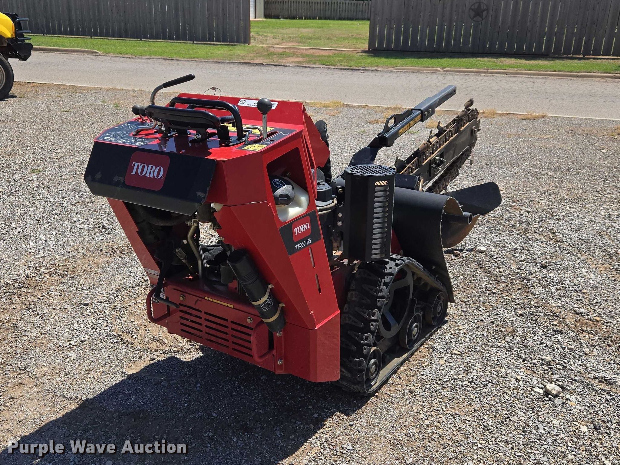 Purple Wave is selling a used Trencher or Rock Saw in Oklahoma. This item is a Toro TRX-I6 22972 walk-behind trencher with the following: Hours: 207 on meter, Serial: 415098895