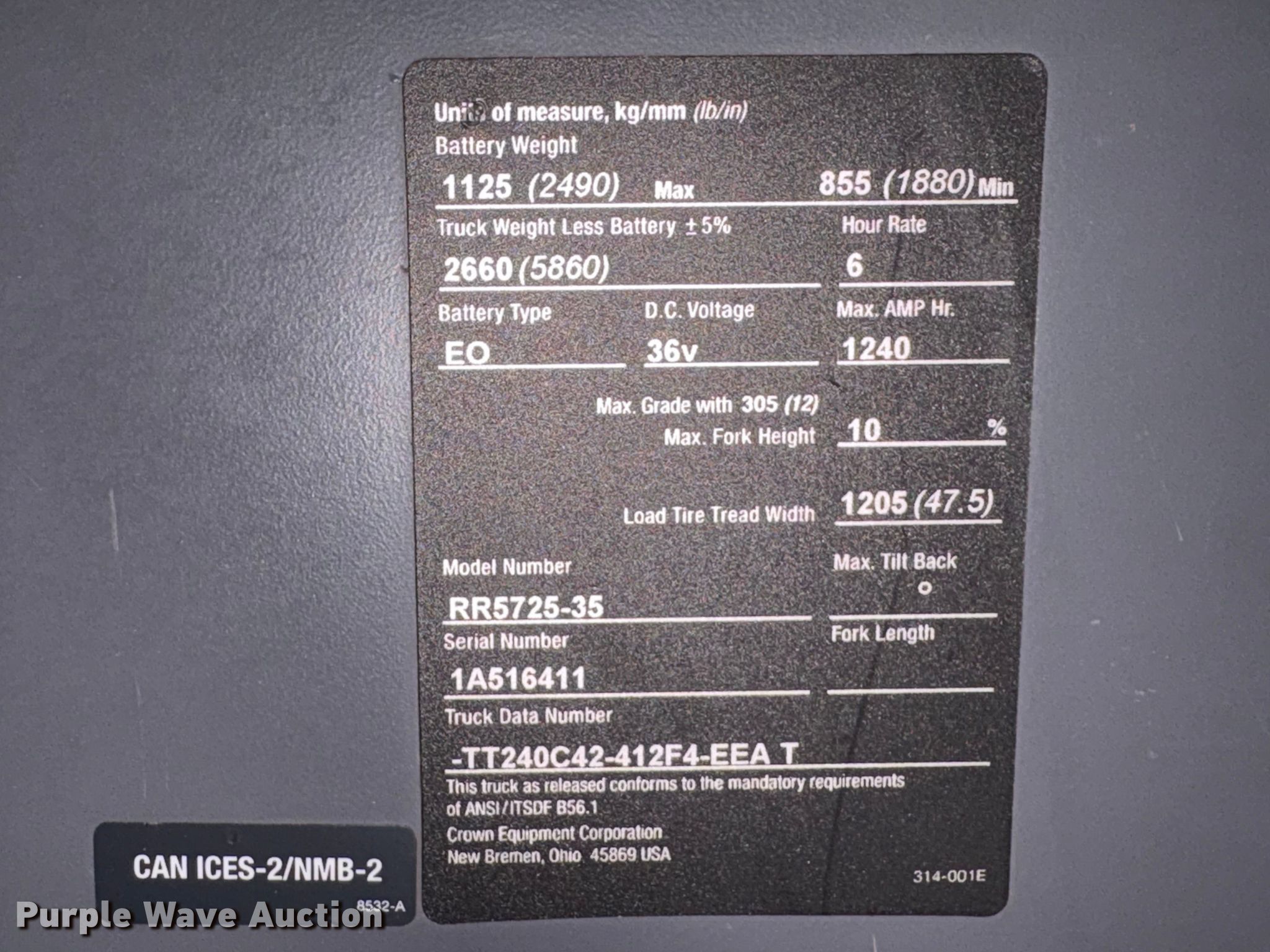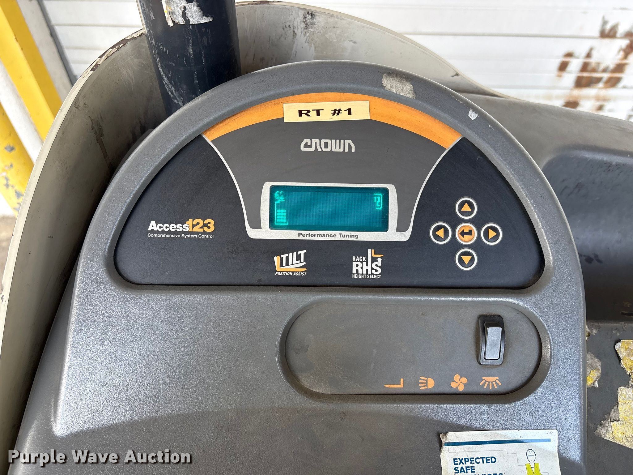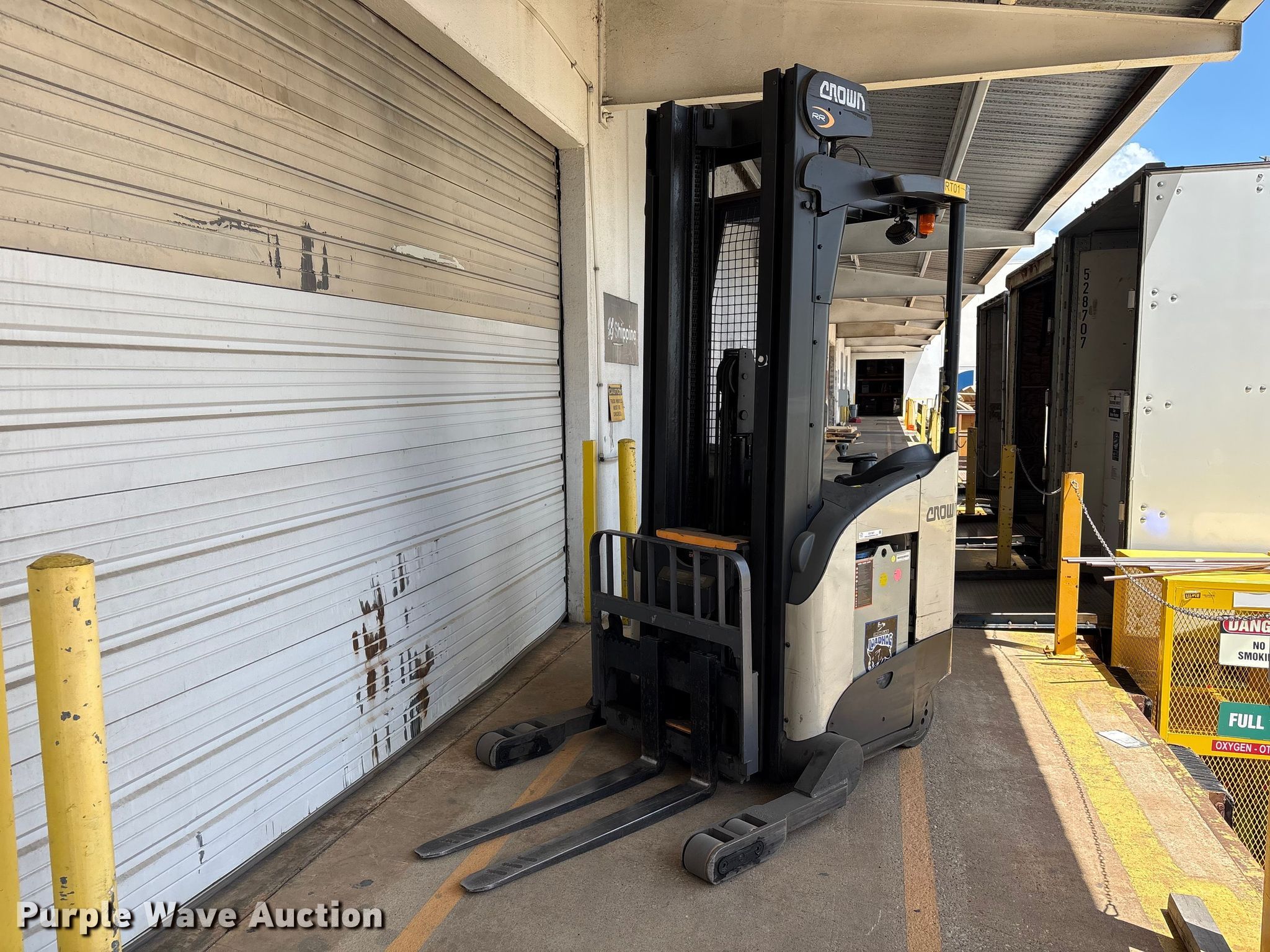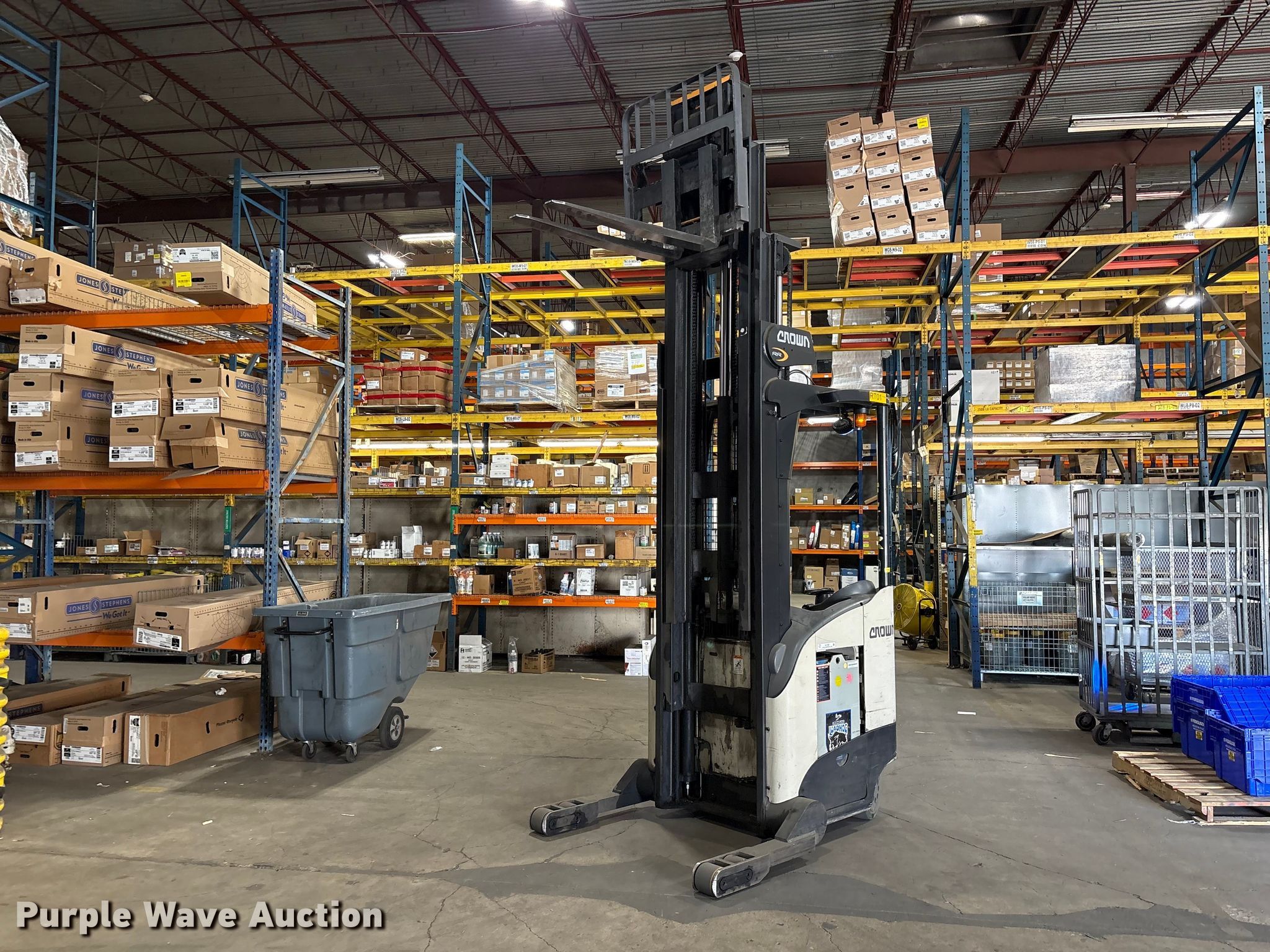 Purple Wave is selling a used Warehouse Forklift in Texas. This item is a 2017 Crown RR5725-35 reach truck with the following: Hours: 3,627 on meter, Serial: 1A516411, Unit #: SFS3220