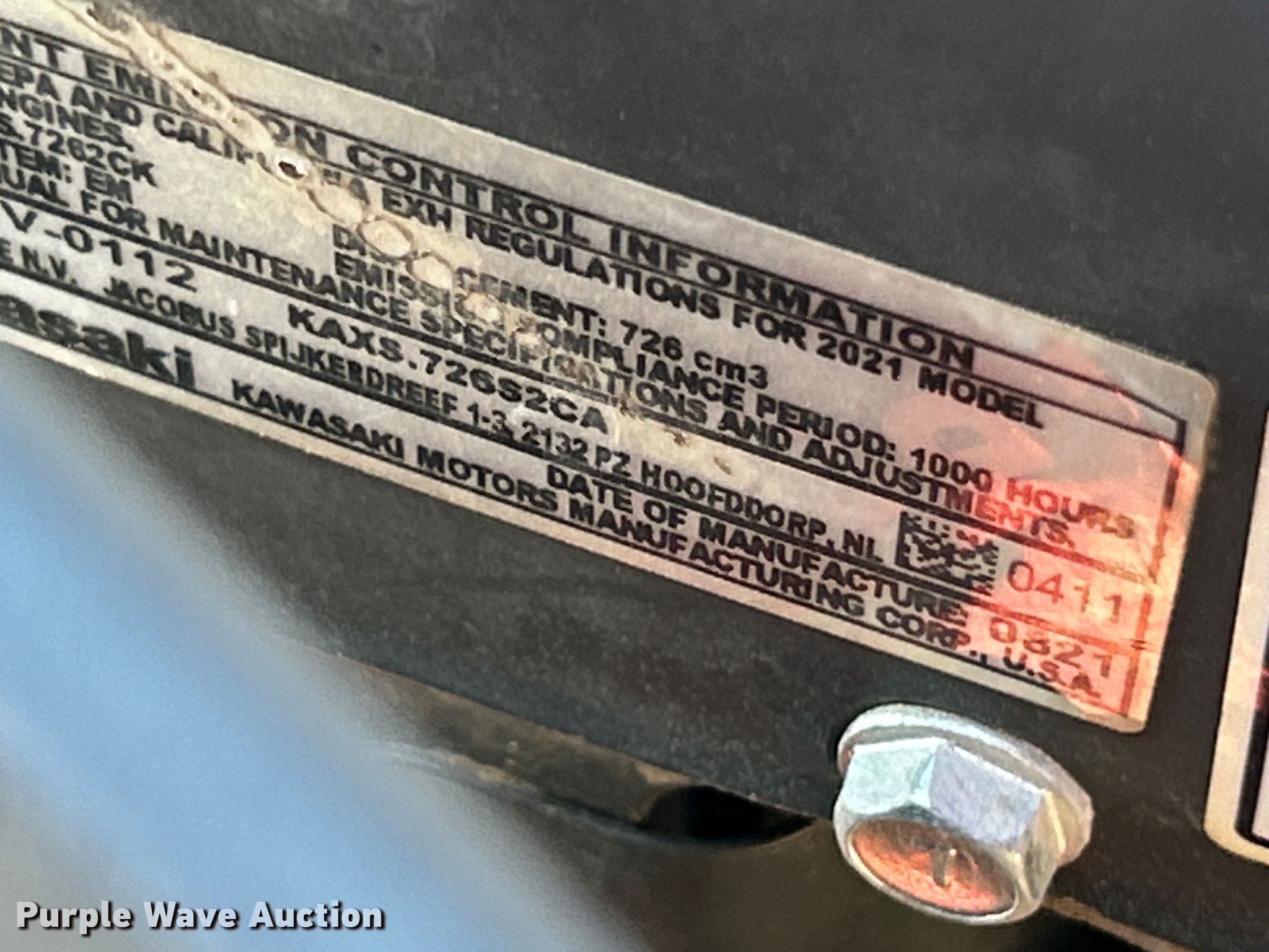 Ferris FW45 ZTR lawn mower. Hours: Unknown, Cutting width: 52", Serial: 4001998574. Engine Kawasaki FX651V, Displacement: 726 cc, Cylinders: 2, Fuel type: Gas, HP: 20.5. Transmission Hydrostatic. Tires Front: 11x4.00-3/3.25, Rear: 20x8.00-10. Notes Unknown operating condition of hour meter. St. Louis Select Landscaping. High Ridge, MO 63049