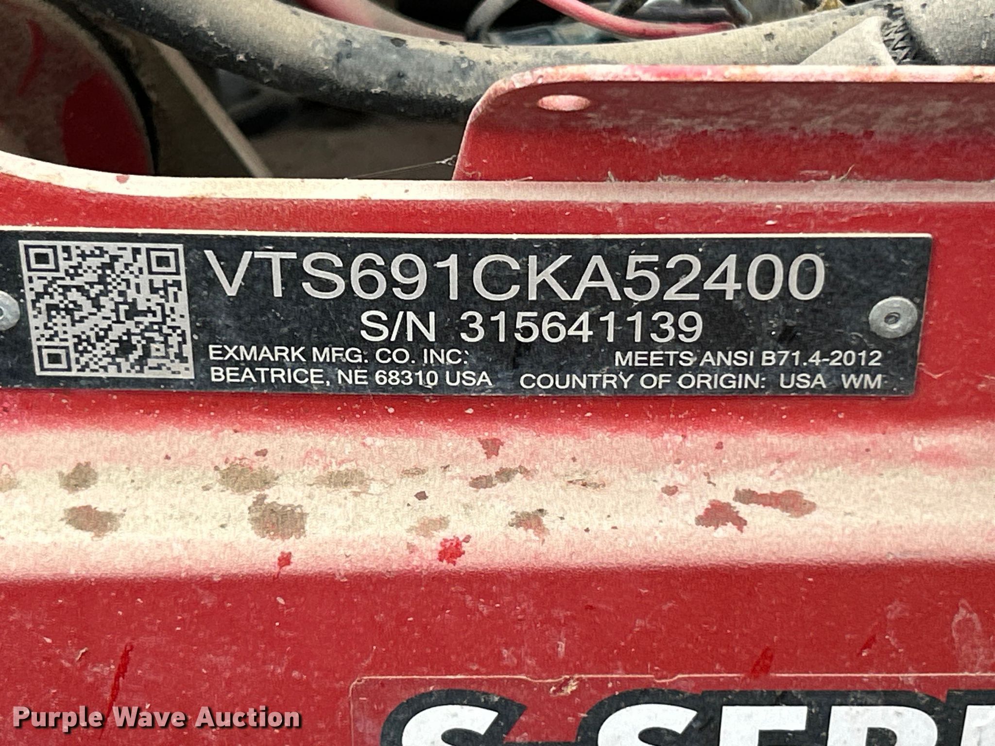 Purple Wave is selling a used Commercial Turf Mower in Missouri. This item is a Exmark S-Series ZTR lawn mower with the following: Hours: 1,917 on meter, Cutting width: 52", Serial: VTS691CKA52400