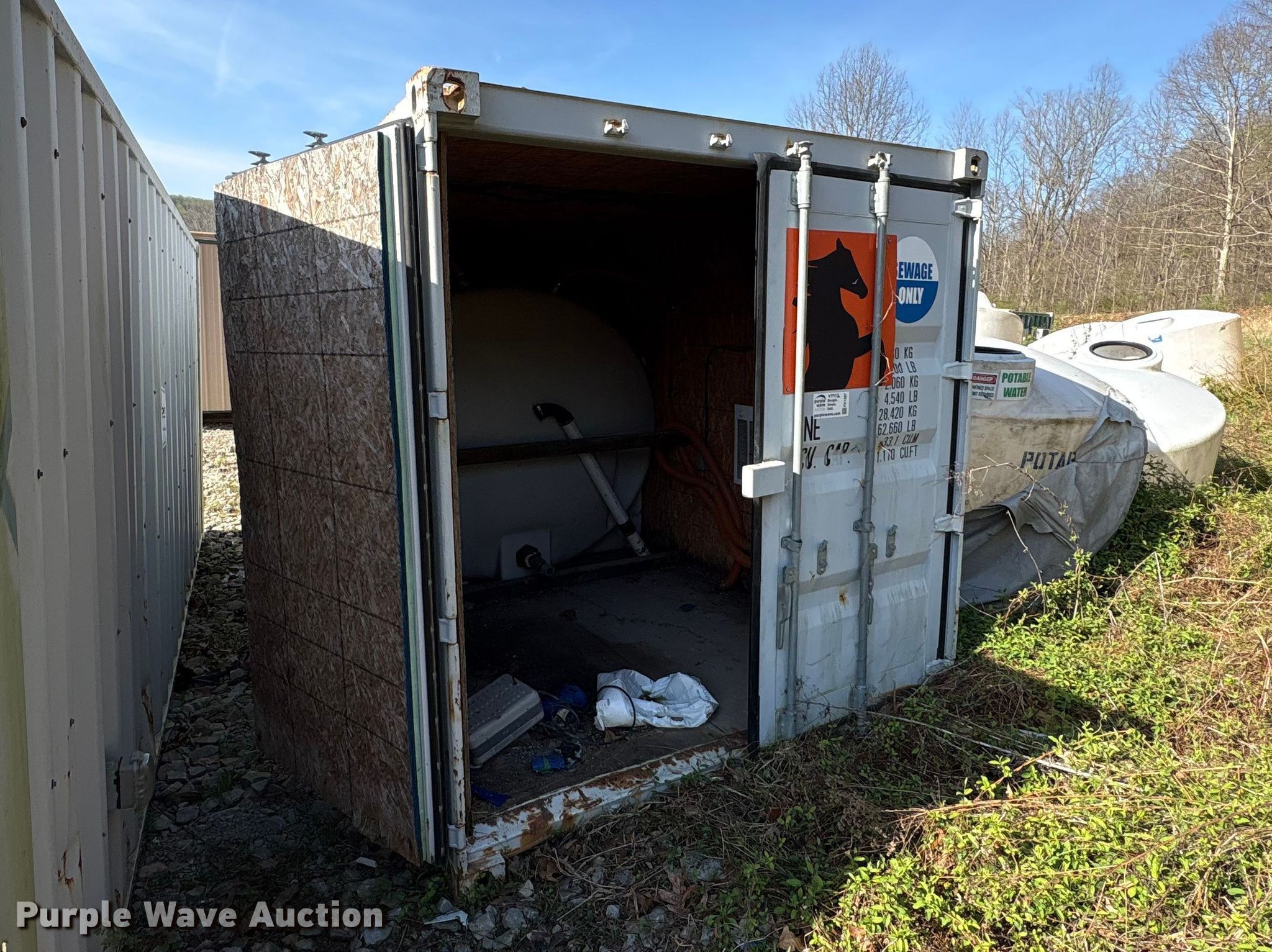 Water tank container. Unit #: 47772. Dimensions Overall Length: 20', Width: 9' 6", Height: 8'. Features Poly tank. Stallion Infrastructure Services Ltd.. Carmichaels, PA 15320