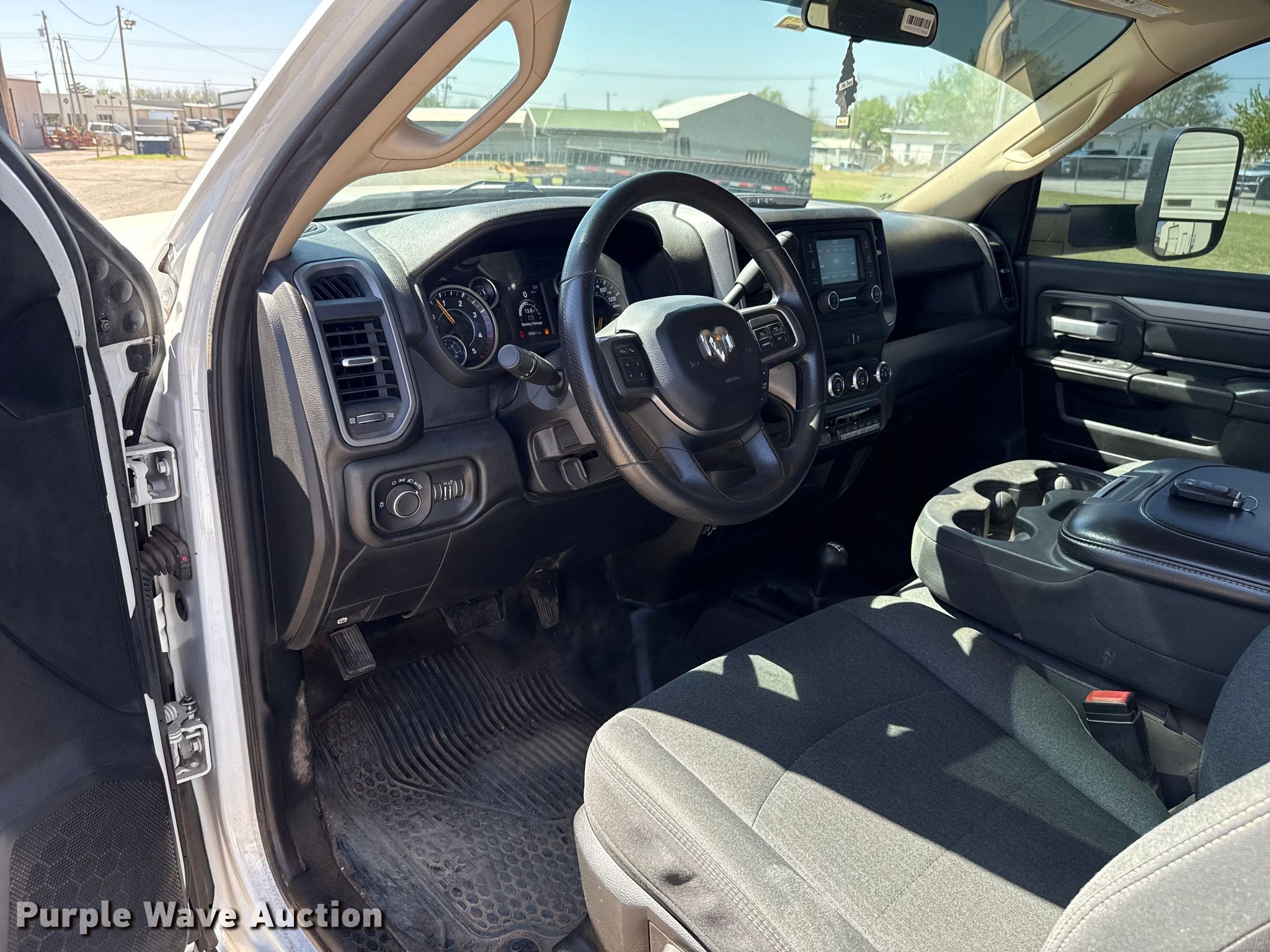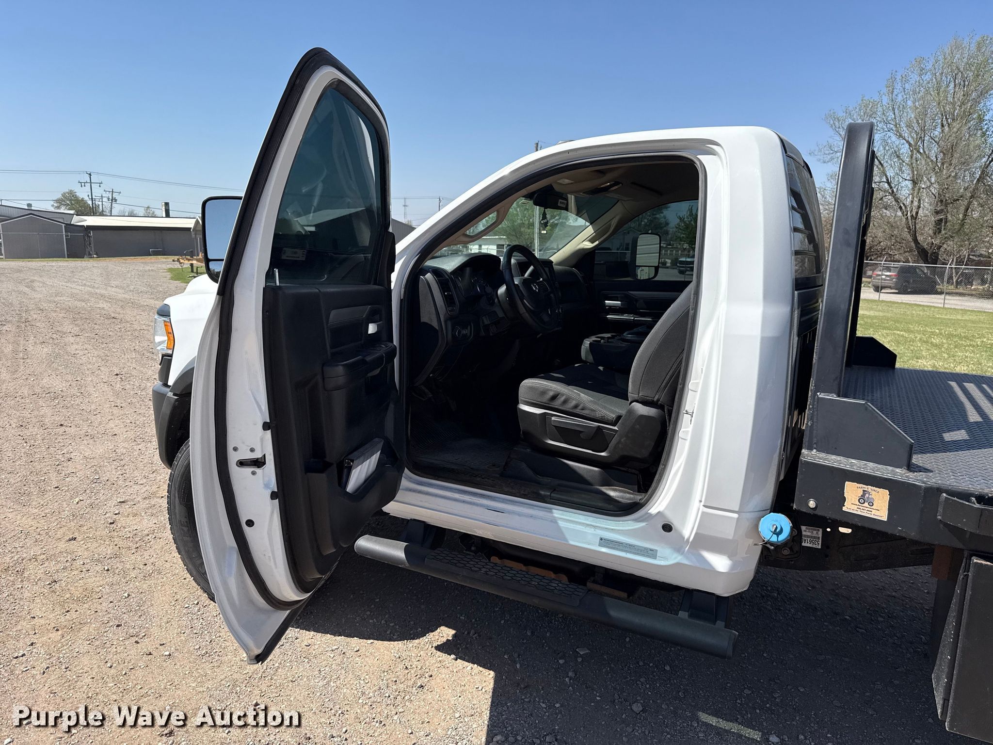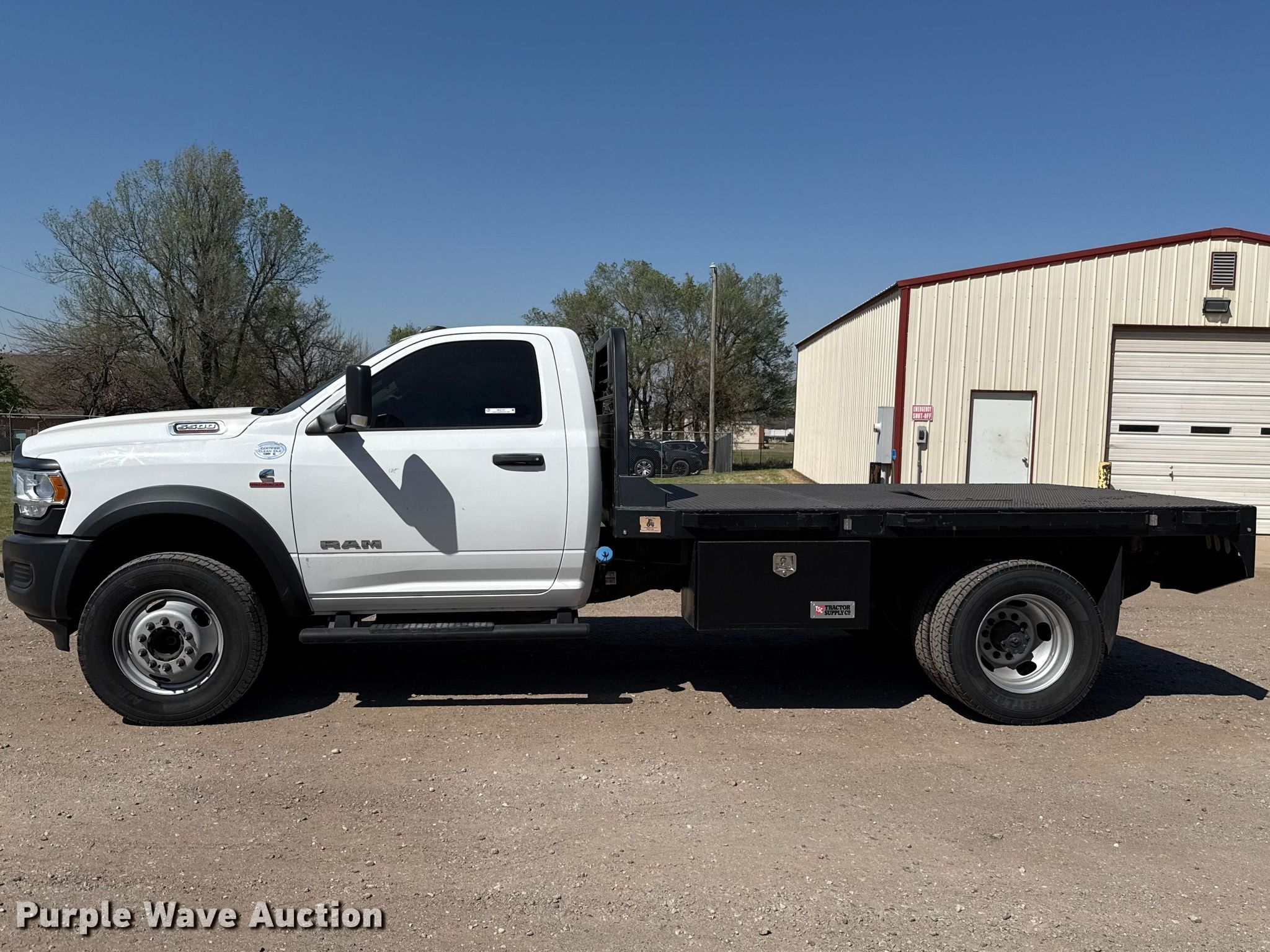 Purple Wave is selling a used Flat Bed Truck in Oklahoma. This item is a 2019 RAM 5500 flatbed truck with the following: Miles: 50,261 on odometer, Hours: 2,108 on meter, VIN: 3C7WRNBL8KG669557