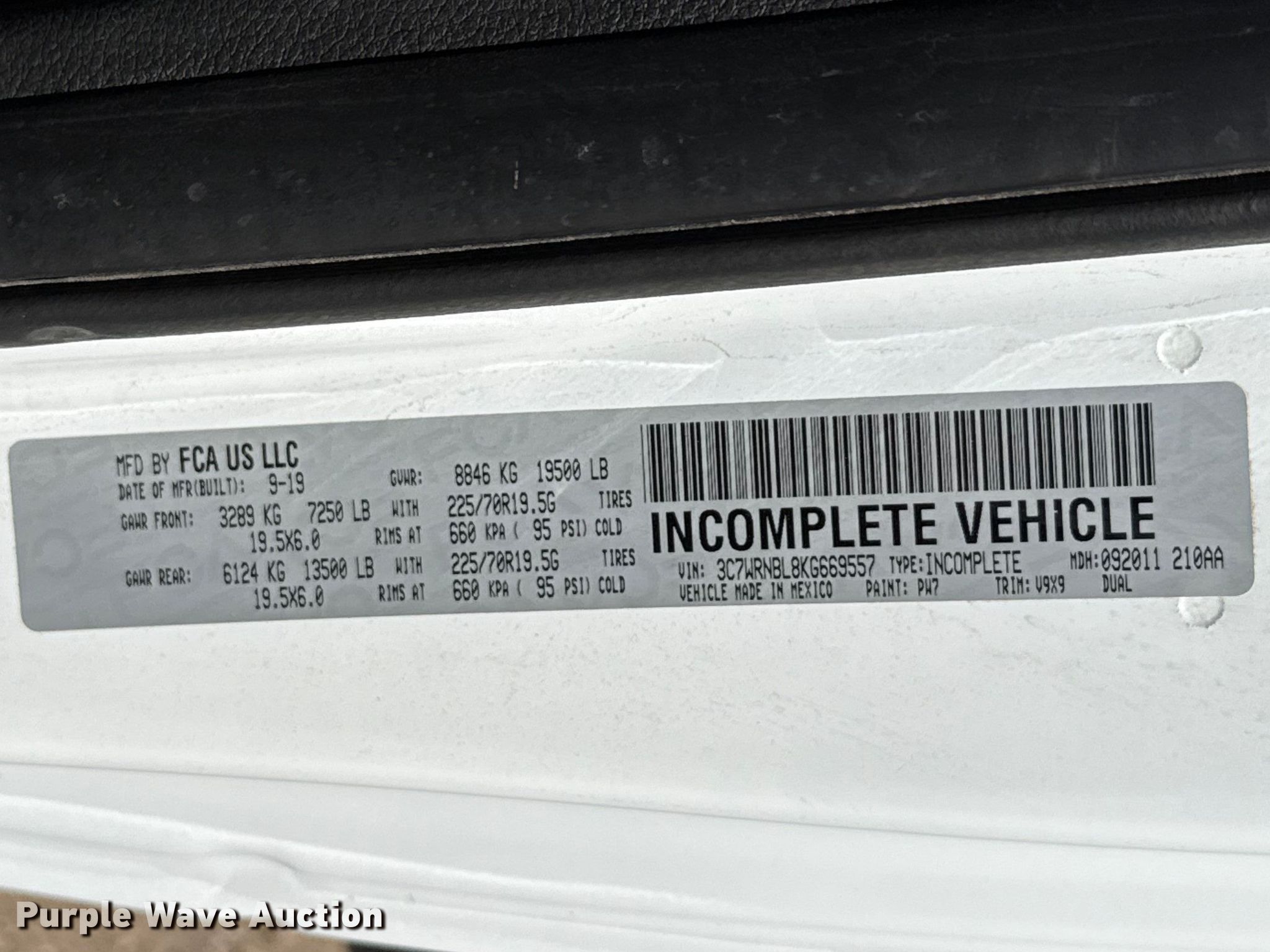 - VIN: 3C7WRNBL8KG669557