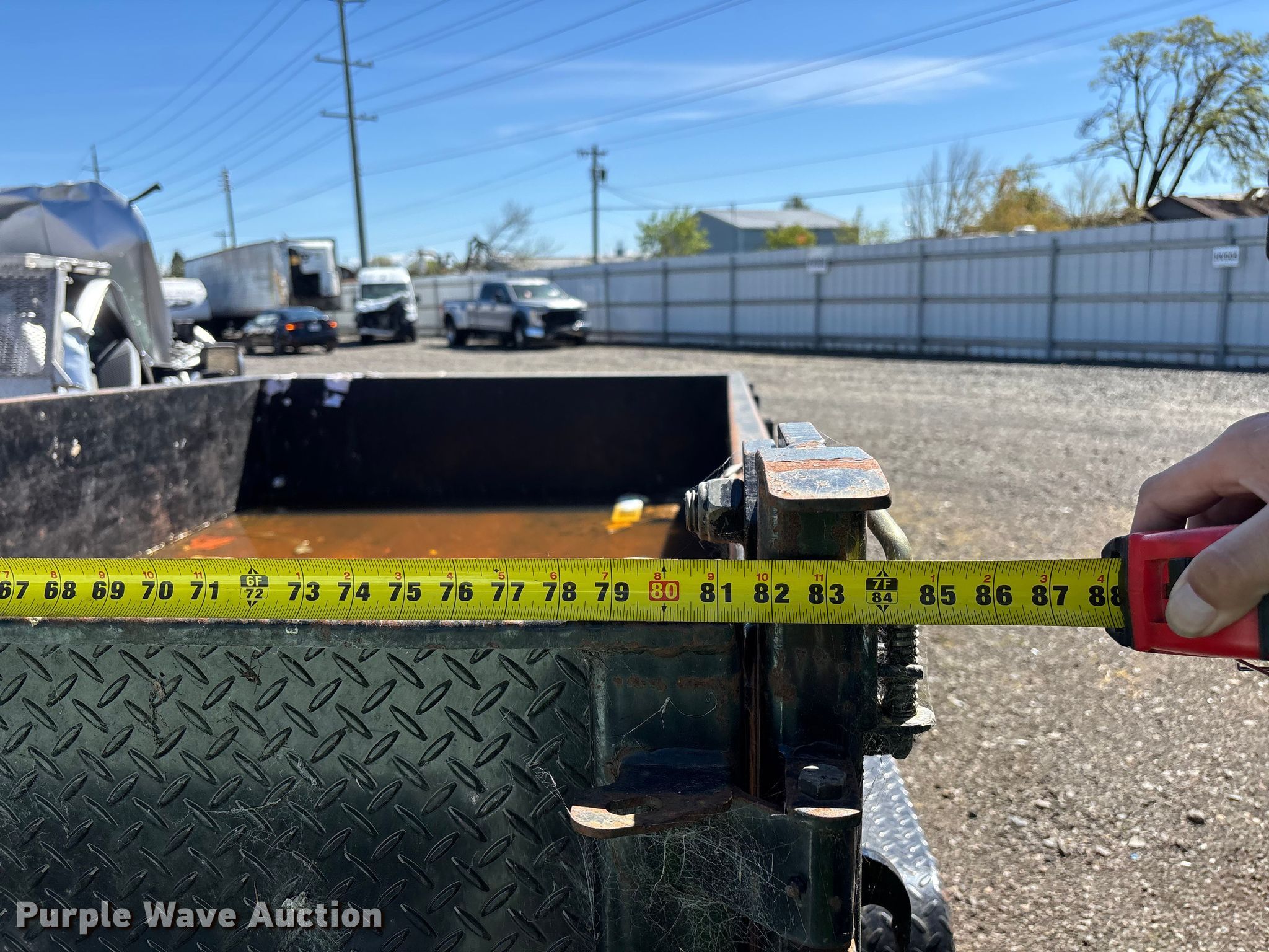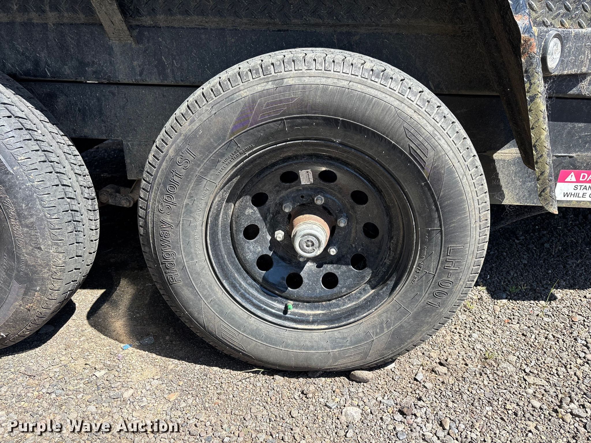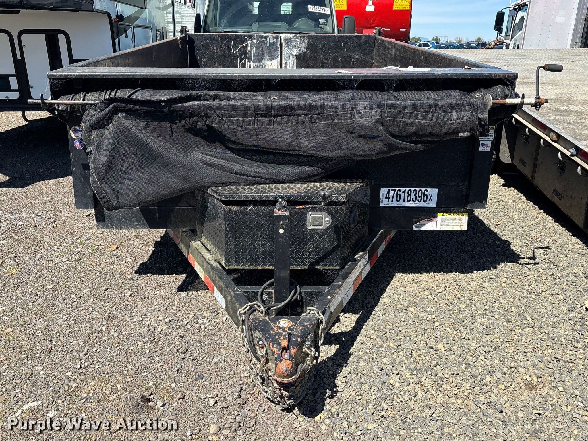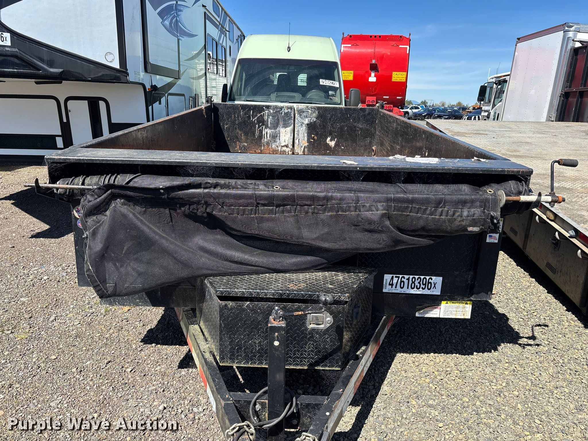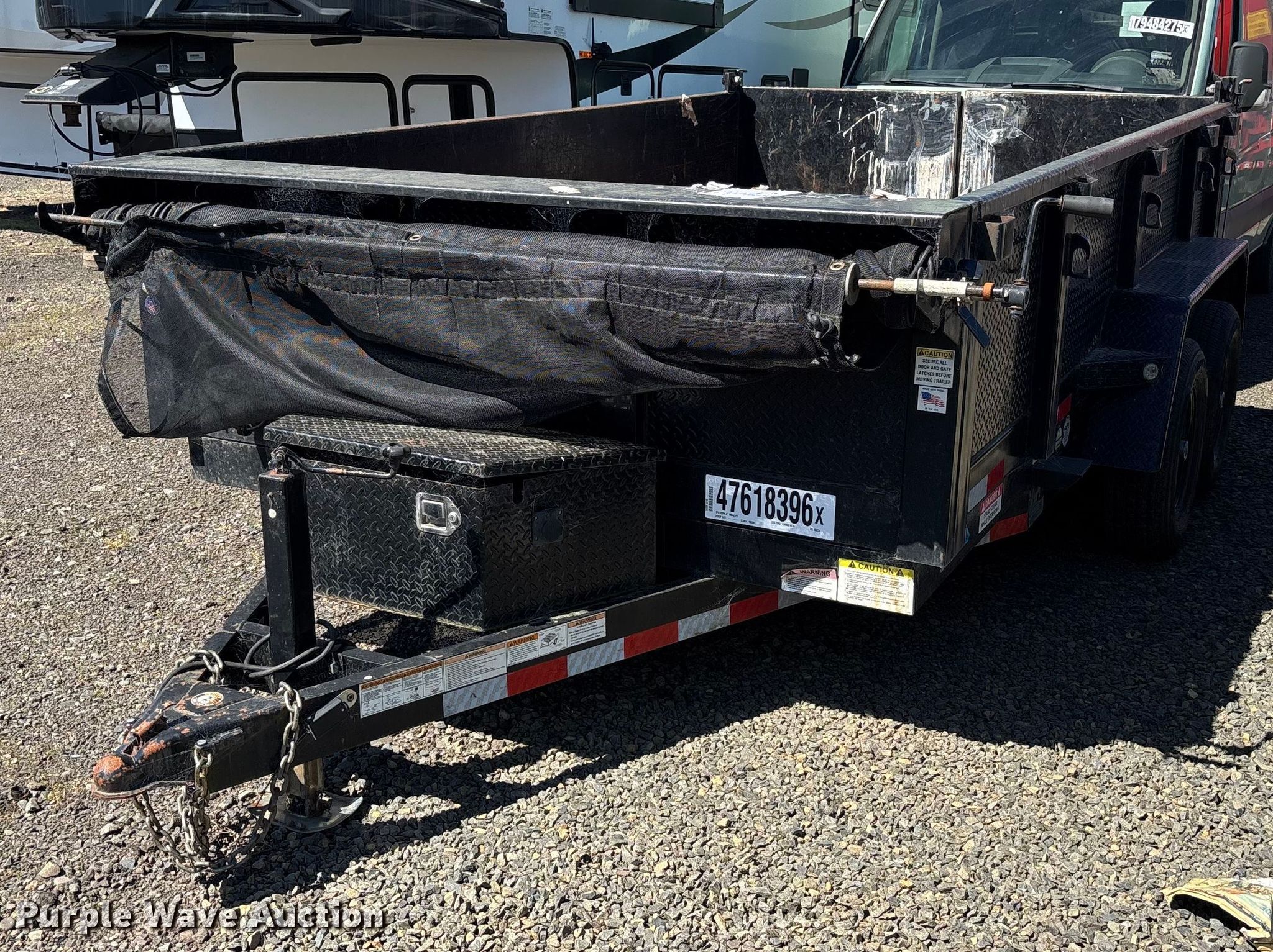 2023 FabForm PT712-10KS dump trailer. VIN: 58XBD1222P1000274, Unit #: 47618396. Dimensions Overall Length: 17', Width: 96", Body Length: 12', Width: 86", Side height: 24". Features Body type: Steel, Ram: Single, End gate: Manual, Roll tarp. Chassis Ball hitch: 2 5/16", Landing gear: Single, Suspension: Spring, Brakes: Electric, Axles: Tandem, GVWR: 9,999 lbs. Tires Steel wheels, Size: 225/75R15. Repossessed item, stored at a secured facility. Please review REQUIRED REMOVAL INSTRUCTIONS. Titles will be distributed after confirmation of payment and removal. Oregon title. Title distribution may be delayed up to 30 days from verification of funds. Lender Owned. 29815 East Enid Road. Eugene, OR 97402