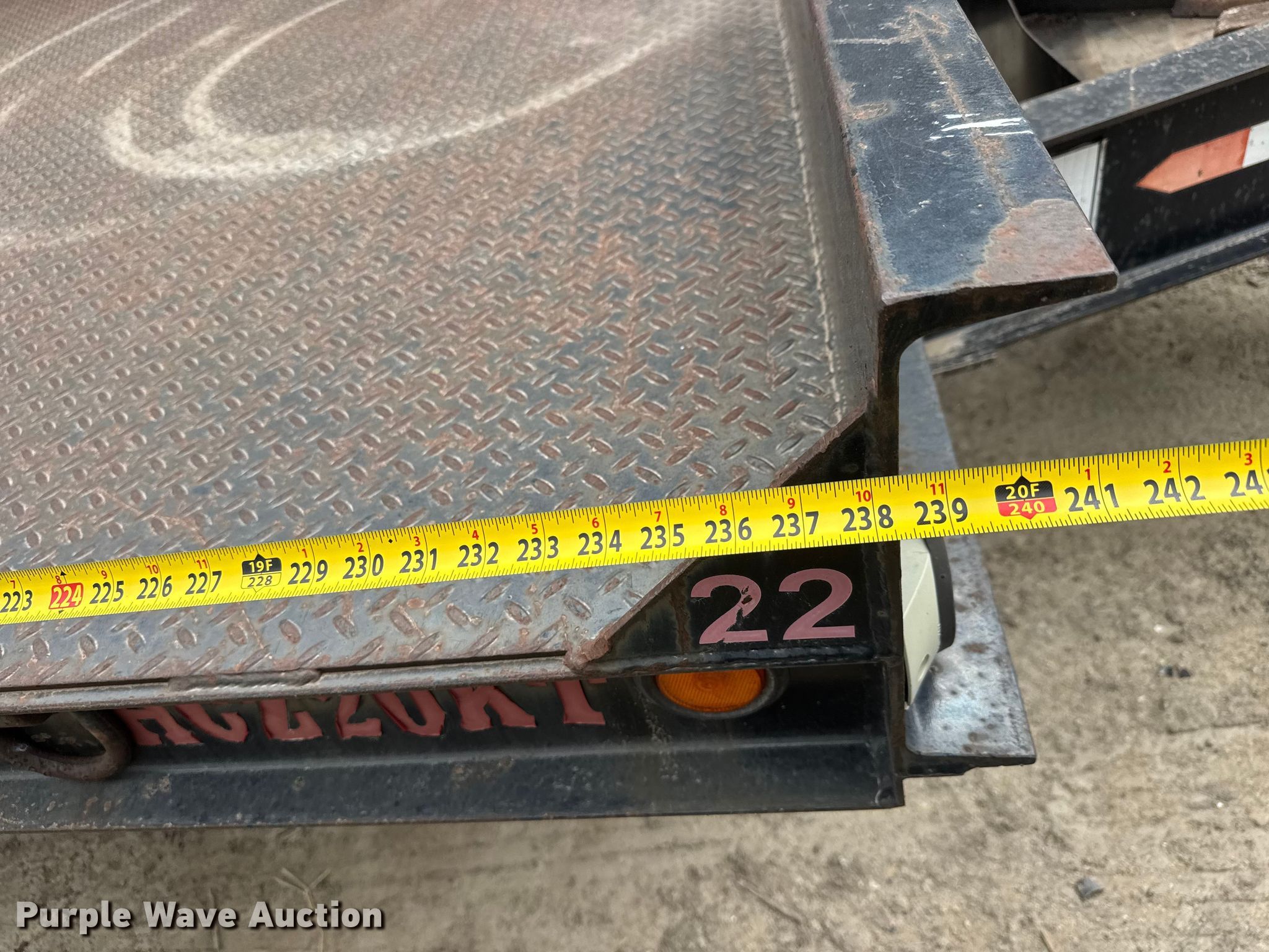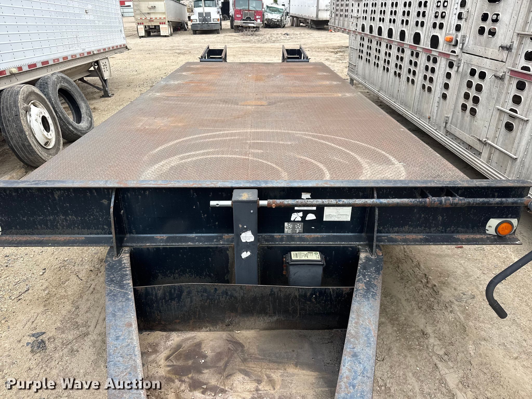 2007 Holden HCZ20KT equipment trailer. VIN: 12HZD30237S108542, Lot #: 48480076. Dimensions Overall Length: 31', Width: 102", Deck Length: 19' 10", Width: 102", Deck height: 3', Tail length: 5' 2", Ramps: Manual Length: 5'. Features Deck type: Steel. Chassis Hitch: Pintle, Landing gear: Single, Suspension: Spring, Brakes: Electric, Axles: Tandem, GVWR: 26,000 lbs, GAWR: 10,000 lbs. Tires Steel wheels, Size: 235/85R16. Repossessed item, stored at a secured facility. Please review REQUIRED REMOVAL INSTRUCTIONS. Lender owned. Item condition and history are unknown. No additional information is available. Titles will be distributed after confirmation of payment and removal. Kansas title. Title distribution may be delayed up to 30 days from verification of funds. Lender Owned. Witchita, KS 67216