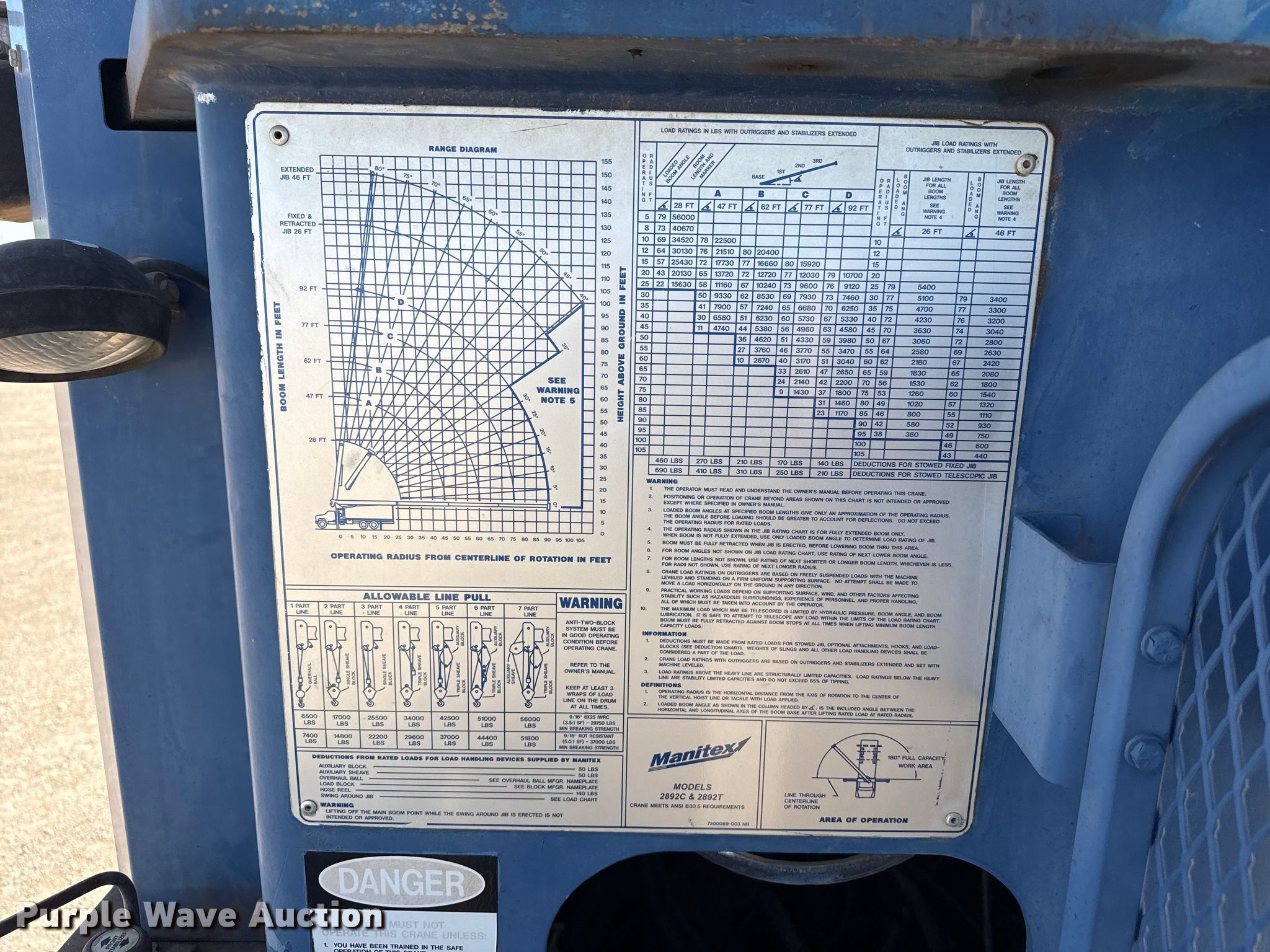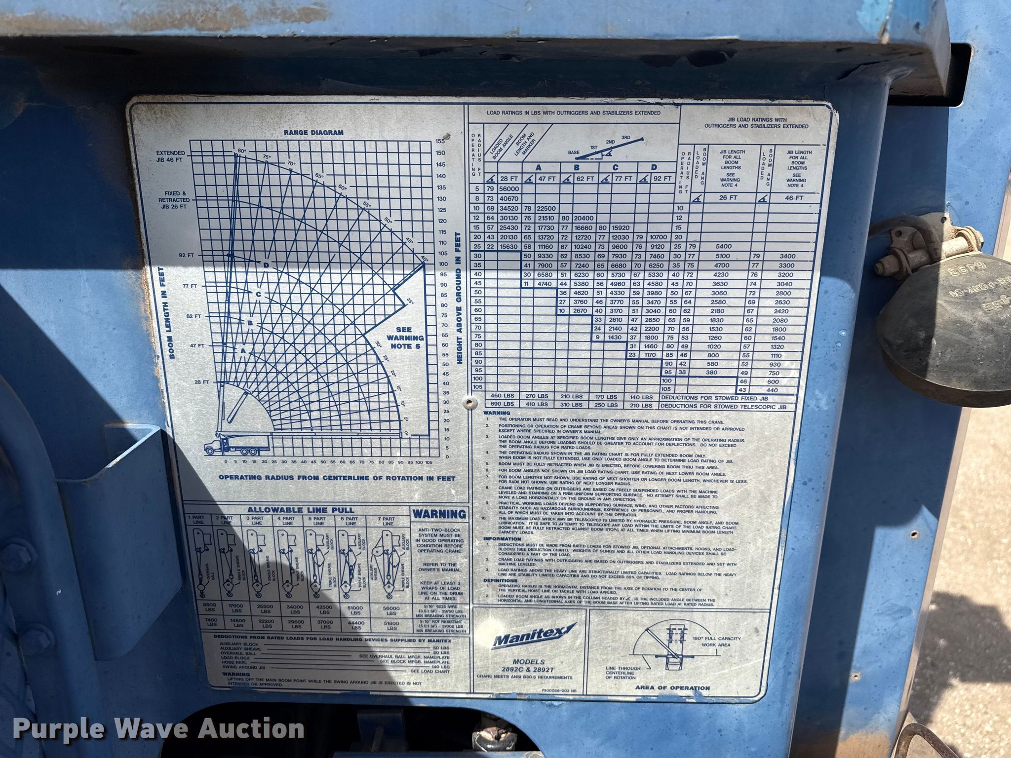 2015 Peterbilt 365 crane truck. Miles: 6,773 on odometer, Hours: 286 on meter, VIN: 1NPSLP0X5FD306403. Engine Paccar, Displacement: 12.9L, Cylinders: 6, Fuel type: Diesel. Transmission Eaton Fuller, Manual, Speed: 10. Chassis Axles: Tandem, Differential lock: Full, Suspension: Air, Brakes: Air, PTO. Interior AC, Heat, Heated mirrors, Power windows, Cruise control. Features Bed Flatbed, Length: 19', Width: 96", Crane Manitex 2892C, Boom Telescopic, Maximum boom length: 92' Sections: 4, Maximum lift capacity: 56,000 lbs, Boom controls Ground, Crane block Sheaves: 1, Capacity: 15 tons, Lift chart. Tires Front: 425/65R22.5, Rear: 11R22.5. Oklahoma title. Seller is a Texas licensed motor vehicle dealer. The buyer may be required to pay sales tax and/or registration fees to the dealer prior to taking possession. Buyers may be required to provide identification to the licensed dealer to comply with state laws. Title will be assigned and distributed by the dealer. Please contact the seller for distribution questions. Specialty Trucks of Lubbock. Perryton, TX 79070