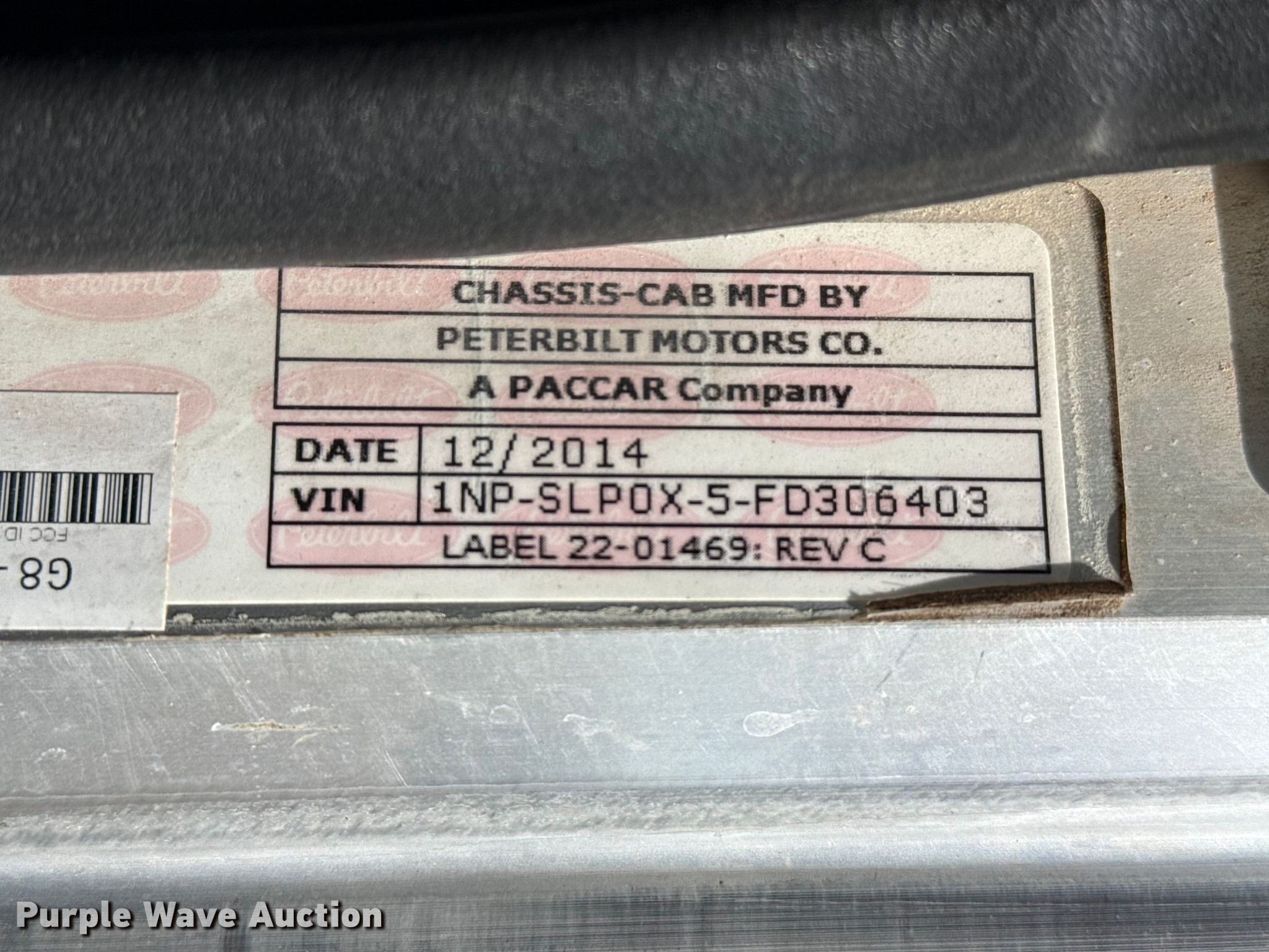 Purple Wave is selling a used Crane Truck in Texas. This item is a 2015 Peterbilt 365 crane truck with the following: Miles: 6,773 on odometer, Hours: 286 on meter, VIN: 1NPSLP0X5FD306403