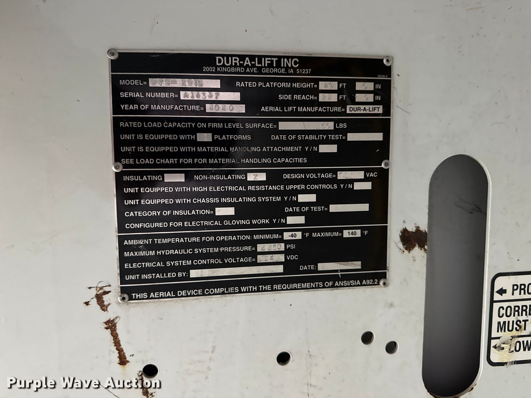 - 2020 Dur-A-Lift Inc DVS-29TS