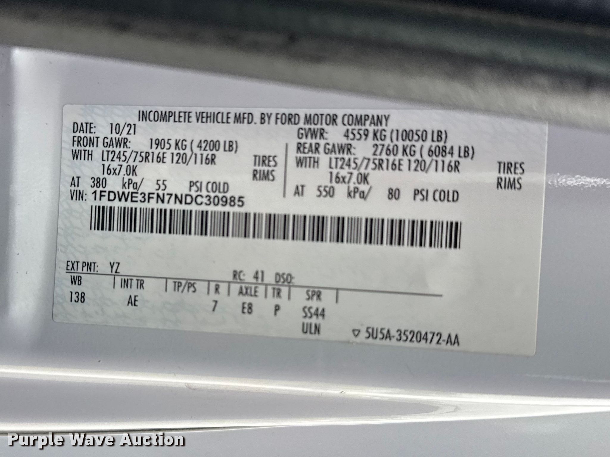 - VIN: 1FDWE3FN7NDC30985