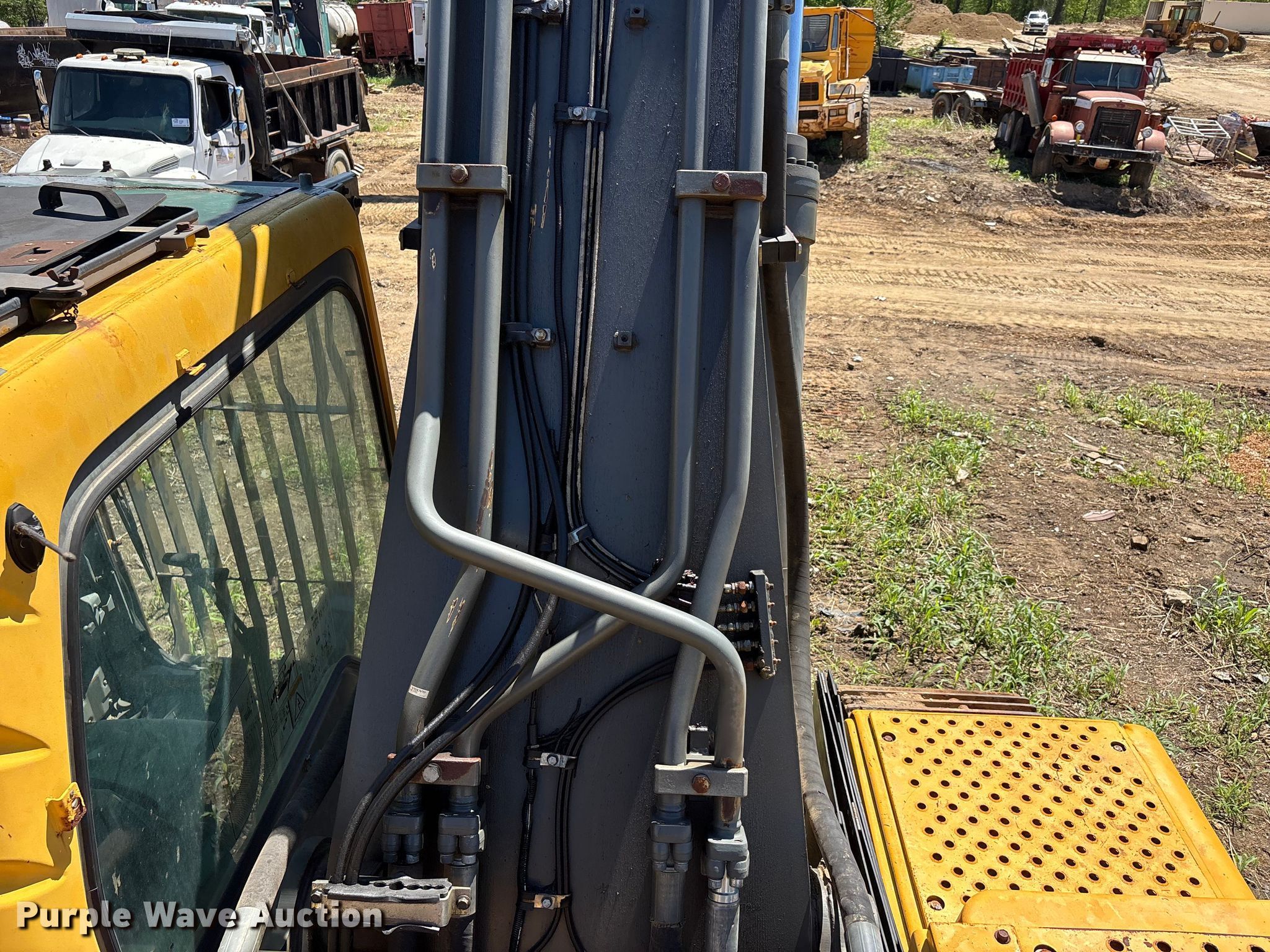 2006 Volvo EC360BLC excavator. Hours: Unknown, Serial: EC360V80129. Engine Volvo, Displacement: 12.1L, Cylinders: 6, Fuel type: Diesel. Transmission Hydrostatic. Operators station Enclosed cab, Heat. Features Auxiliary hydraulics, Counter weights, Boom Standard, Stick Stick length: 12' 10", Bucket Width: 71", Teeth: 6. Tracks Width: 32", Steel, Grouser pads: Triple. Notes Hour illumination issues, Front windshield missing, Glass cracked, Engine issues, will not stay running. Precise Concrete Works. Memphis, TN 38106