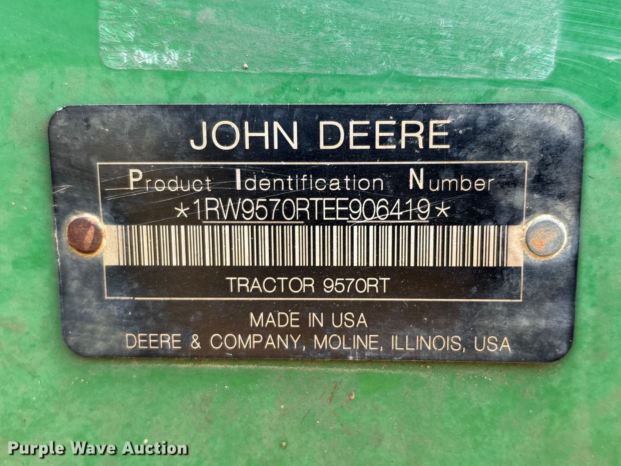 Take a look at this used 2014 John Deere 9570RT tractor being sold on May 21st, 2026 in the Thursday May 21 Construction Equipment Auction made by John Deere. Take a look at all of the item information below or take a look at similar auctions for Ag Tractor.