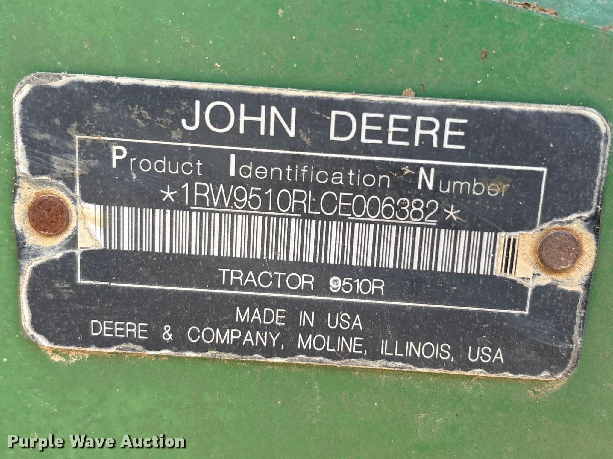 Take a look at this used 2012 John Deere 9510R 4WD tractor being sold on May 21st, 2026 in the Thursday May 21 Construction Equipment Auction made by John Deere. Take a look at all of the item information below or take a look at similar auctions for Ag Tractor.