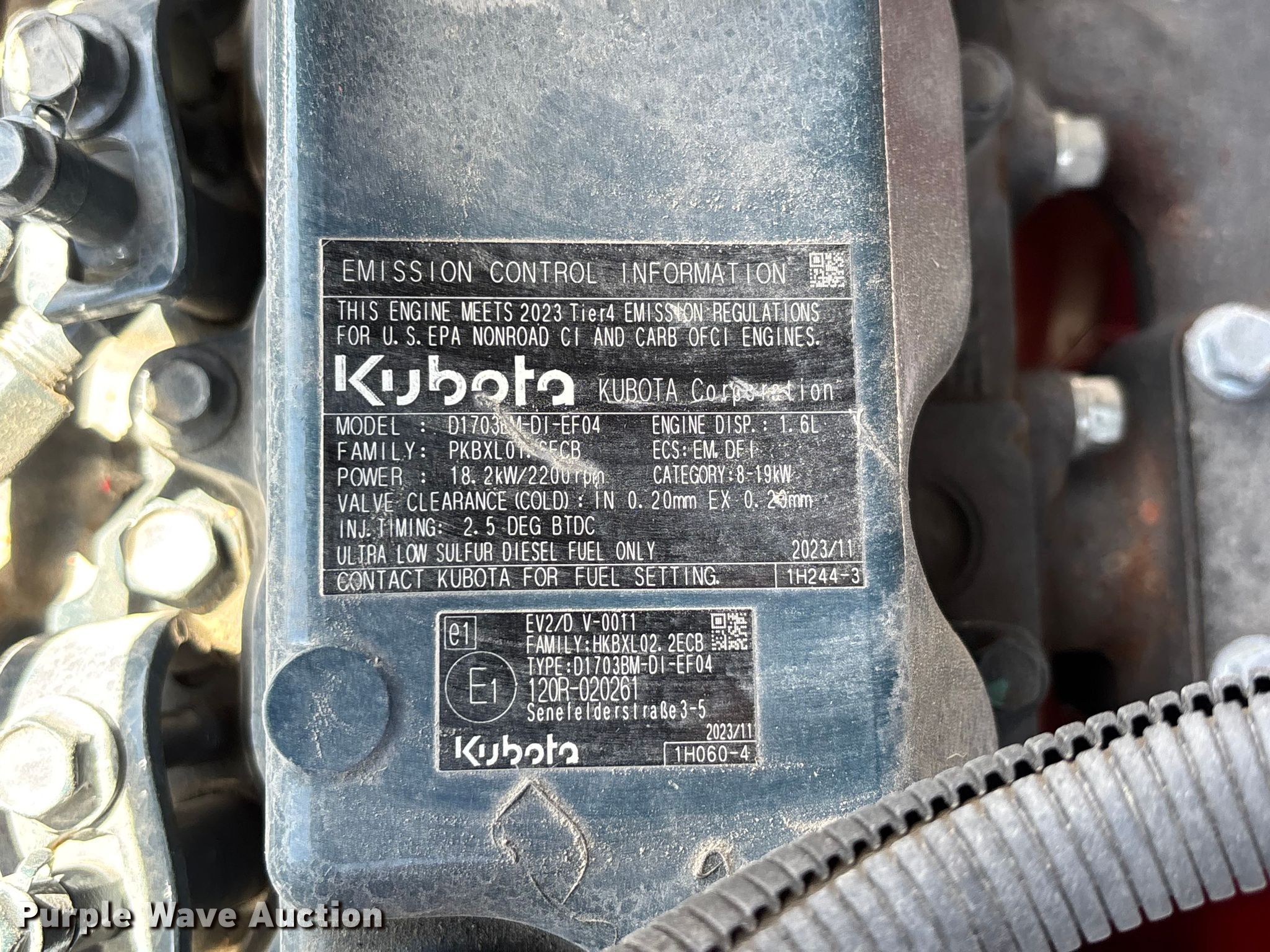 2024 Hisckeno HK190. Hours: 22 on meter, Serial: 2407002. Engine Kubota D1703BM- D1-EF04, Displacement: 1.6L, Cylinders: 3, Fuel type: Diesel. Transmission Hydrostatic, Two speed travel. Operators station Bucket controls: Joystick. Features Auxiliary hydraulics: Front, Quick coupler: Hydraulic, Bucket Width: 60", Cutting edge: Weld-on, Teeth: 7. Tires Size: 31x15.50R15. Q and A Equipment. Paducah, KY 42003