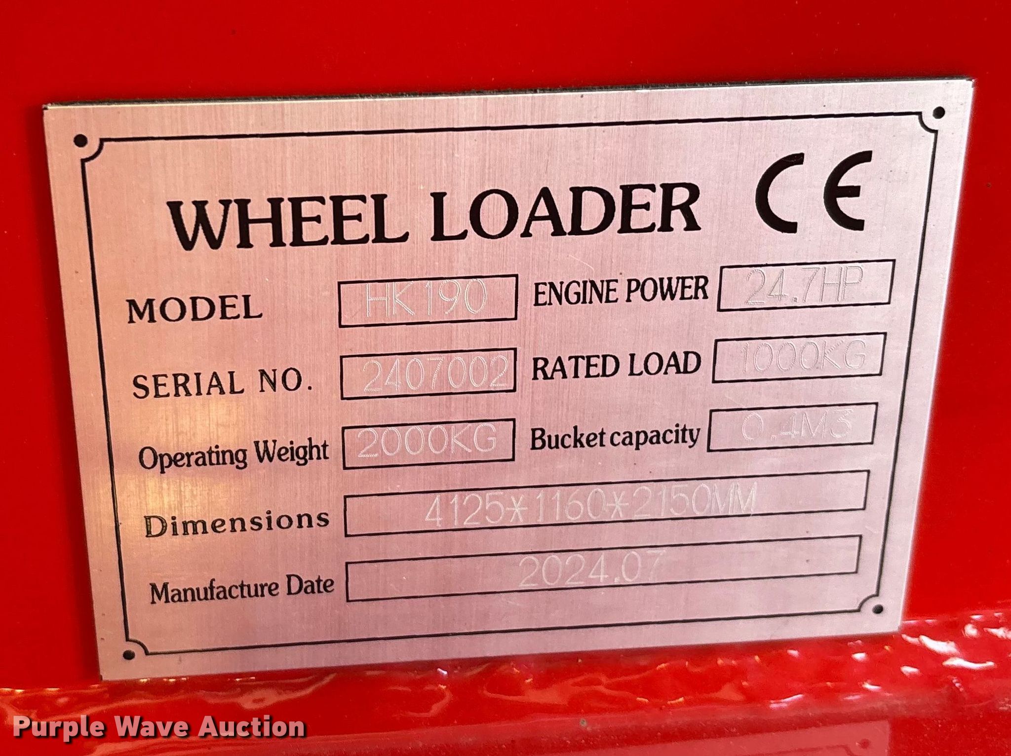 Purple Wave is selling a used Wheel Loader in Kentucky. This item is a 2024 Hisckeno HK190 with the following: Hours: 22 on meter, Serial: 2407002