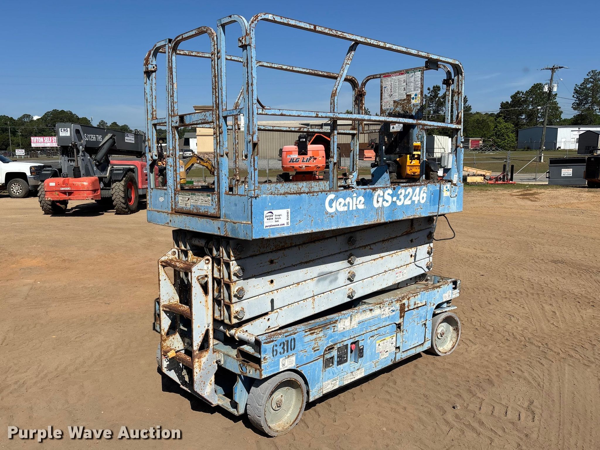 Purple Wave is selling a used Scissor or Vertical Lift in Georgia. This item is a 2014 Genie GS-3246 scissor lift with the following: Hours: Unknown, Serial: GS4614A-116310, Unit #: 6310