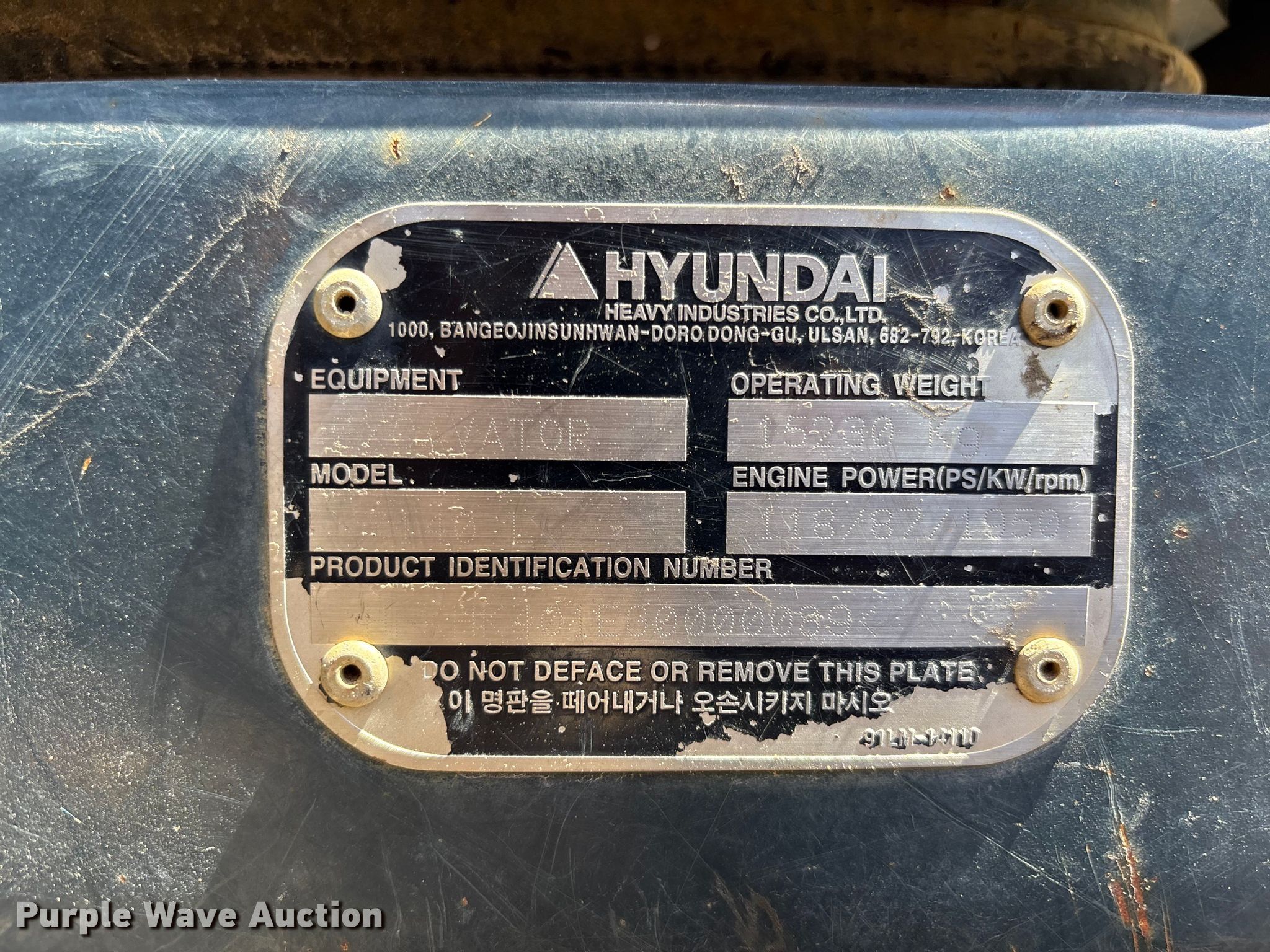Purple Wave is selling a used Hydraulic Excavator in Georgia. This item is a Hyundai HX140L excavator with the following: Hours: 2,807 on meter, Serial: HHKHK401EG0000089, Unit #: 003754-000