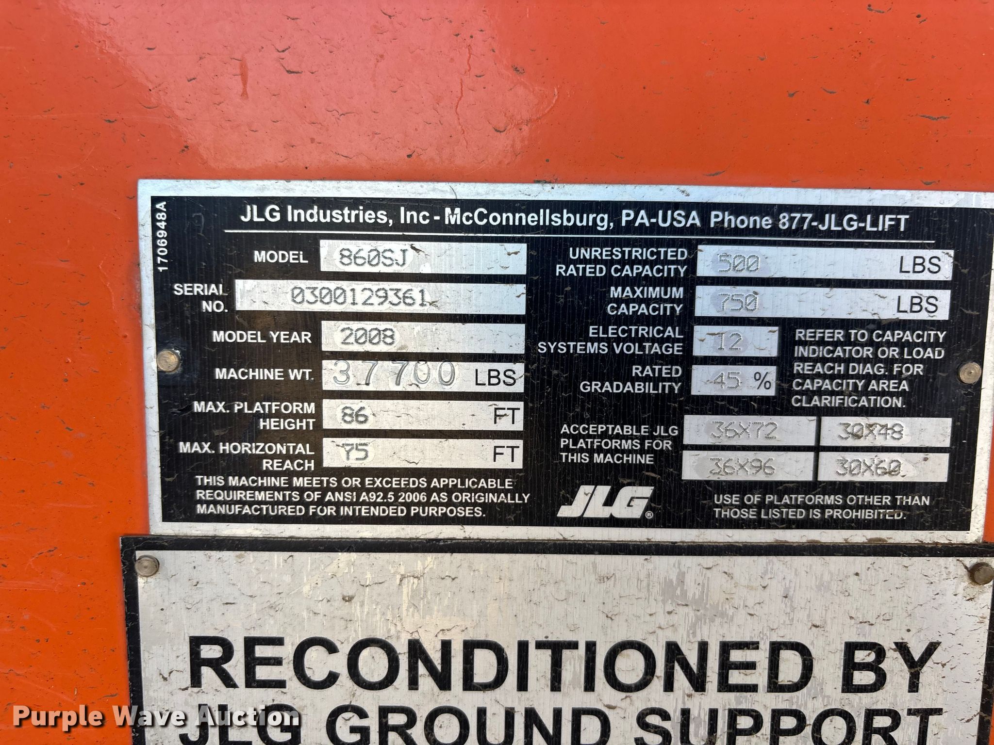 2008 JLG 860SJ boom lift | Thursday May 21 Construction Equipment Auction