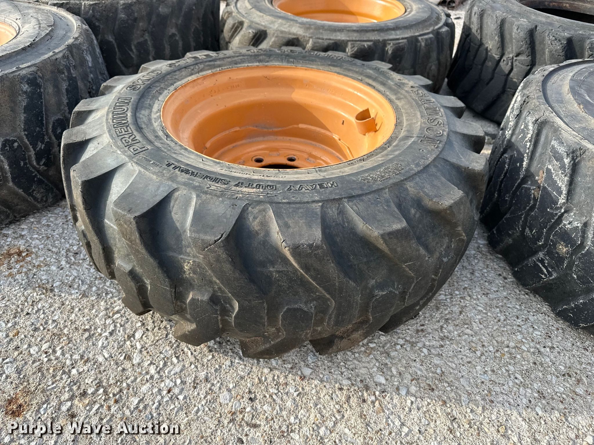 Purple Wave is selling a used Skid Steer Attach. in Kansas. This item is a Skid steer attachments with the following: Width: 72", Teeth: Weld-on, (5) 12-16.5 tires and wheels, Removed from a Case 1845C, Titan Hd 12-16.5 tire