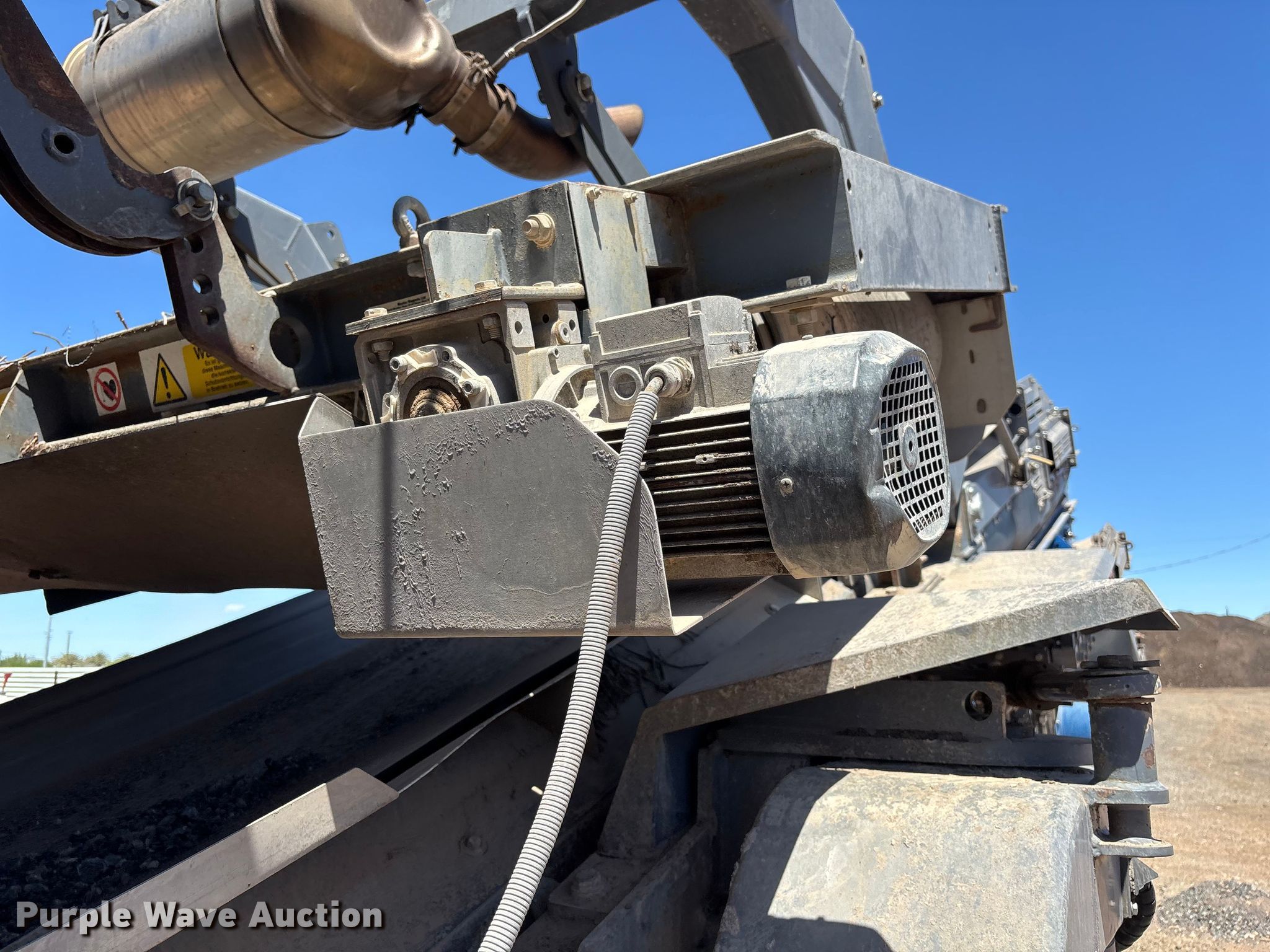 2016 Kleemann K078 MR130Zi EVO2 mobile impact crushing plant. Hours: 1,698 on meter Actual hours: Unknown, Serial: K0780022. Engine Scania, Cylinders: 6, Fuel type: Diesel. Electric Motor Meccalte ECP34 1L4 Serial: V032244, kW: 108, Volts: 230/400, Phase: Three. Features Impact, Screen Length: 7' 6", Width: 47", Input hopper Length: 11', Width: 91", Vibrating, Discharge conveyor 23' L x 48" W, Magnet, Remote control, Top rear discharge conveyor 32' L x 54" W, Return feed conveyor 33' L x 20" W, Side discharge conveyor 20' L x 25' W, Magnet conveyor 9' L x 30" W. Tracks Width: 16". Notes Hour meter replaced. Specialized Transport Services, LLC. Phoenix, AZ 85085