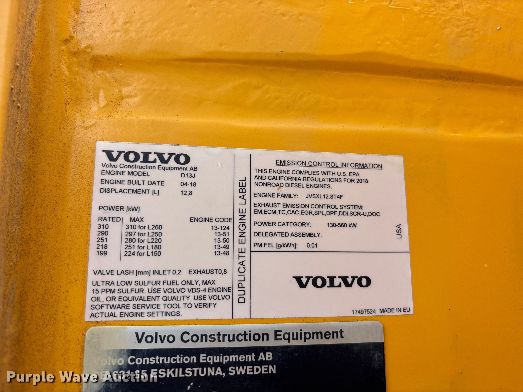 This 2018 Volvo L220H wheel loader will sell to the highest bidder regardless of price.