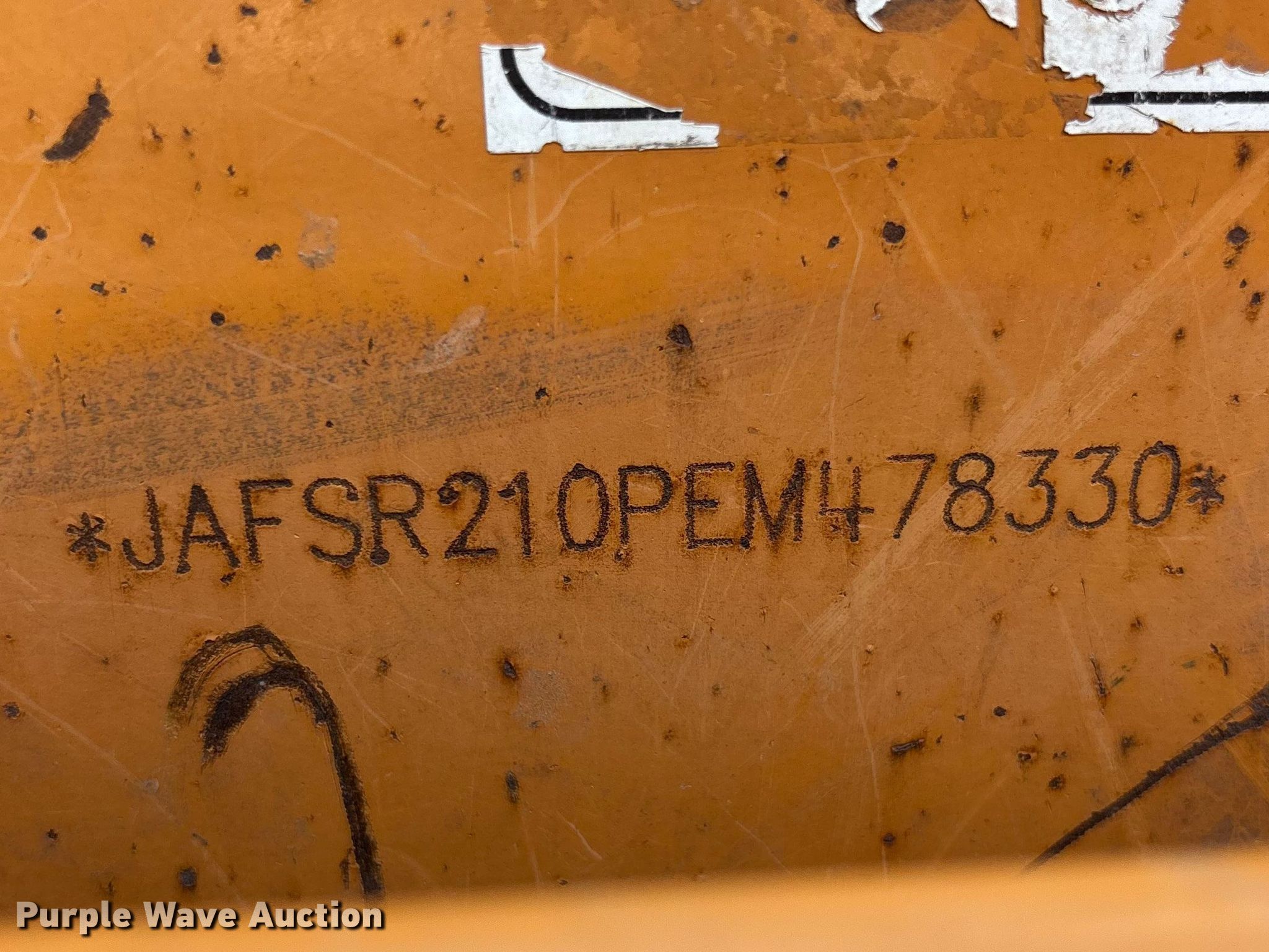 2014 Case SR210 skid steer loader. Hours: 1,538 on meter, Serial: JAFSR210PEM478330. Engine Cylinders: 4, Fuel type: Diesel. Transmission Hydrostatic, Two speed travel. Operators station Enclosed cab, AC, Heat, Bucket control: Hand, Electronic Monitoring System panel. Features Auxiliary hydraulics, Quick coupler: Manual, Counter weights, Bucket Case, Width: 66", Low profile, Cutting edge: Bolt-on. Tires Size: 33-12-20, Solid. Notes Glass cracked, Non-operational AC AC belt removed. Matt Allen Farms. Horton, KS 66439