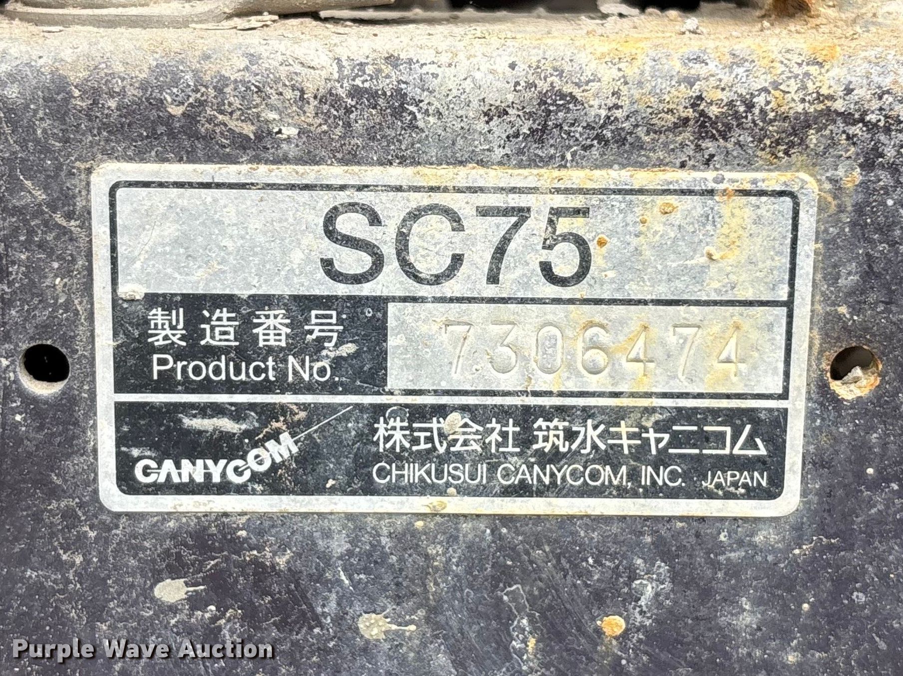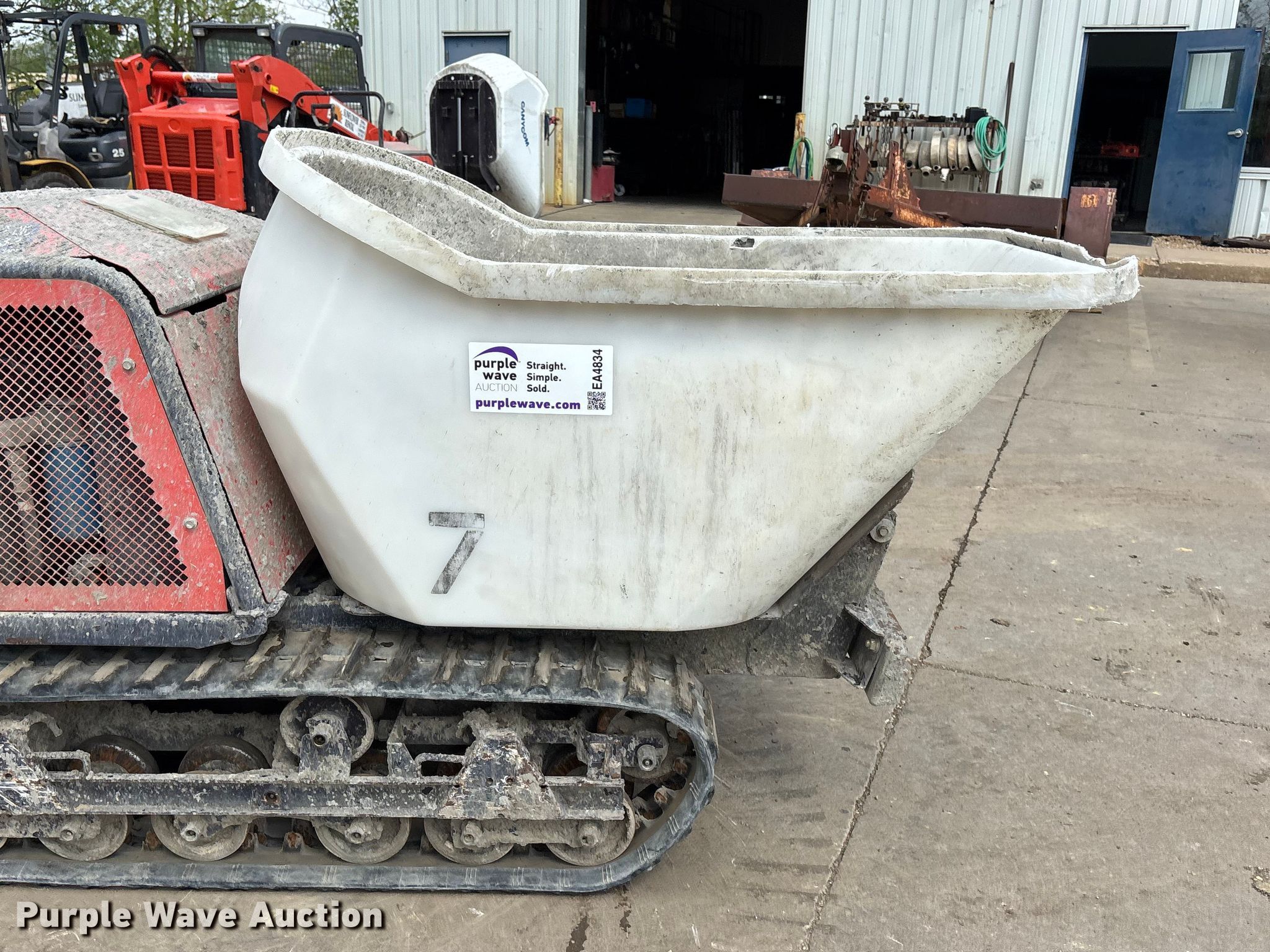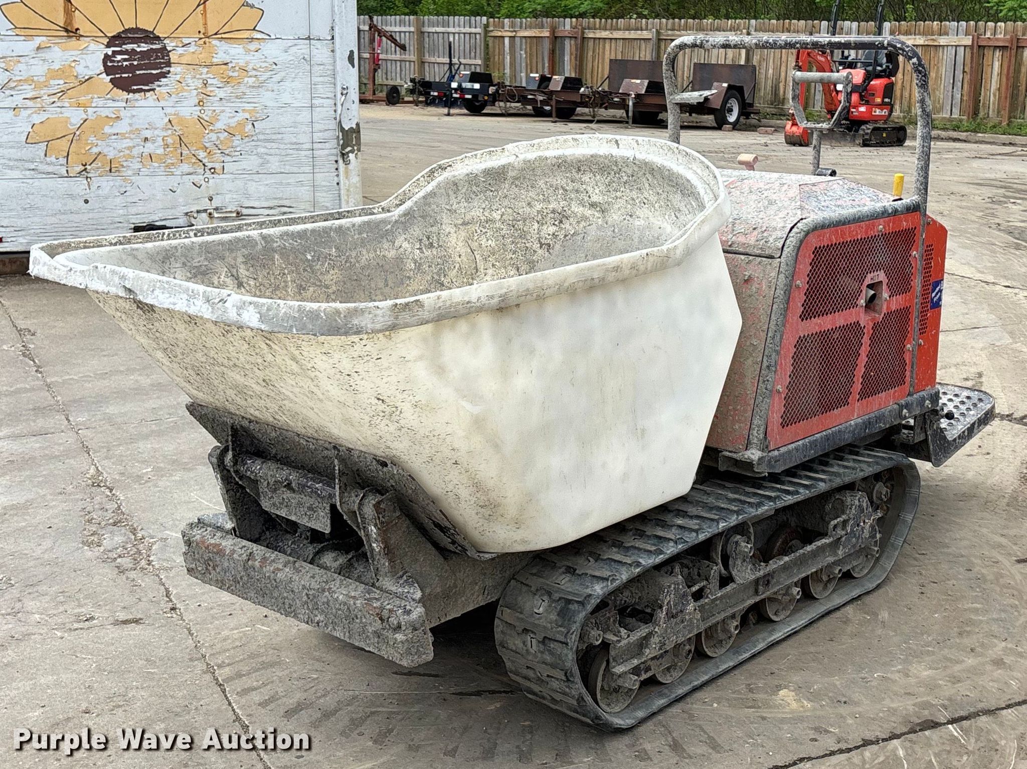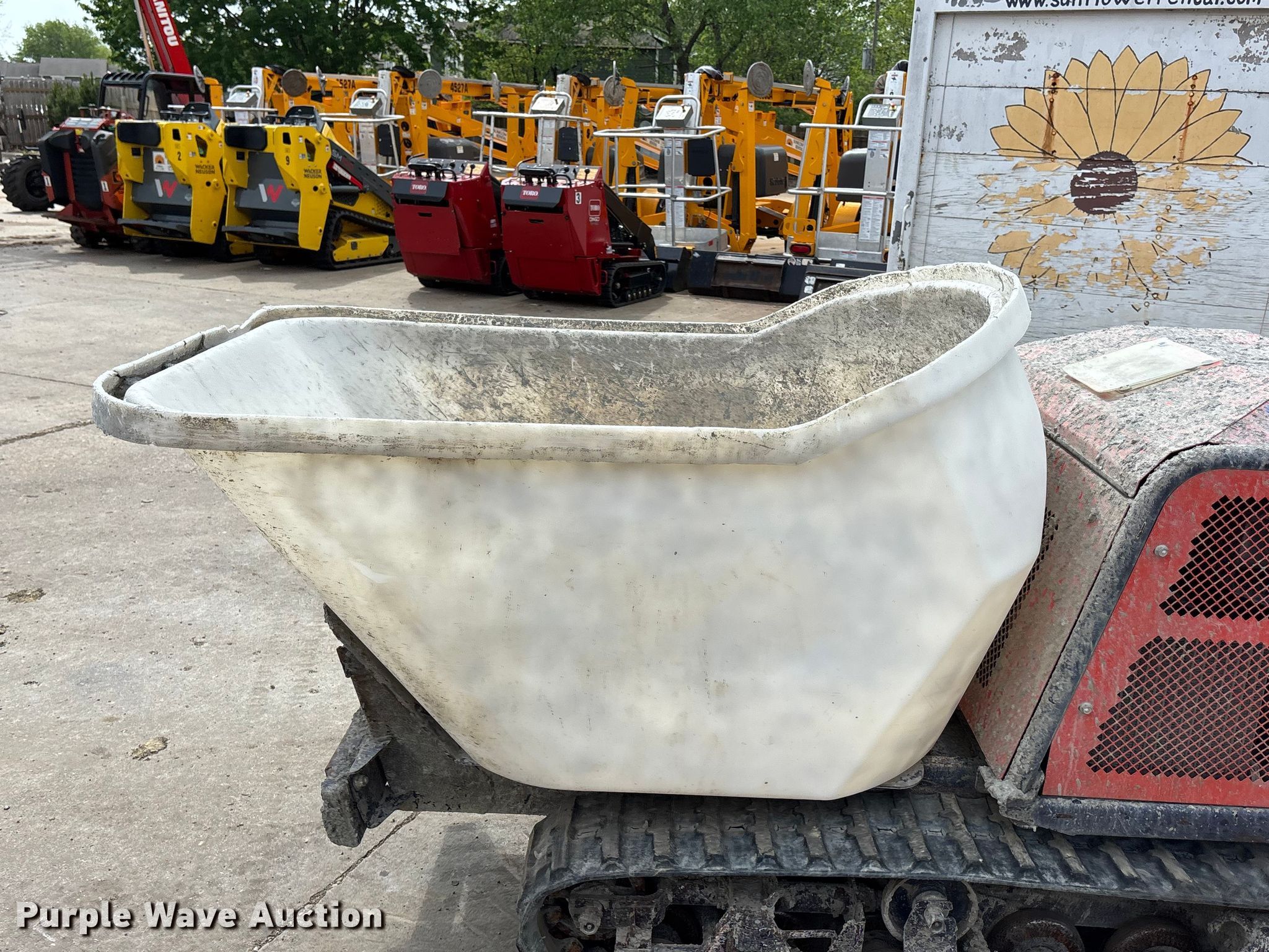 Canycom SC75 concrete buggy. Hours: 514 on meter, Serial: 7306474. Engine Honda, Cylinders: 2, Fuel type: Gas. Transmission Hydrostatic. Features Dump bed 50" L x 32" W. Tracks Width: 8", Rubber. Notes Electric start. Sunflower Rental. Lawrence, KS 66049