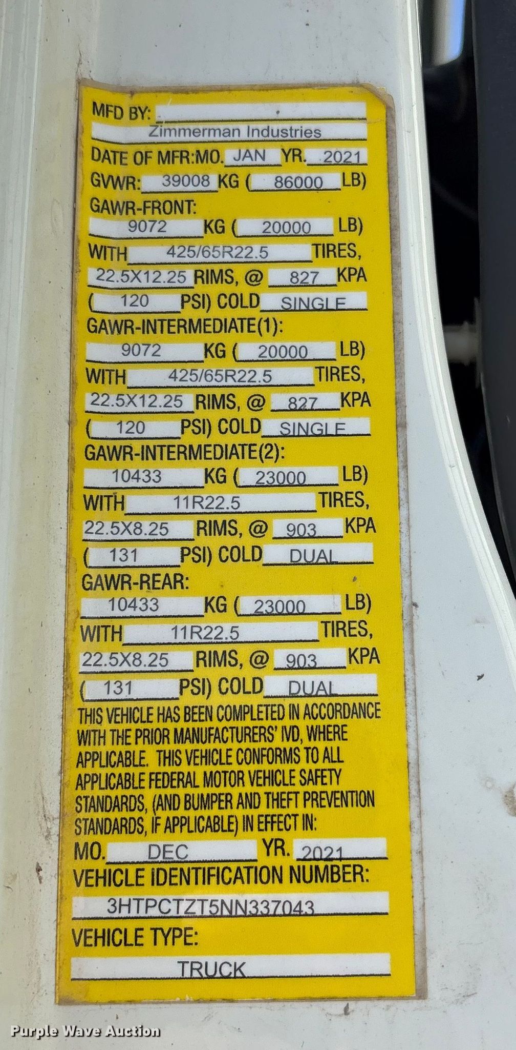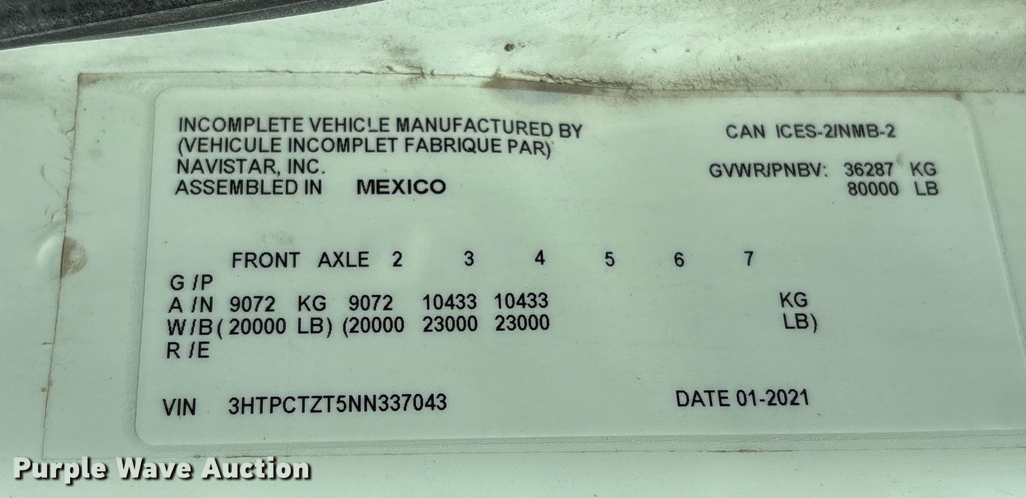- VIN: 3HTPCTZT5NN337043