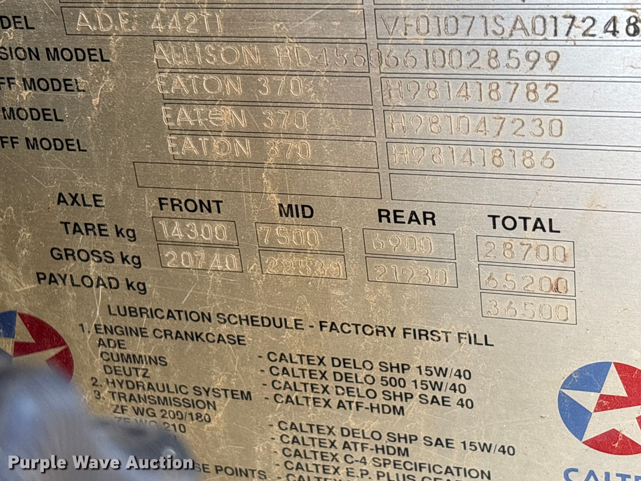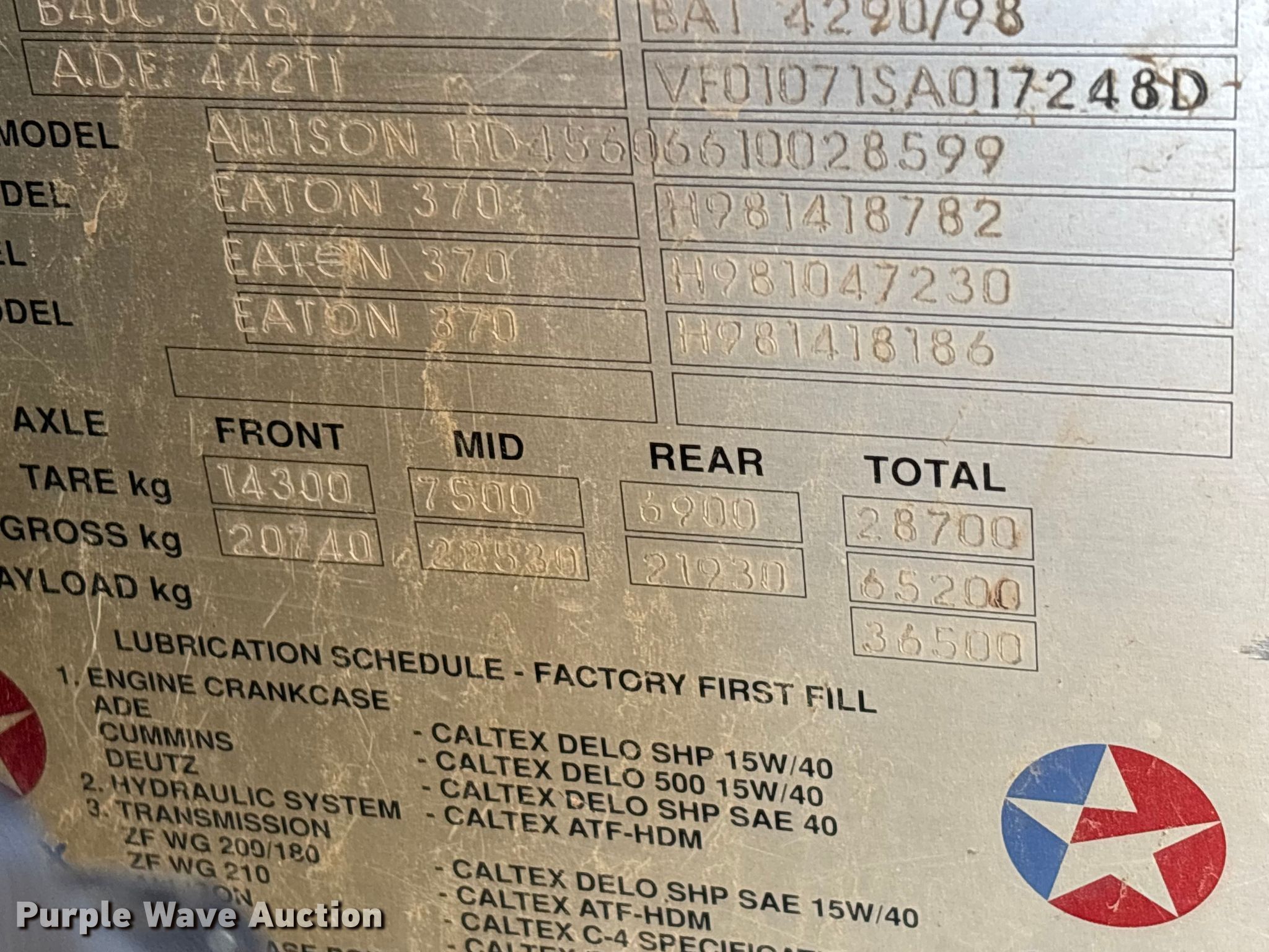 1999 Bell B40C articulated haul truck. Hours: 763 on meter, Serial: BAT4290/98. Engine Fuel type: Diesel. Transmission Automatic. Chassis Six wheel drive. Interior Heat. Features Dump bed Capacity: 40 tons. Tires Size: 29.5-25. Notes Non-operational door latch, Tire off bead, Electrical issues , Non-operational unit. Precise Concrete Works. Memphis, TN 38106