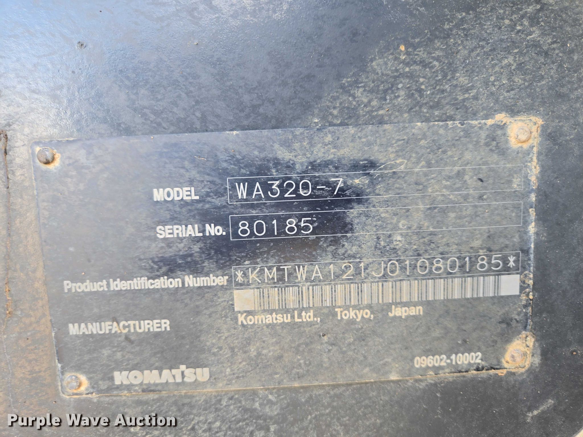 Purple Wave is selling a used Wheel Loader in South Dakota. This item is a 2014 Komatsu WA320-7 wheel loader with the following: Hours: 9,997 on meter, Serial: 80185