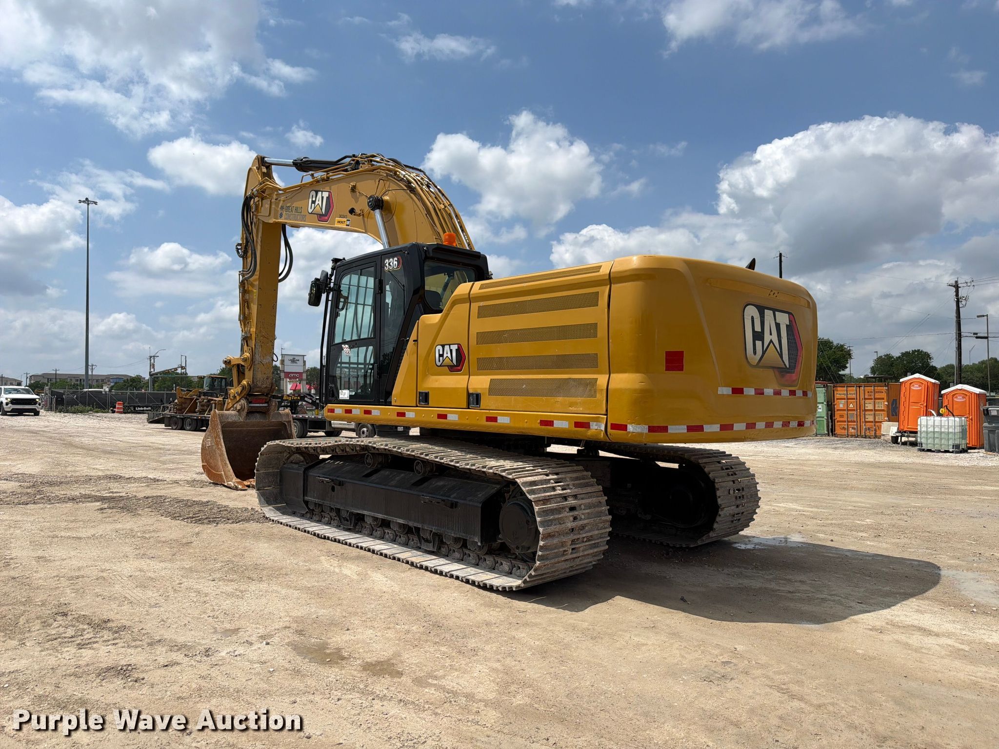 Purple Wave is selling a used Hydraulic Excavator in Texas. This item is a 2022 Caterpillar 336 excavator with the following: Hours: 3,887 on meter, Serial: CAT00336KDKS20413, Unit #: 150x6631