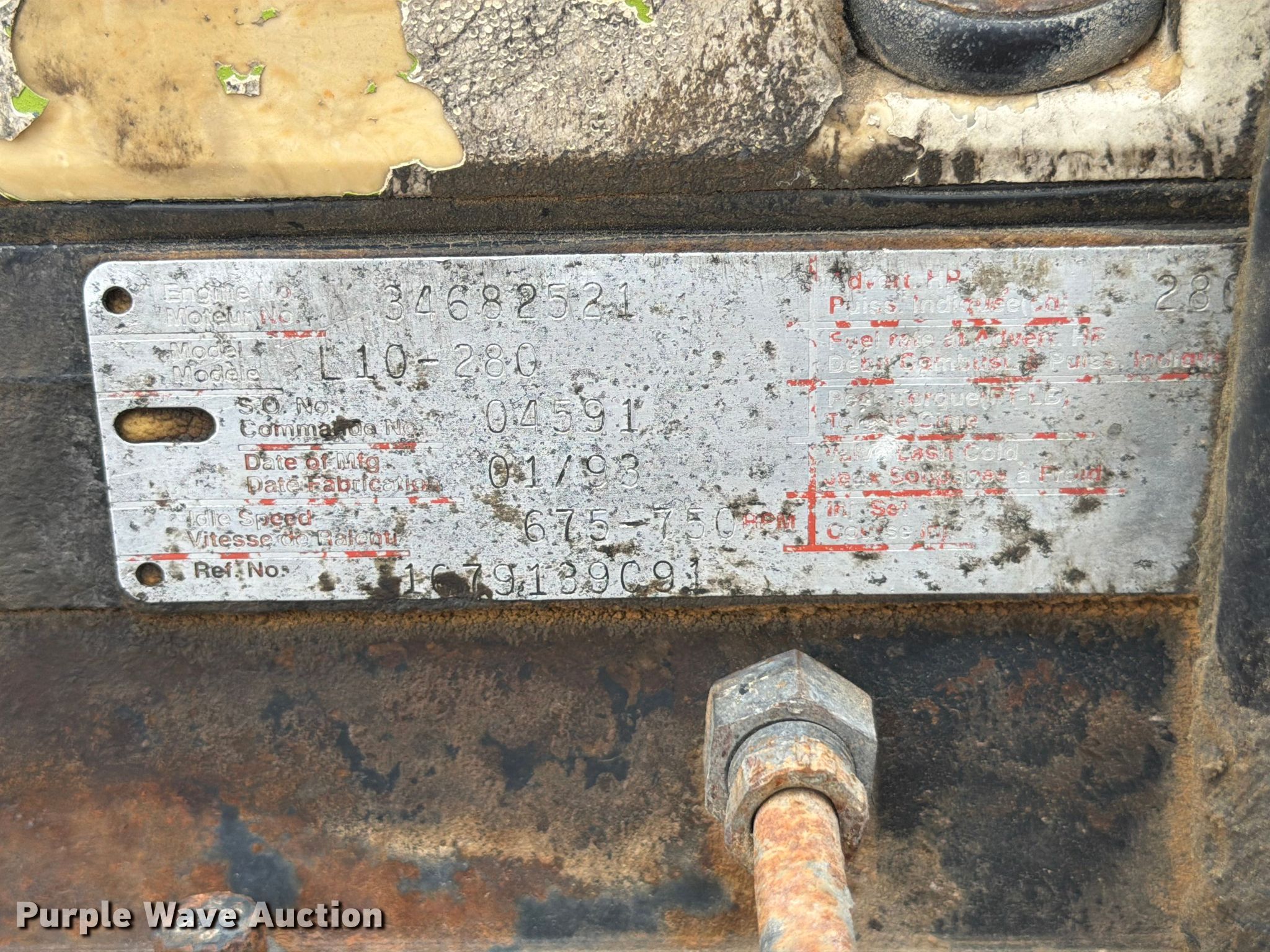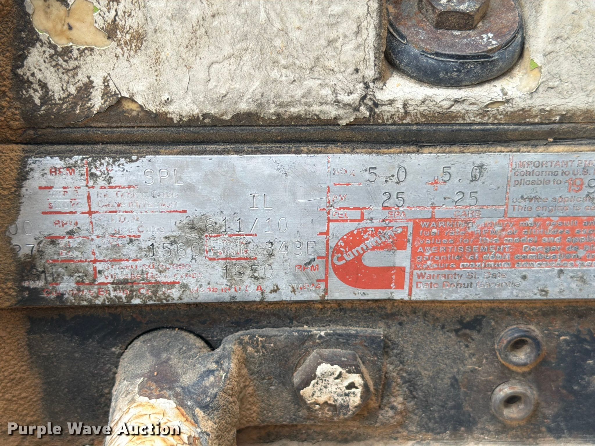 1996 Terex 2766C water wagon. Hours: 15,816 on meter, Serial: A5361146/16. Engine Cummins L10-280, Serial: 34682521, Displacement: 10L, Cylinders: 6, Fuel type: Diesel, HP: 280. Transmission Powershift, 6F - 3R. Chassis Six wheel drive. Interior AC, Heat. Features Water tank Spray bar: Rear, Hose reel, In-cab spray controls. Tires Size: 23.5R25. BCS Ready Mix & Materials LLC. College Station, TX 77845