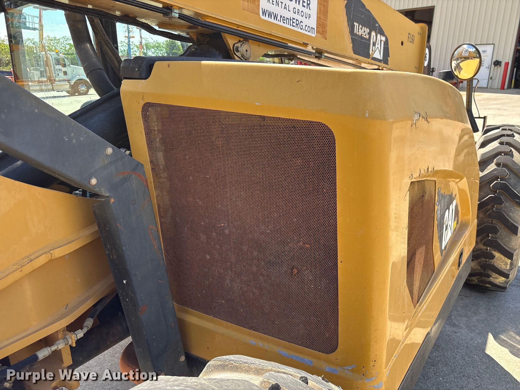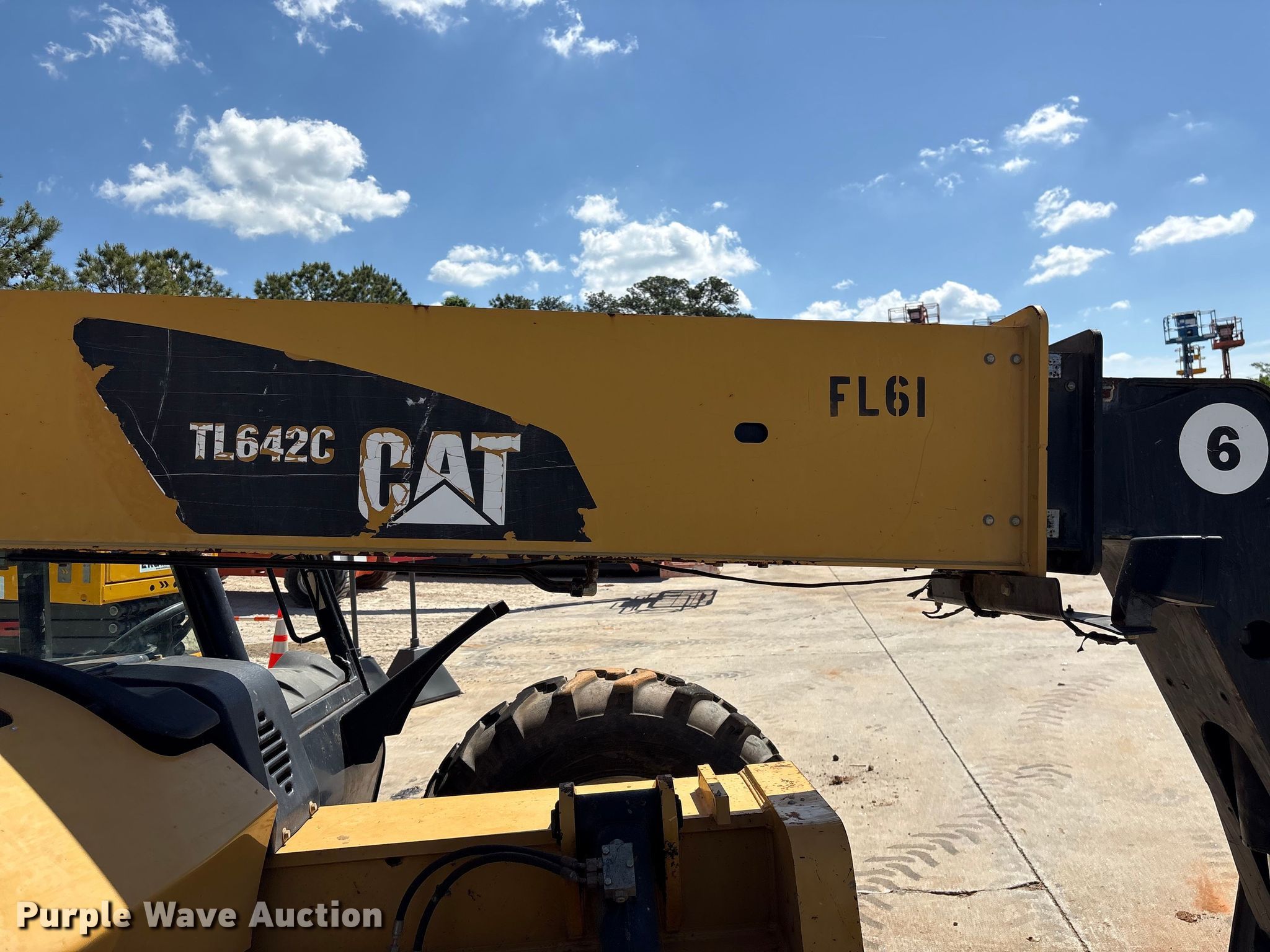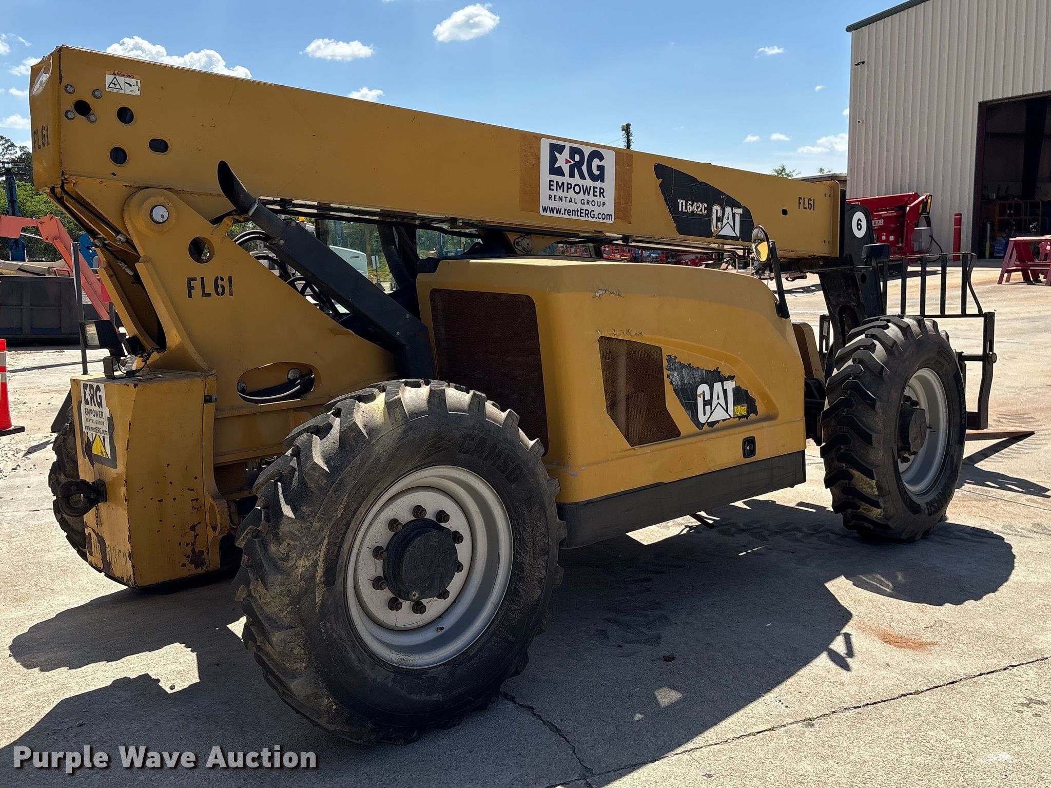 Purple Wave is selling a used Telehandler in Georgia. This item is a 2013 Caterpillar TL642C telehandler with the following: Hours: Unknown, Serial: THG00352, Unit #: FL61