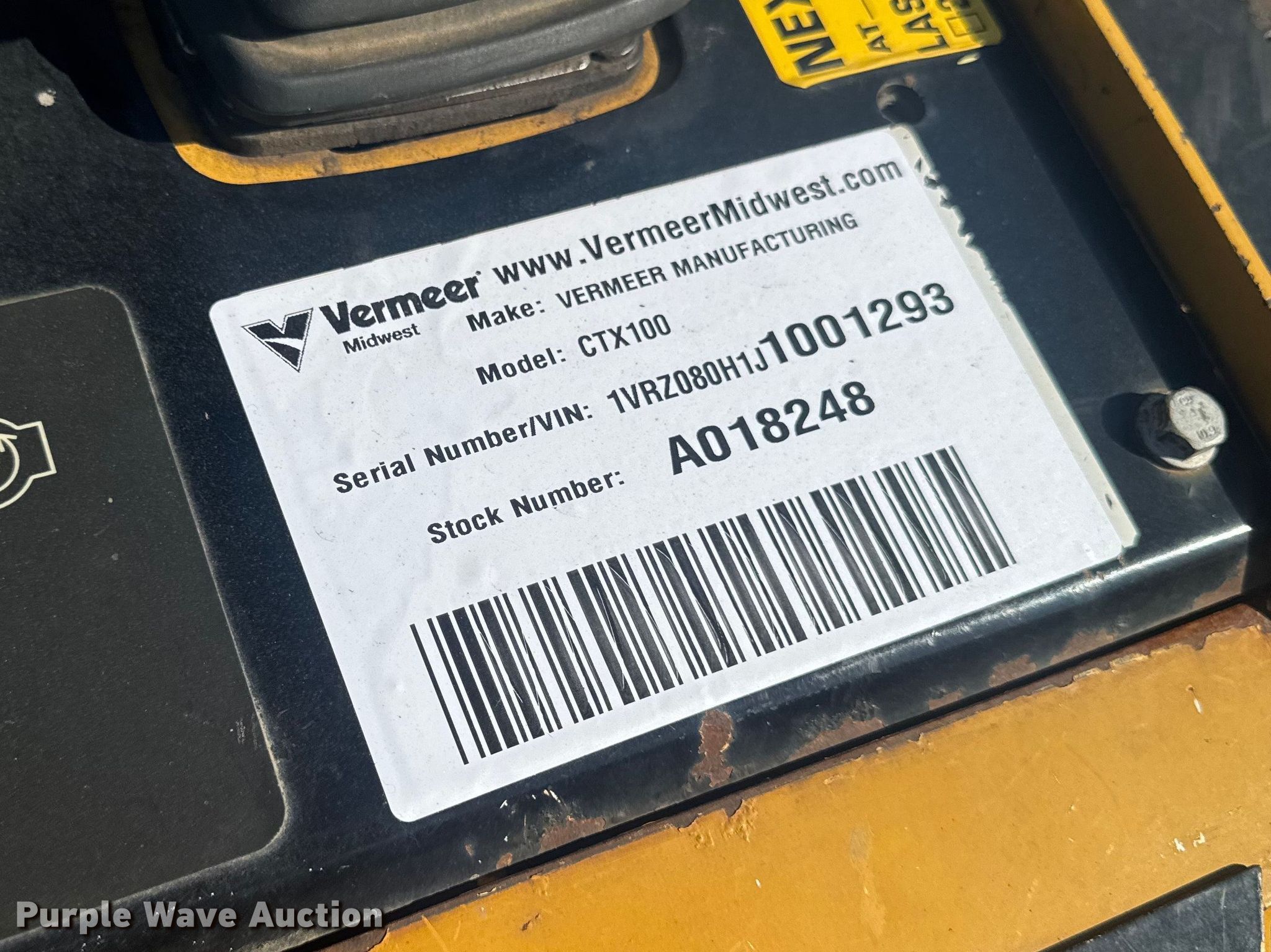 Purple Wave is selling a used Compact Utility Loader in Illinois. This item is a 2018 Vermeer CTX100 compact utility loader with the following: Hours: 1,958 on meter, Serial: 1VRZ080H1J1001293