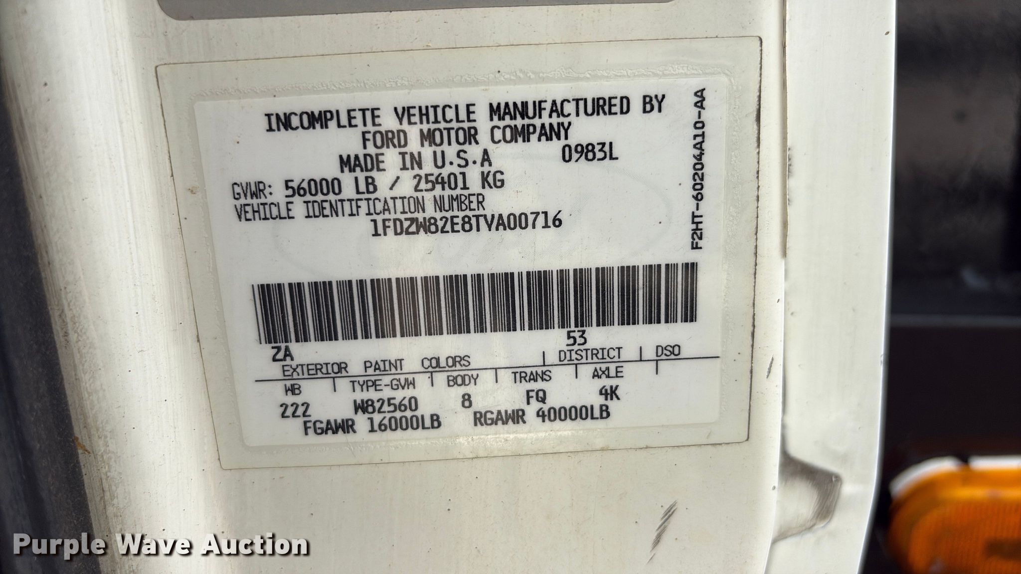 - VIN: 1FDZW82E8TVA00716