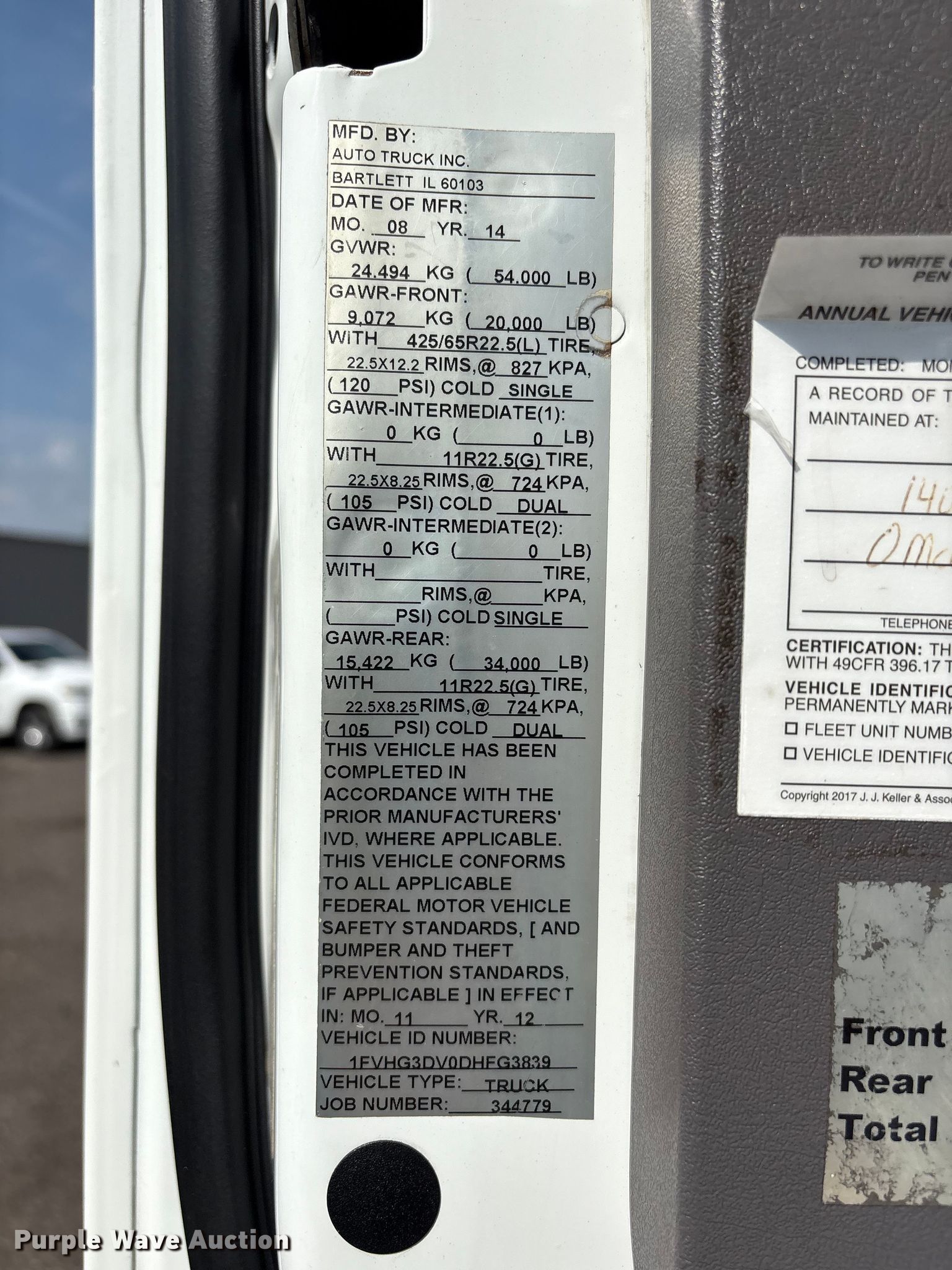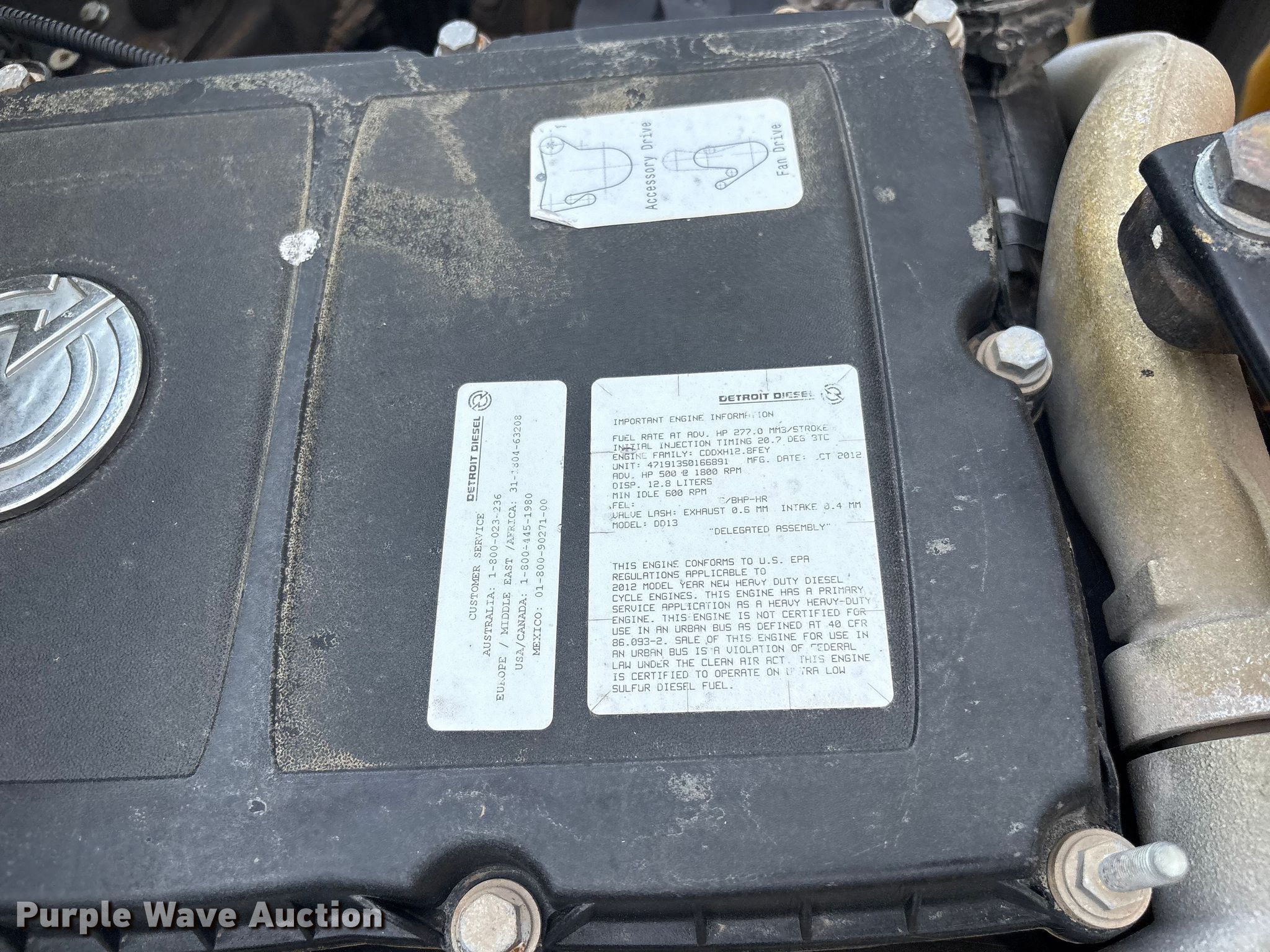 2013 Freightliner 114SD crane truck. Miles: 118,510 on odometer, VIN: 1FVHG3DV0DHFG3839. Engine Detroit Diesel DD13, Displacement: 12.8L, Cylinders: 6, Fuel type: Diesel. Transmission Eaton Fuller, Manual, Speed: 10. Chassis Hi-rail system, Axles: Tandem, Differential lock: Inter-axle, Suspension: Air, Brakes: Air, PTO, GVWR: 60,000 lbs FAWR: 20,000 lbs, IAWR: 20,000 lbs, RAWR: 20,000 lbs. Interior AC, Heat, Heated mirrors, Cruise control, Auxiliary controls, Brake controller. Features Bed Utility bed, Length: 17' 5", Width: 96", Crane 2014 Palfinger KK 33002-EH Serial: 100171528, Boom Telescopic, Maximum boom length: 40' Sections: 6, Maximum lift capacity: 15,000 lbs, Boom controls Ground, Remote control, Manuals. Tires Size: 11R22.5. Notes Hi-rail system wheels missing. Oklahoma title. Seller is an Oklahoma licensed motor vehicle dealer. Buyers may be required to provide identification to the licensed dealer to comply with state laws. Title will be assigned and distributed by the dealer. Please contact the seller for distribution questions. Title distribution may be delayed up to 30 days from verification of funds. Collinsville, OK 74021