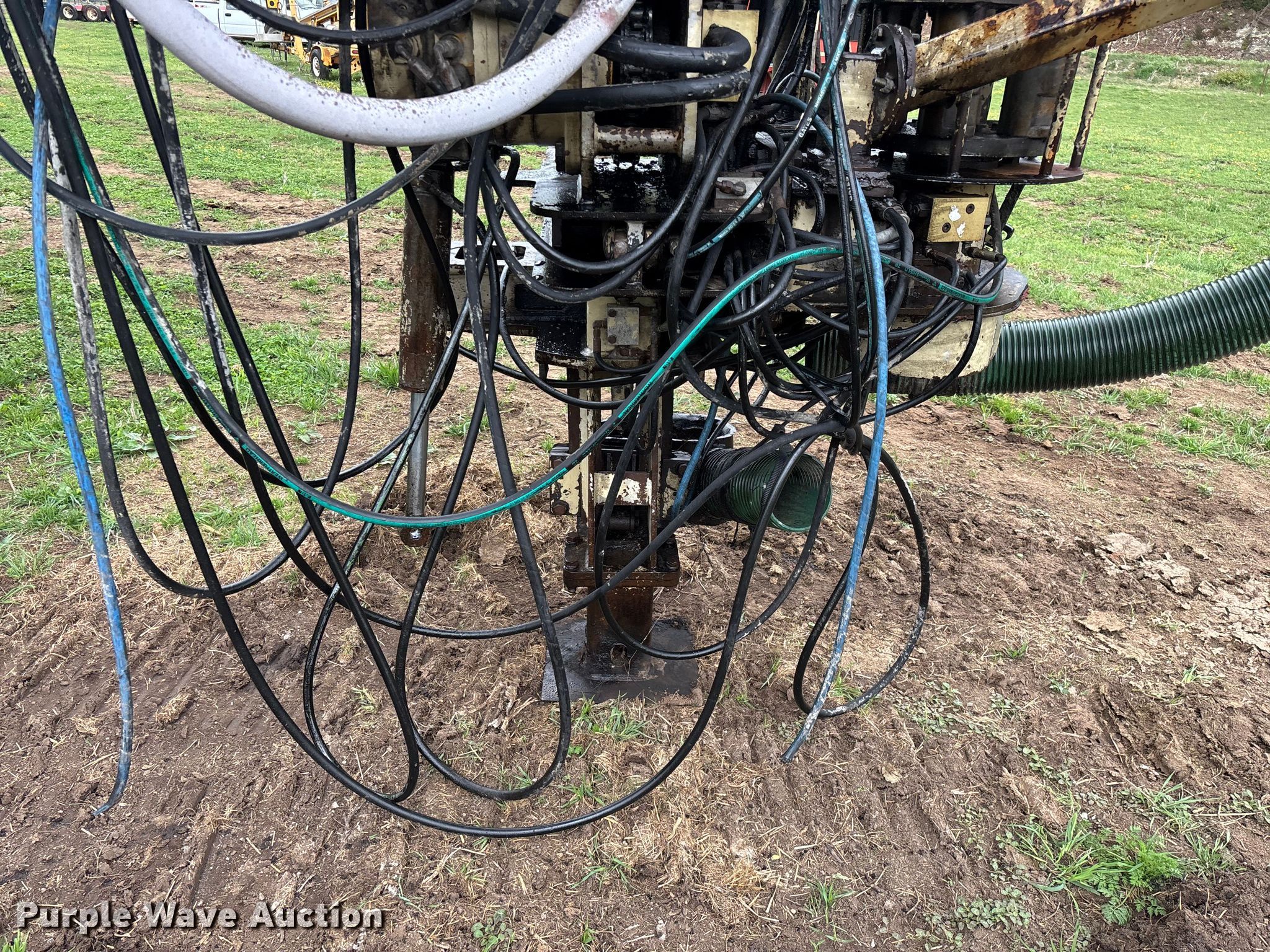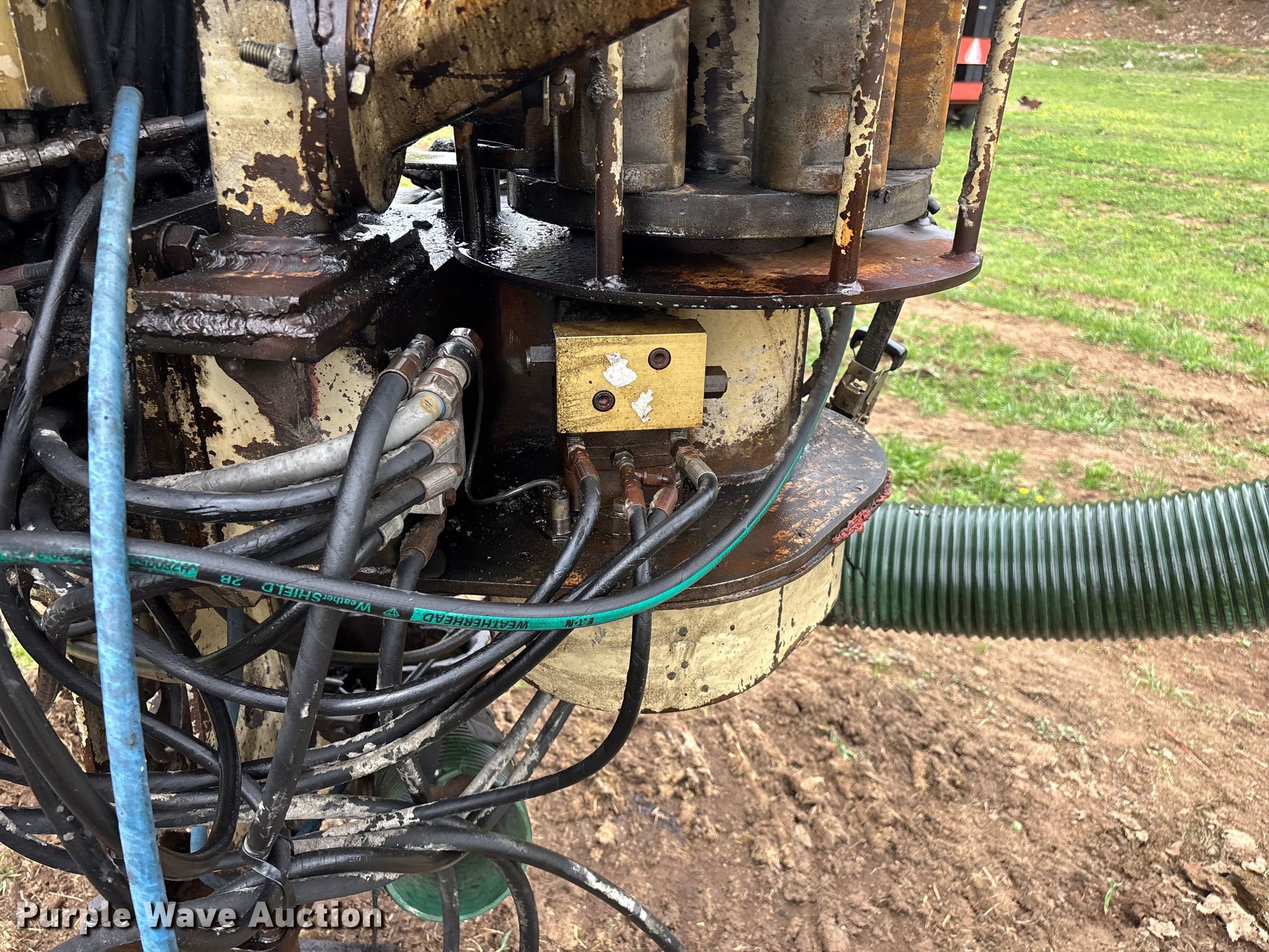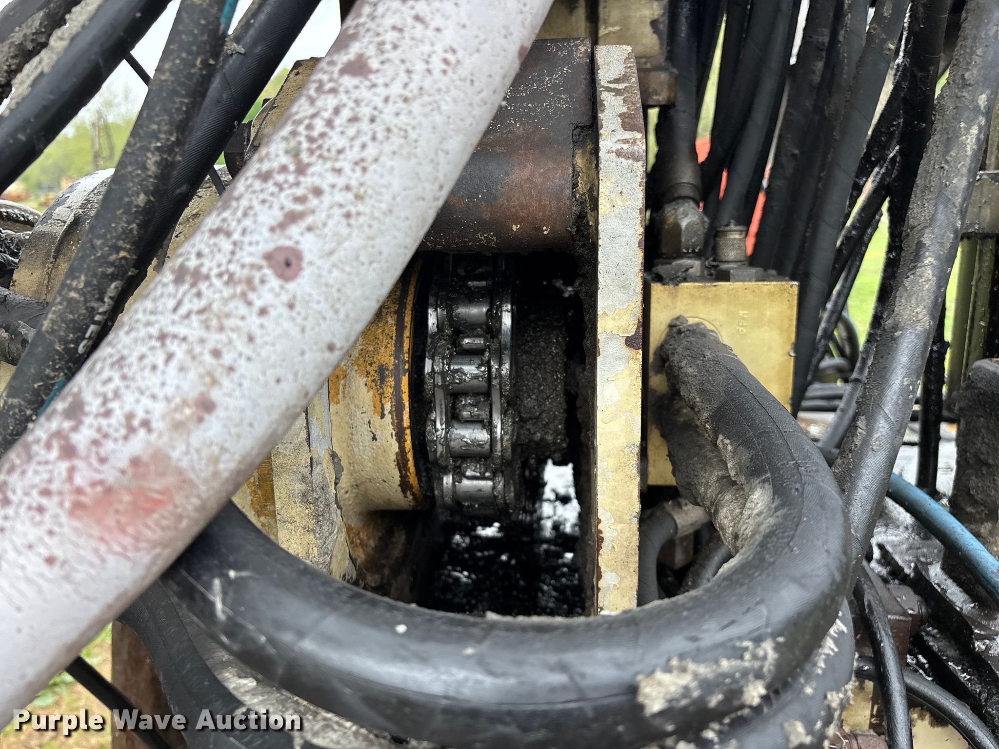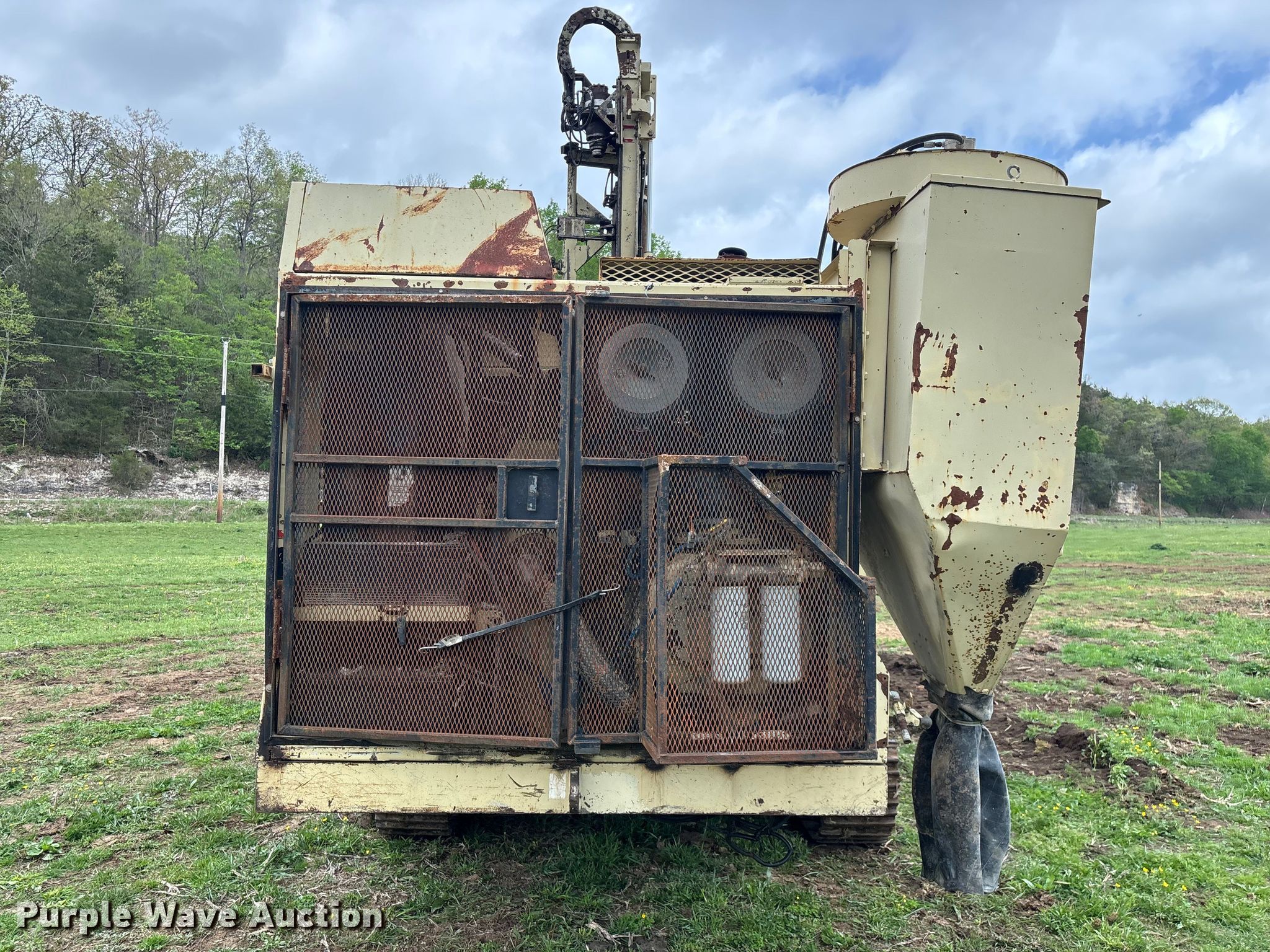 2001 Ingersoll Rand CM695D drilling rig. Hours: 10,746 on meter, Actual hours unknown, Serial: G18089BJ. Engine Cylinders: 6, Fuel type: Diesel. Transmission Hydrostatic. Interior AC, Heat. Features Dust collection system, Water suppression system, Down hole hammer drill. Tracks Width: 14", Steel. Notes Glass cracked, Drill stems not included, Dust collection hoses, needs replaced, Warning indicator: Red temp, pressure lights. Sams Drilling Service Inc. Seligman, MO 65745