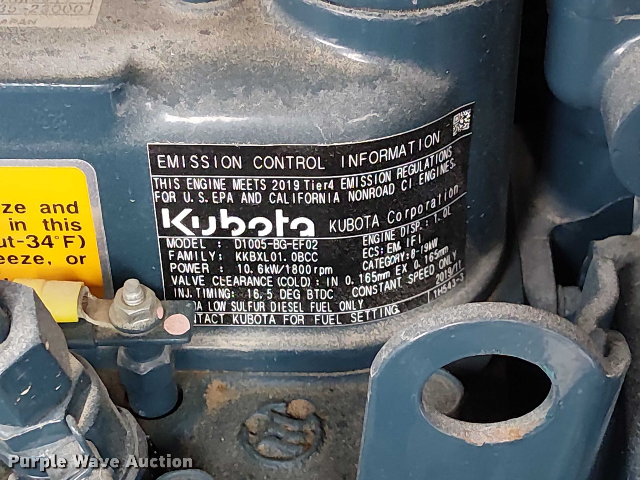 2021 Allmand Night-Lite V-Series light plant. Hours: 9,263 on meter, VIN: 5AEA1DA17MH008201, Serial: 39-008431, Unit #: LIX290. Engine Kubota D1005-BG-EF02, Serial: 1KW0917, Displacement: 1.0L, Cylinders: 3, Fuel type: Diesel, kW: 10.6. Features Generator Coliseum Electric 1CBC08AL-50/60, kW: 7, Phase: Single, Electric start, Light plant Bulbs: 4, Watts: 350, Tower height: 25', Hoist: Manual. Trailer 2021 Allmand, 8' L x 48" W, Ball hitch size: 2", Suspension: Spring, Brakes: Electric, Axles: Single, Tire size: ST175/80R13, GVWR: 2,200 lbs. This is worksite support equipment and will not come with a title. Transfer of ownership documentation will be a bill of sale. Austin Bridge & Road. Dallas, TX 75236