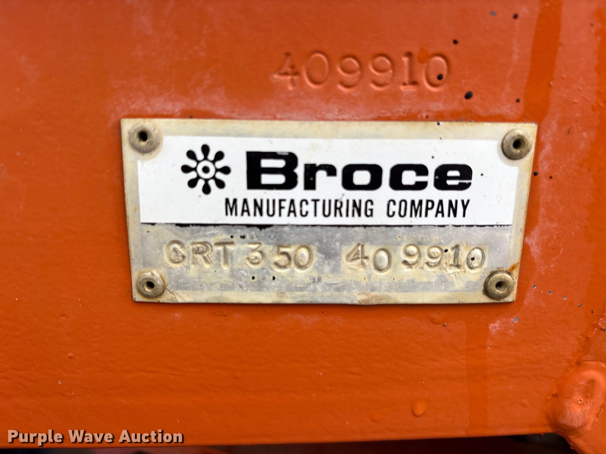 Purple Wave is selling a used Broom in Texas. This item is a 2016 Broce CR350 broom with the following: Hours: 2,707 on meter, Serial: 409910, Unit #: 28-80001