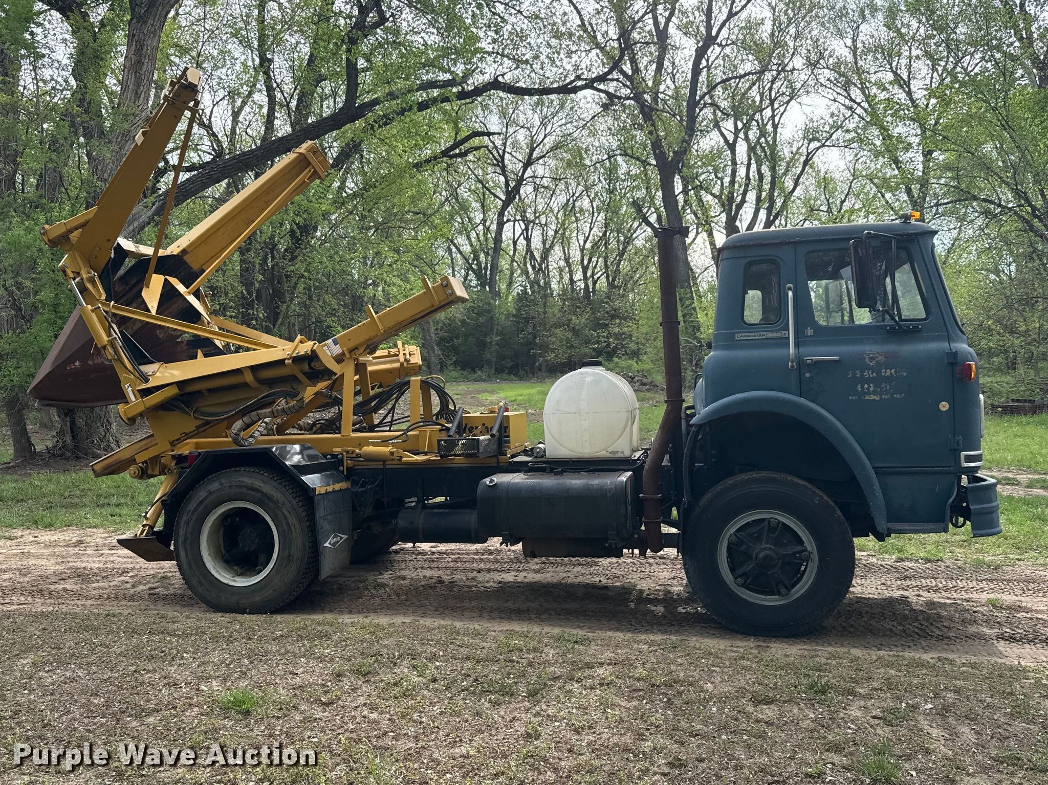 1980 International Cargostar 1850 B truck cab and chassis with tree spade for sale in Buhler, Kansas. Item ET1932 will sell on May 21st, 2026.