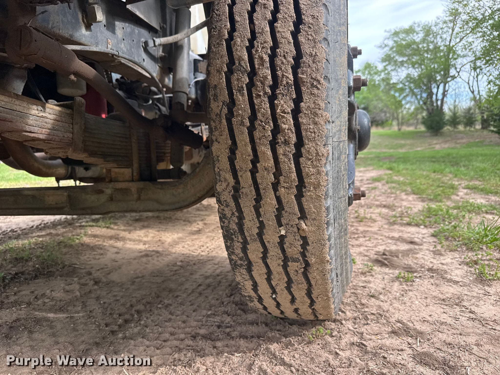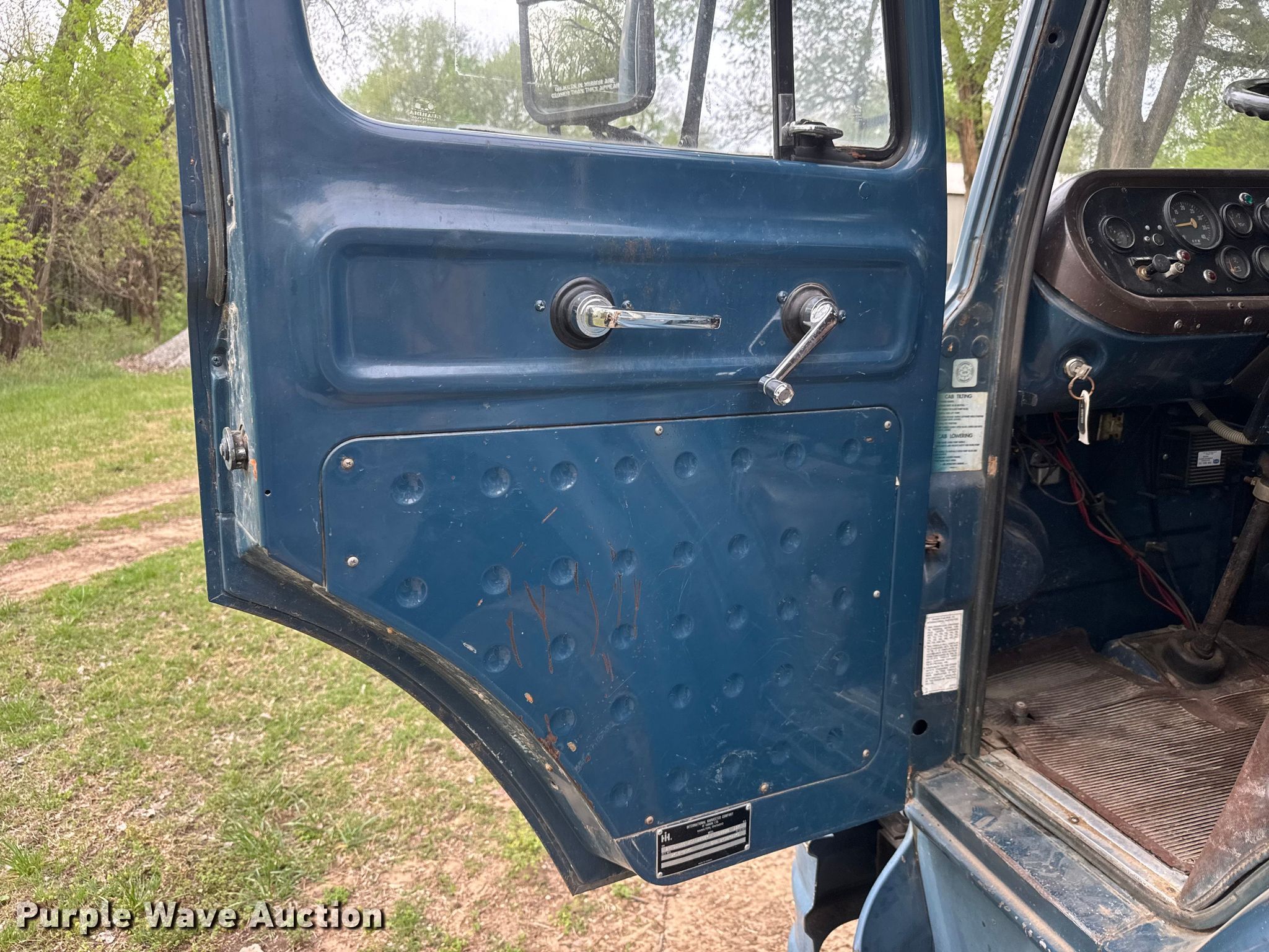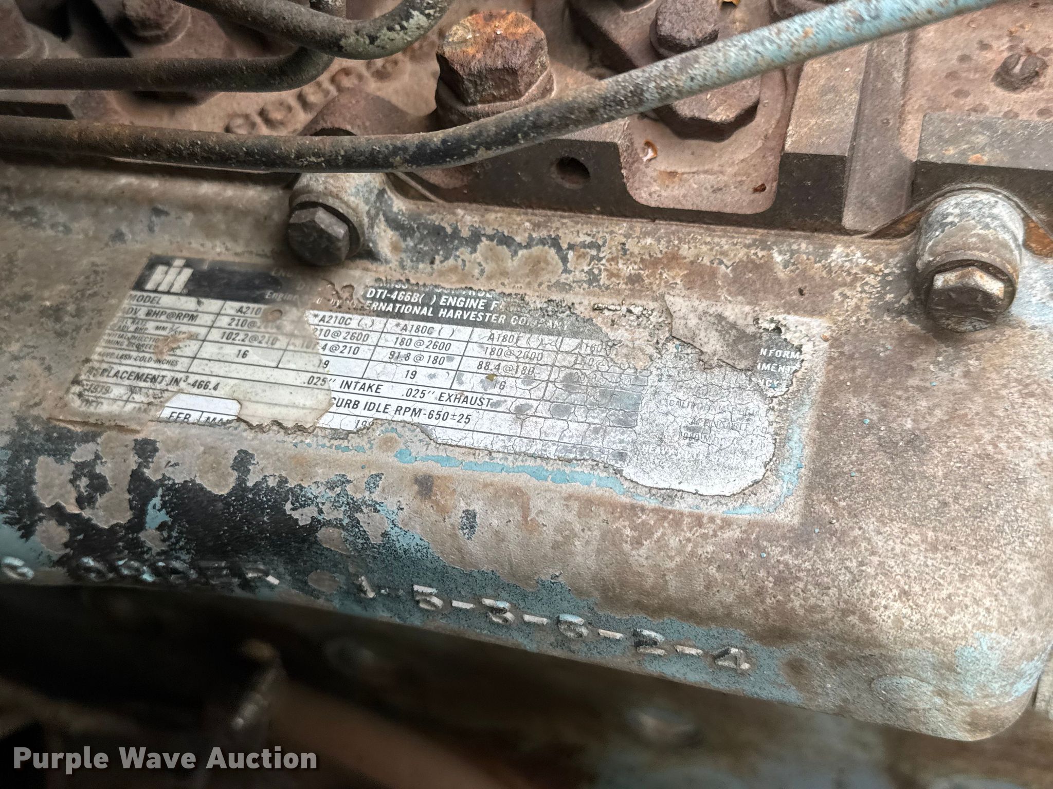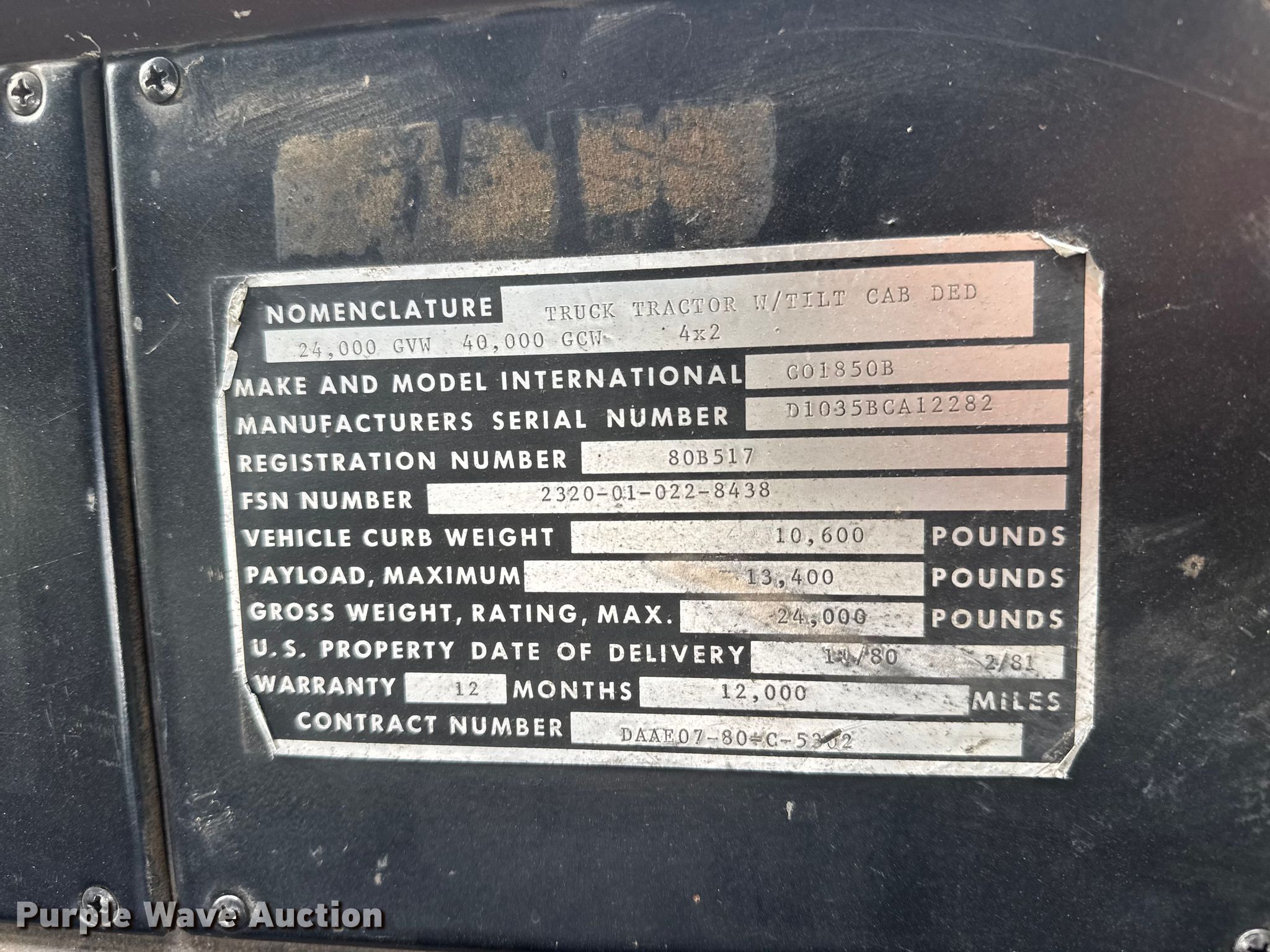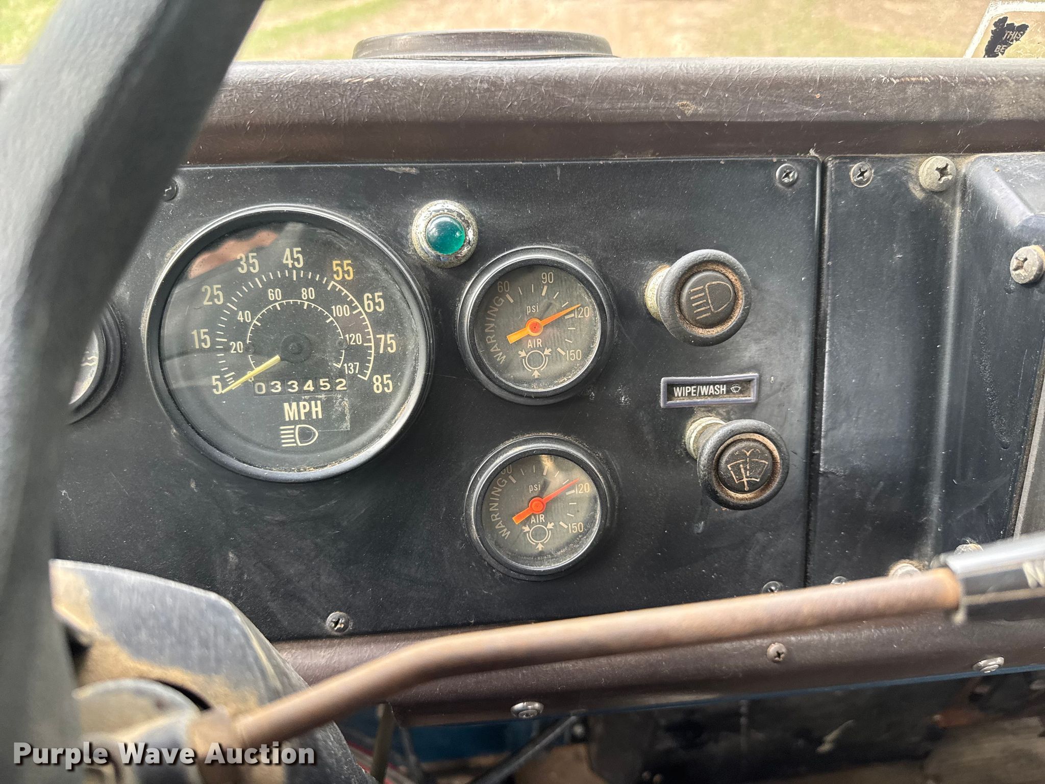 1980 International Cargostar 1850 B truck cab and chassis with tree spade. Miles: 33,452 on odometer, VIN: 2HTD10351BCA12282. Engine International A210, Displacement: 466.4 CID, Cylinders: 6, Fuel type: Diesel. Transmission Allison, Automatic. Chassis Axles: Single, Suspension: Spring, Brakes: Air, PTO, Truck chassis: 13', GVWR: 24,000 lbs. Interior Heat. Features Fuel tank: Dual, Vermeer TS-50M tree spade Serial number: IVRC160S05001004, Poly tank Capacity: 65 gallons. Tires Size: 9.00R20. Notes Hydraulic issues, leaks. Texas title. Title distribution may be delayed up to 14 days from verification of funds. Buhler, KS 67522