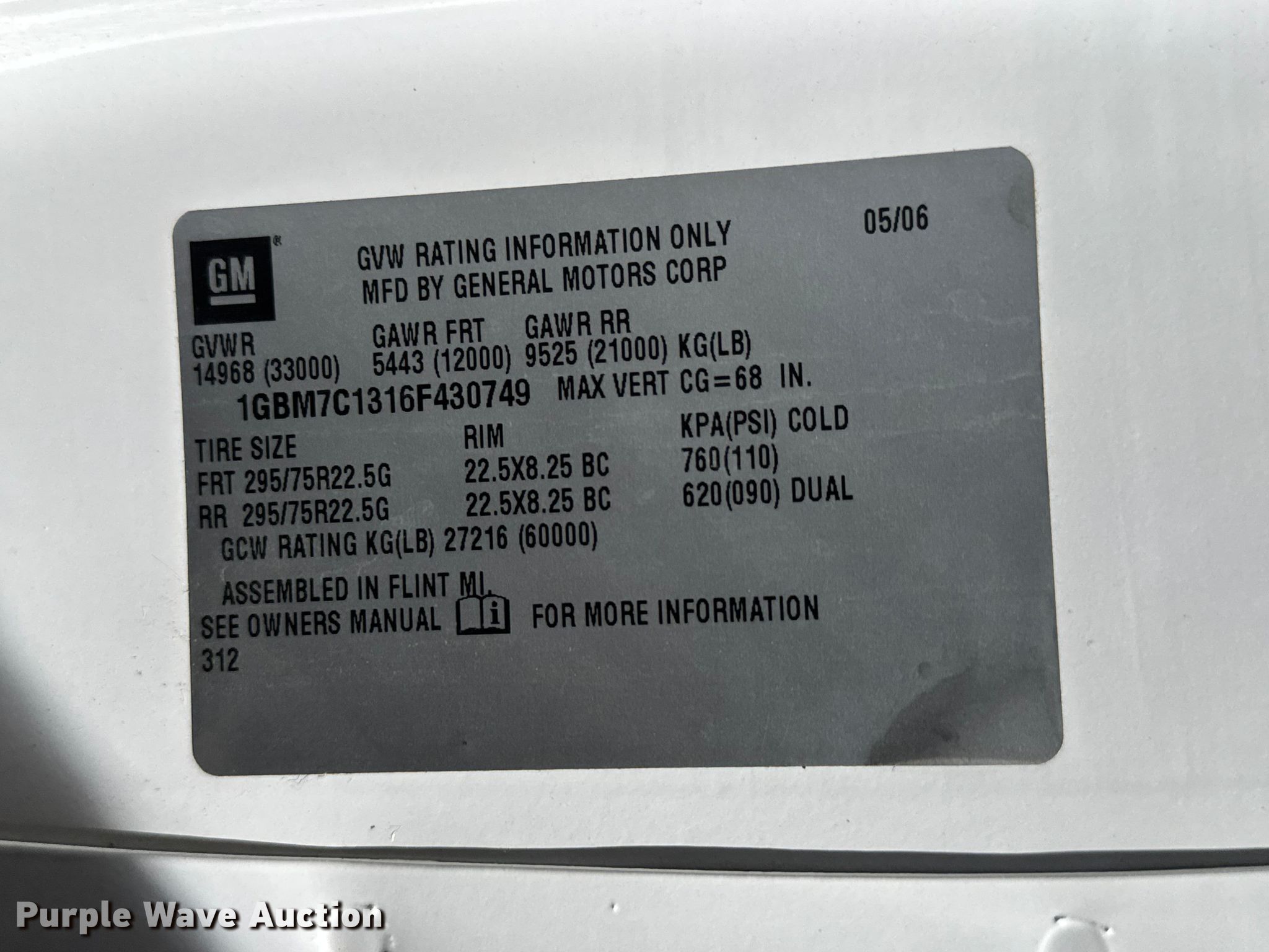 Purple Wave is selling a used Construction Dump Truck in Kansas. This item is a 2006 Chevrolet C7500 dump truck with the following: Miles: 32,110 on odometer, VIN: 1GBM7C1316F430749