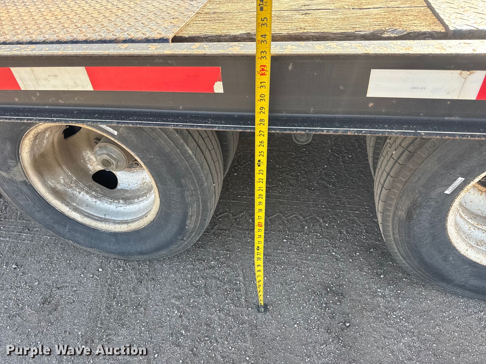 2005 Redi Haul equipment trailer. VIN: 47SF282T951022223, Unit #: 56.05WA. Dimensions Overall Length: 34', Width: 102", Deck Length: 22', Deck height: 33", Tail length: 6', Ramps: Manual Length: 6'. Features Deck type: Wood. Chassis Hitch: Pintle, Landing gear: Dual, Suspension: Spring, Brakes: Electric, Axles: Tandem. Tires Steel wheels, Size: 235/80R16. Kansas title. Title distribution may be delayed up to 30 days from verification of funds. Sherwood Construction Company. Wichita, KS 67277