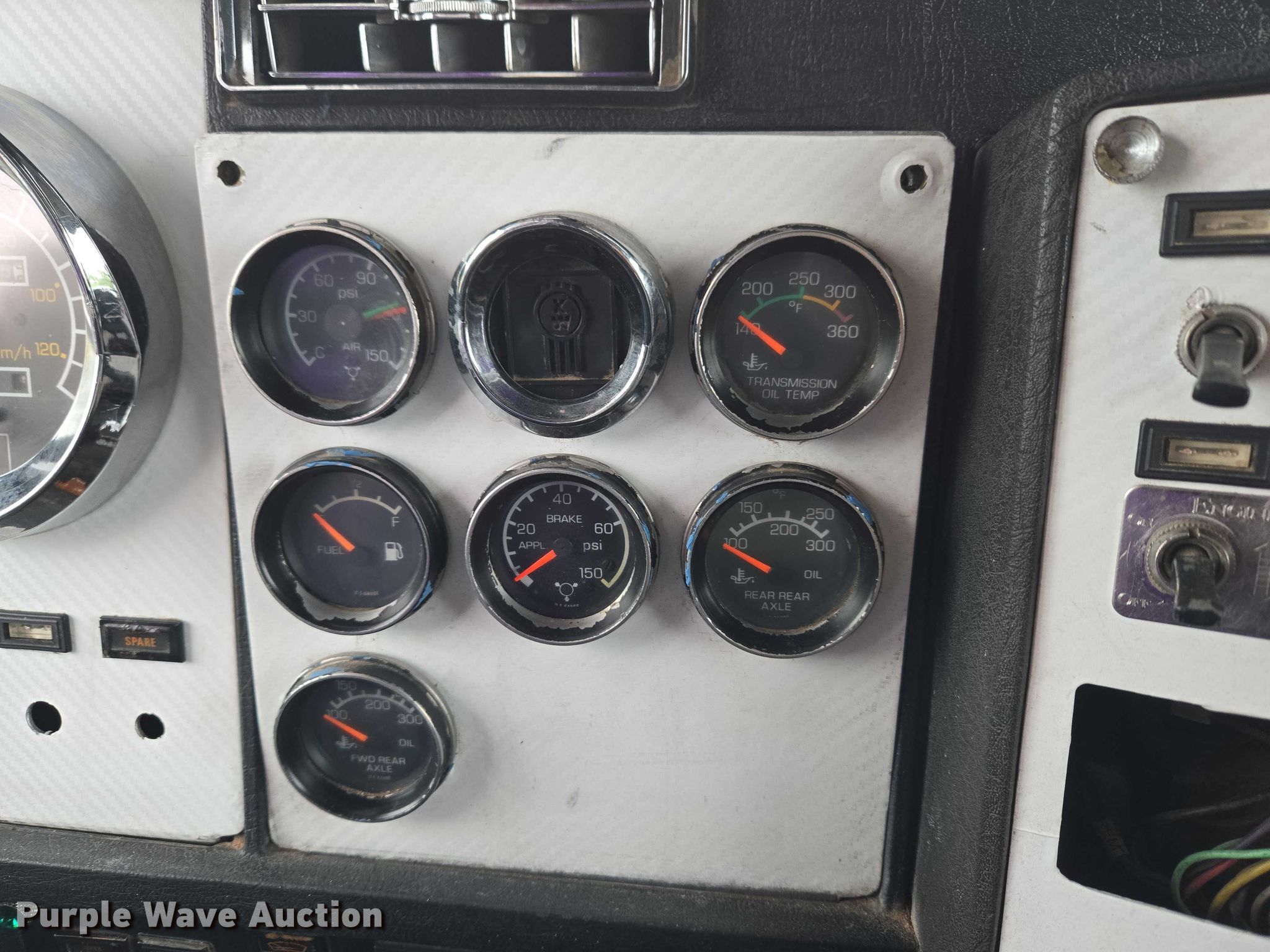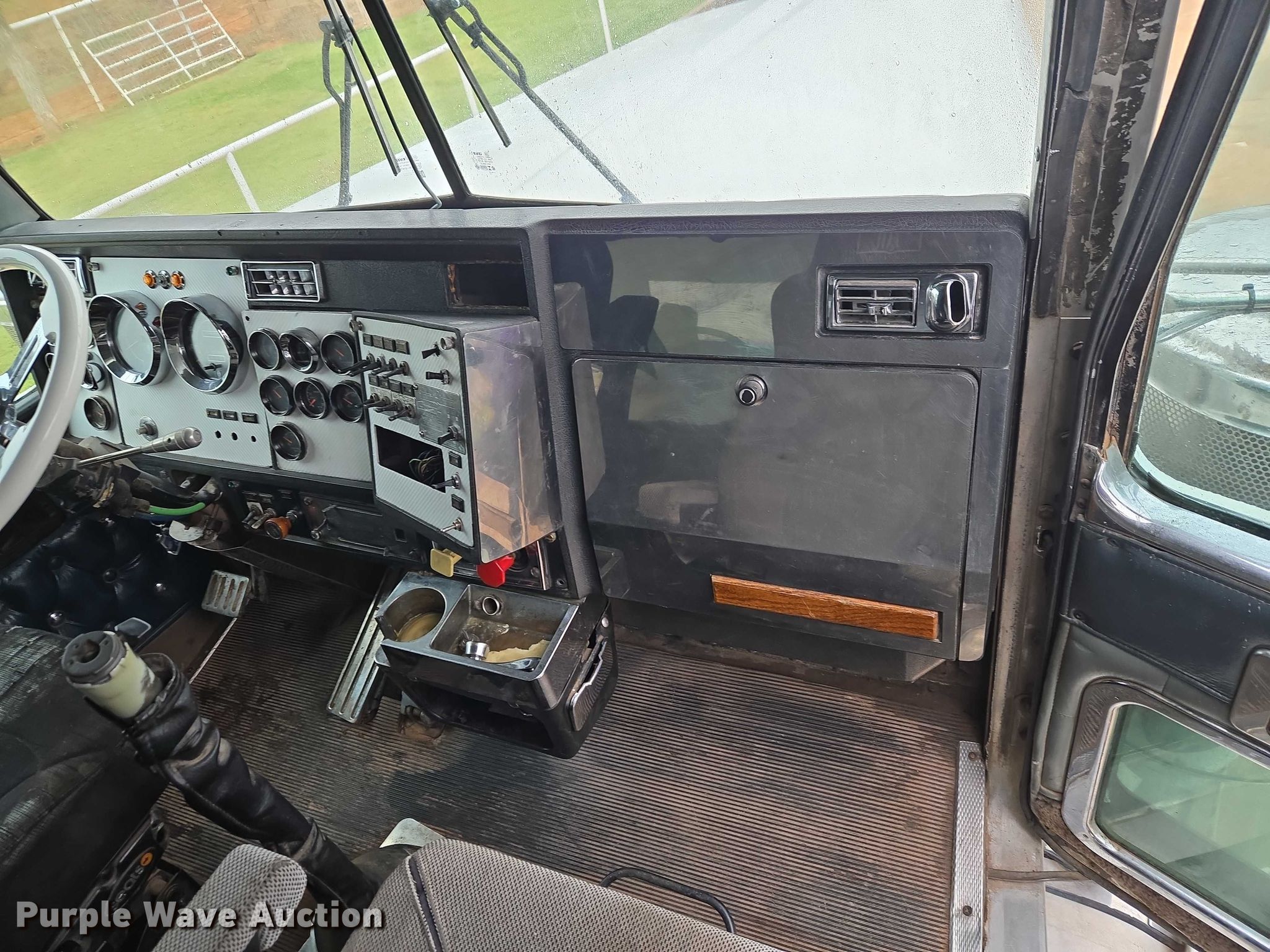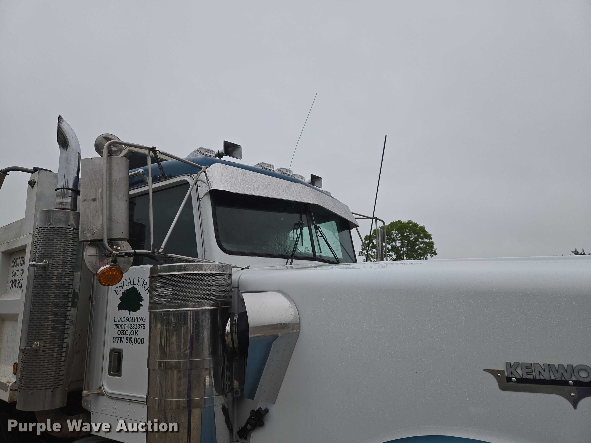 2025 Kenworth W9 Series dump truck. Miles: 719,296 on odometer, Miles or hours may vary, unit still in use, VIN: 1XKWDR9X5SJ677128. Engine Detroit Diesel Series 60, Displacement: 11.1L, Cylinders: 6, Fuel type: Diesel. Transmission Eaton Fuller, Manual, Automated manual, Speed: 10. Chassis Axles: Tandem, Axles: 4, Pusher axle Steerable, Differential lock: Inter-axle, Suspension: Air, Brakes: Air, PTO. Interior AC, Heat, Cruise control, Brake controller. Features Bed Dump bed, Length: 18' 7", Width: 8', Side height: 51", Bed type: Steel, Roll tarp, Ram: Single, End gate: Air operated. Tires Front: 315/80R22.5, Rear: 11R22.5, Lift axle: 225/70R19.5. Notes Windshield chipped or cracked, Roll tarp issues. Oklahoma classic title. Title distribution may be delayed up to 14 days from verification of funds. Escalera Landscaping. Guthrie, OK 73044
