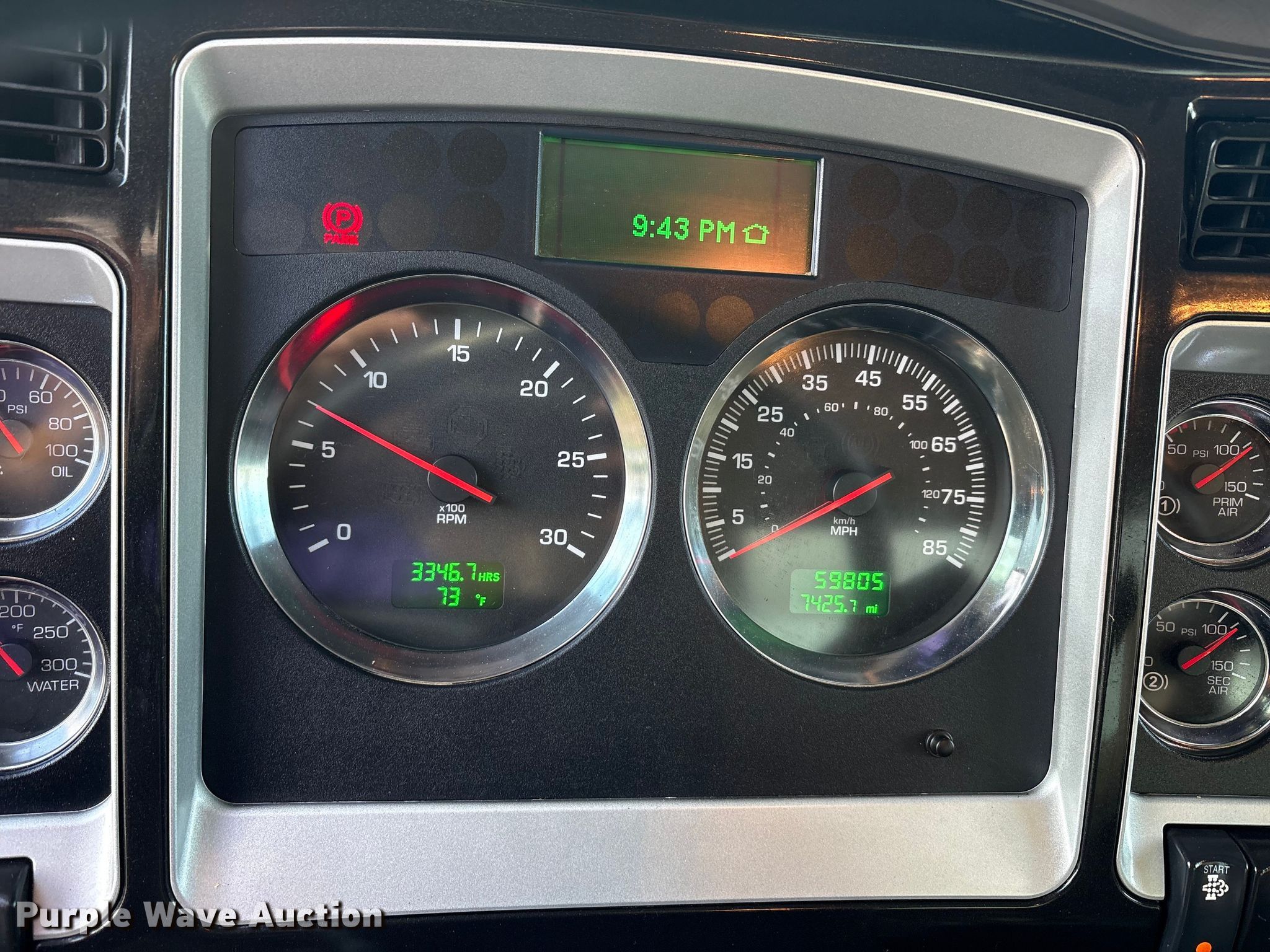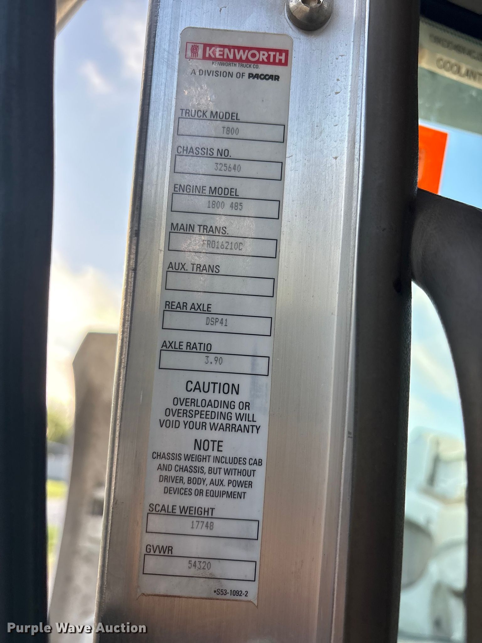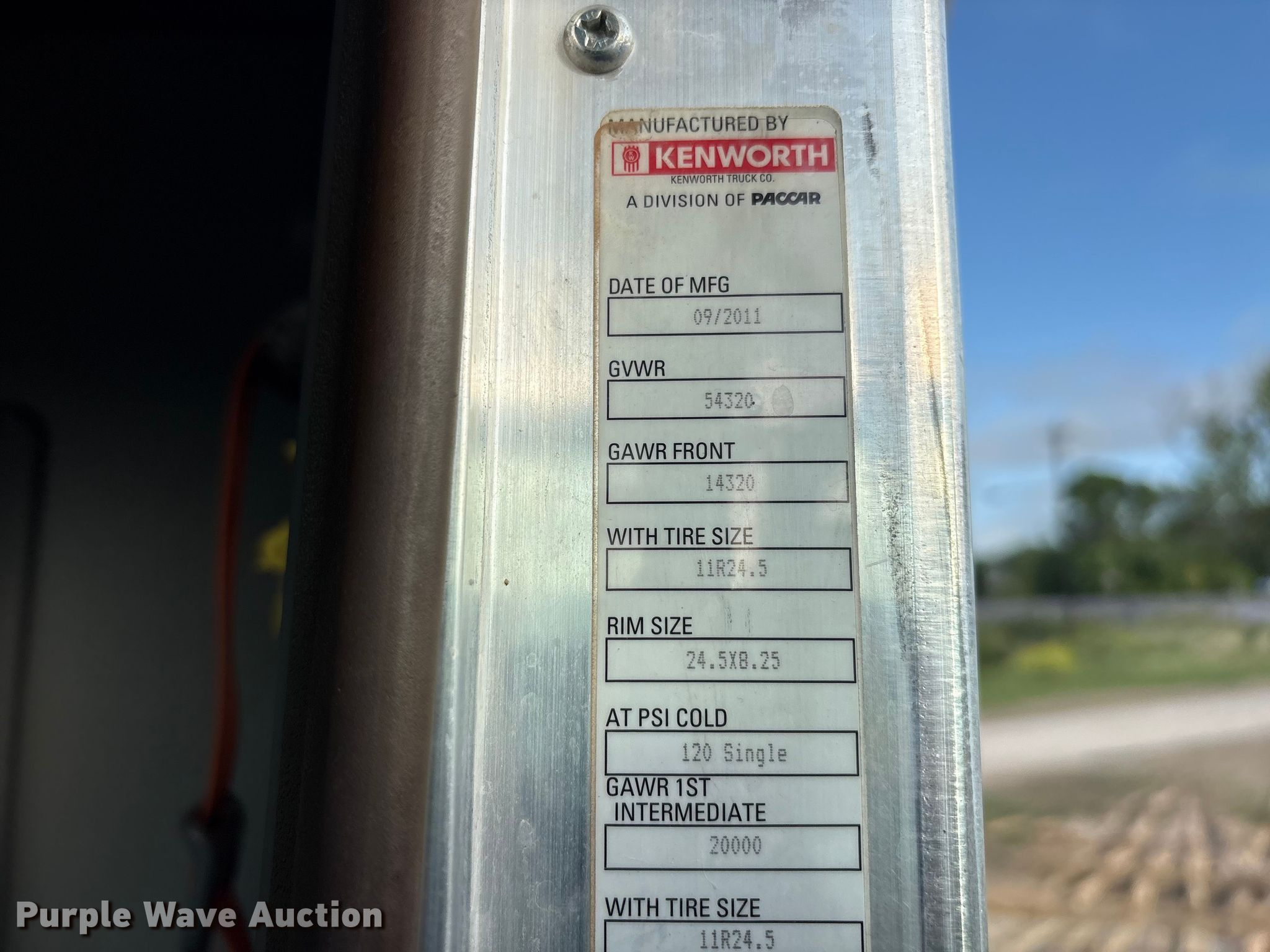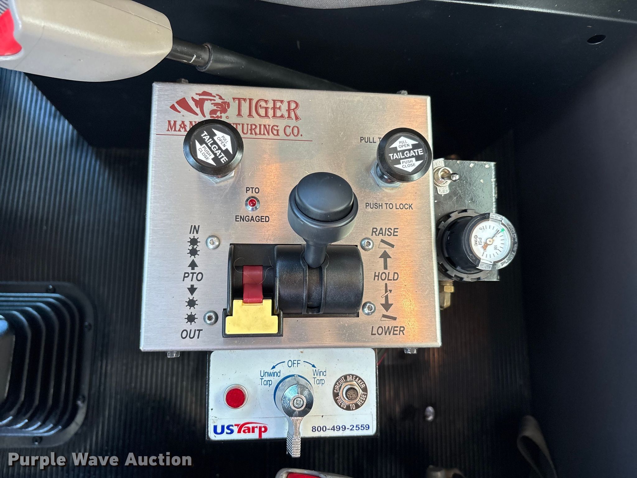 2012 Kenworth T800 dump truck. Miles: 59,805 on odometer, Hours: 3,347 on meter, VIN: 1XKDD49X4CJ325640. Engine Cummins ISX15 485, Serial: 79506883, Displacement: 15.0L, Cylinders: 6, Fuel type: Diesel, Engine brake. Transmission Eaton Fuller FRO16210C, Manual, Speed: 10. Chassis Double frame, Axles: Triple, Pusher axle Steerable, Differential lock: Inter-axle, Suspension: Air Dump valves, Brakes: Air, PTO, GVWR: 54,320 lbs FAWR: 14,320 lbs, IAWR: 20,000 lbs, RAWR: 20,000 lbs. Interior AC, Heat, Heated mirrors, Cruise control, Brake controller. Features Bed Dump bed, Tiger manufacturers, Serial: 9203-2/9885, Length: 16', Width: 98", Side height: 53", Bed type: Steel, Barrel, Roll tarp, Ram: Single, End gate: Air operated. Tires Front: 385/65R22.5, Rear: 11R24.5, Lift axle: 295/75R22.5. Notes Non-operational glad hands. Texas title. Title distribution may be delayed up to 14 days from verification of funds. +1Dozer Service. Dublin, TX 76446