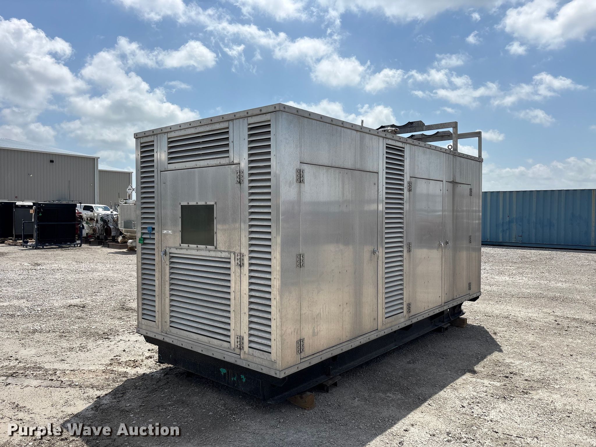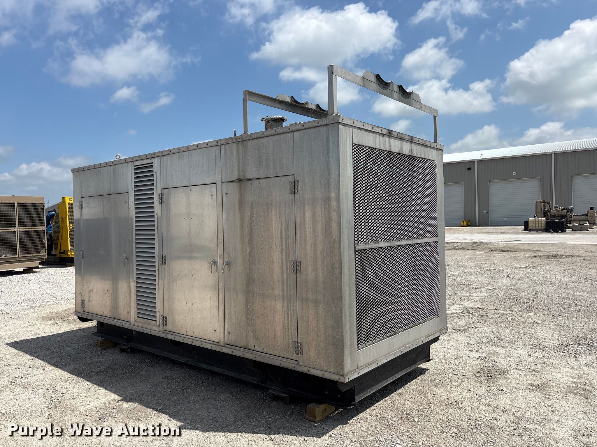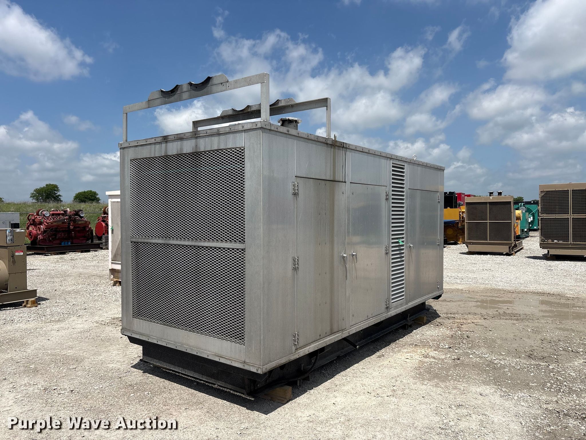 Cummins DFGB-4956576 generator. Hours: Unknown, Serial: E010234148. Engine Cummins VTA-28-G5, Serial: 57648, Cylinders: 12, Fuel type: Diesel. Features Generator Cummins Off-4956576, kVA: 750, kW: 600, Phase: Three, Electric start, Skid mounted. Notes Fuel tank missing, Exhaust removed, Unknown operating condition. Industrial Diesel Inc. Decatur, TX 76234