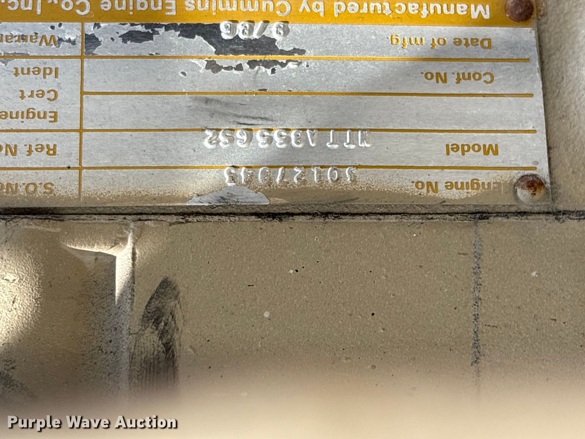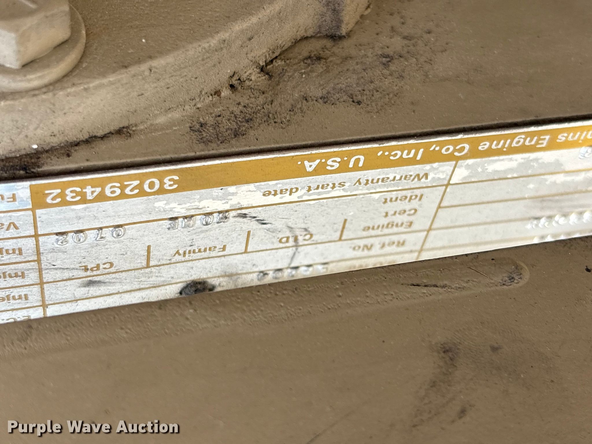 -1 Cummins 350Kw generator. Hours: 666 on meter, Hours: 2,014 on second meter, Serial: 30127943. Engine Cummins, Cylinders: 6, Fuel type: Diesel. Features Generator Cummins 502FDR7022JJW, kVA: 438, kW: 350, Phase: Three, Electric start, Skid mounted. Notes Fuel tank missing, Exhaust system sealed, Parts may be missing, Unknown operating condition. Industrial Diesel Inc. Decatur, TX 76234