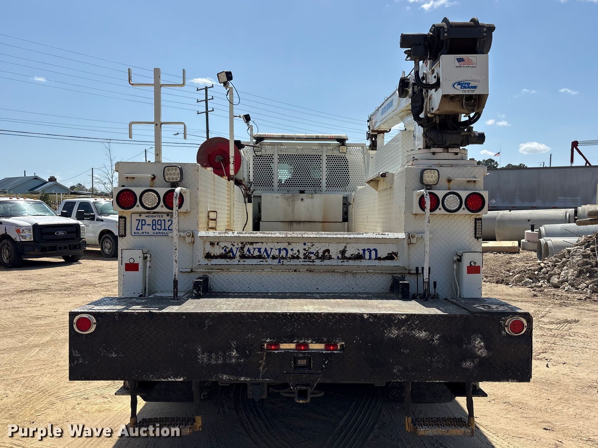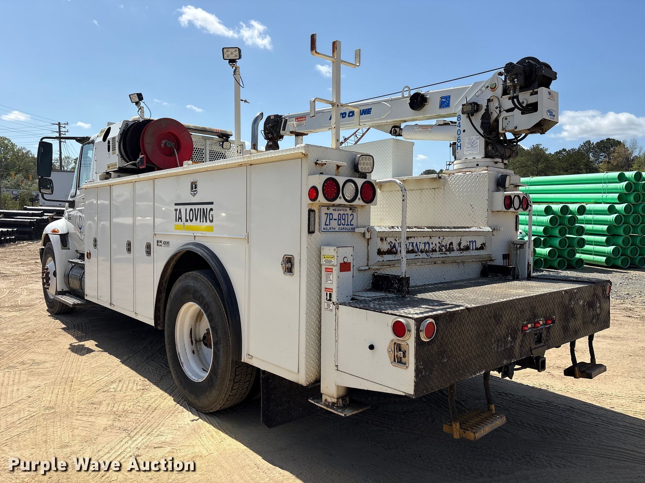 2005 International 4300 utility / service truck. Miles: 336,130 on odometer, Hours: 17,676 on meter, VIN: 1HTMMAAL35H695137. Engine International DT466 MaxxForce DT, Displacement: 7.64L, Cylinders: 6, Fuel type: Diesel. Transmission Eaton Fuller, Manual, Speed: 6. Chassis Axles: Single, Suspension: Spring, Brakes: Air, PTO, Wheelbase: 445". Interior AC, Heat, Cruise control, Backup camera. Features Bed Utility bed, Width: 8', Air compressor IMT DA435 HA, Crane Autocrane 8406H. Tires Size: 11R22.5. Notes Hydraulic leak, Oil leak, Unknown operating condition of crane, air compressor, Non-operational hydraulics. North Carolina title. Title distribution may be delayed up to 30 days from verification of funds. T A Loving. Goldsboro, NC 27530